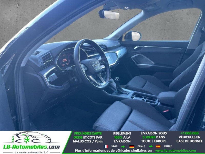 Référence : 1182283 Vos Avantages chez LB-AUTOMOBILES.com / Prix affiché TTC Livré hors carte grise / Livraison sous 10 jours dans toute la France hors 31 / Pas d?avance de frais paiement du véhicule 100% à la livraison par virement. Audi Q3 Neuf remisée, Audi Q3 Occasion Toulouse Beaupuy 31850, Audi Q3 Véhicule sorti de réseau collaborateur, Audi Q3 import, Audi Q3 importateur, Audi Q3 Livraison possible dans toute la France sous 5 jours, Audi Q3, Audi Q3 Location Option Achat, Audi Q3 LLD, Audi Q3 Longue Durée, Audi Q3 TVA récupérable. Possibilité d'extension de garantie 12, 24,36 mois, Pour tout autres voitures import neufs ou occasions collaborateur fortement remisée, Mandataire Audi, Mandataire BMW, Mandataire Volkswagen, Mandataire Mercedes, Mandataire Peugeot Espagne, Mandataire Renault Espagne, Porsche import, Mandataire Citroën Espagne, Mandataire Seat Espagne, n'hésitez pas à nous contacter. « Sous réserve de vente préalable et erreur de saisie » Principaux équipements : - ABS - Accoudoir - Android Auto - Antidémarrage - Apple CarPlay - Assistance au freinage d'urgence - Assistance de démarrage en côte - Attache remorque pivotante - Avertisseur de franchissement de ligne - Bluetooth - Boîte de vitesses robotisée - Capteur de lumière - Capteur de pluie - Cockpit numérique - Commande vocale - Contrôle de la pression des pneus - Direction assistée - ESP - Fermeture centralisée - Galerie de toit - GPS - Hayon électrique - Isofix - Jantes alliage - Kit de réparation d'urgence des pneus - Kit mains libres - Ordinateur de bord - Pack fumeur - Phares LED - Point Isofix siège passager - Port USB - Radio DAB - Régulateur de vitesse adaptatif - Rétroviseur extérieur électrique - Rétroviseur intérieur anti-éblouissement automatique - Rétroviseurs extérieurs rabattables électriquement - Sièges chauffants - Sièges sport - Streaming musical intégré - Support lombaire - Système antipatinage - Système d'appel d'urgence - Système d'avertissement de la distance - Système de limitation de la vitesse - Système de reconnaissance des panneaux de signalisation - Système de sonorisation - Système Stop & Start - Traction avant - Tuner/radio - Vitres électriques - Volant en cuir - Volant multifonction