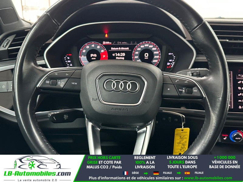 Référence : 1182284 Vos Avantages chez LB-AUTOMOBILES.com / Prix affiché TTC Livré hors carte grise / Livraison sous 10 jours dans toute la France hors 31 / Pas d?avance de frais paiement du véhicule 100% à la livraison par virement. Audi Q3 Neuf remisée, Audi Q3 Occasion Toulouse Beaupuy 31850, Audi Q3 Véhicule sorti de réseau collaborateur, Audi Q3 import, Audi Q3 importateur, Audi Q3 Livraison possible dans toute la France sous 5 jours, Audi Q3, Audi Q3 Location Option Achat, Audi Q3 LLD, Audi Q3 Longue Durée, Audi Q3 TVA récupérable. Possibilité d'extension de garantie 12, 24,36 mois, Pour tout autres voitures import neufs ou occasions collaborateur fortement remisée, Mandataire Audi, Mandataire BMW, Mandataire Volkswagen, Mandataire Mercedes, Mandataire Peugeot Espagne, Mandataire Renault Espagne, Porsche import, Mandataire Citroën Espagne, Mandataire Seat Espagne, n'hésitez pas à nous contacter. « Sous réserve de vente préalable et erreur de saisie » Principaux équipements : - ABS - Accoudoir - Antidémarrage - Assistance de démarrage en côte - Assistant d'angle mort - Avertisseur de franchissement de ligne - Bluetooth - Capteur de pluie - Carnet d'entretien - Chargement par induction pour smartphones - Cockpit numérique - Commande vocale - Contrôle de la pression des pneus - Direction assistée - Écran tactile - ESP - Fermeture centralisée - Galerie de toit - Garantie - GPS - Hayon électrique - Isofix - Jantes alliage - Kit de réparation d'urgence des pneus - Kit mains libres - Ordinateur de bord - Phares LED - Pneus toutes saisons - Port USB - Radio DAB - Régulateur de vitesse - Rétroviseur extérieur électrique - Rétroviseur intérieur anti-éblouissement automatique - Rétroviseurs extérieurs rabattables électriquement - Révision complète - Sièges chauffants - Sièges sport - Système d'appel d'urgence - Système de détection de la fatigue - Système de reconnaissance des panneaux de signalisation - Système de sonorisation - Système Stop & Start - Traction avant - Tuner/radio - Véhicule non-fumeur - Vitres électriques - Vitres teintées - Volant en cuir - Volant multifonction - WLAN / point d'accès Wi-Fi