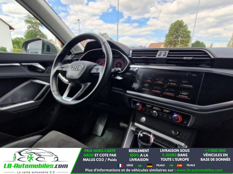 Référence : 1182298 Vos Avantages chez LB-AUTOMOBILES.com / Prix affiché TTC Livré hors carte grise / Livraison sous 10 jours dans toute la France hors 31 / Pas d?avance de frais paiement du véhicule 100% à la livraison par virement. Audi Q3 Neuf remisée, Audi Q3 Occasion Toulouse Beaupuy 31850, Audi Q3 Véhicule sorti de réseau collaborateur, Audi Q3 import, Audi Q3 importateur, Audi Q3 Livraison possible dans toute la France sous 5 jours, Audi Q3, Audi Q3 Location Option Achat, Audi Q3 LLD, Audi Q3 Longue Durée, Audi Q3 TVA récupérable. Possibilité d'extension de garantie 12, 24,36 mois, Pour tout autres voitures import neufs ou occasions collaborateur fortement remisée, Mandataire Audi, Mandataire BMW, Mandataire Volkswagen, Mandataire Mercedes, Mandataire Peugeot Espagne, Mandataire Renault Espagne, Porsche import, Mandataire Citroën Espagne, Mandataire Seat Espagne, n'hésitez pas à nous contacter. « Sous réserve de vente préalable et erreur de saisie » Principaux équipements : - 4x4 - ABS - Accoudoir - Android Auto - Antidémarrage - Apple CarPlay - Assistance au freinage d'urgence - Assistance de démarrage en côte - Assistant d'angle mort - Avertisseur de franchissement de ligne - Bluetooth - Boîte de vitesses robotisée - Capteur de lumière - Capteur de pluie - Carnet d'entretien - Chargement par induction pour smartphones - Cockpit numérique - Commande vocale - Contrôle de la pression des pneus - Diesel avec filtre à particules - Direction assistée - Éclairage d'ambiance - Écran tactile - ESP - Fermeture centralisée - Feux de jour LED - Galerie de toit - Garantie - GPS - Grille de protection pour coffre - Hayon électrique - Isofix - Jantes alliage - Kit mains libres - Ordinateur de bord - Package hiver - Phare antibrouillard - Phares LED - Pneus été - Point Isofix siège passager - Port USB - Radio DAB - Réglage électrique des sièges - Régulateur de vitesse - Rétroviseur extérieur électrique - Rétroviseur intérieur anti-éblouissement automatique - Rétroviseurs extérieurs rabattables électriquement - Sièges chauffants - Sièges sport - Streaming musical intégré - Support lombaire - Système antipatinage - Système d'appel d'urgence - Système d'avertissement de la distance - Système de détection de la fatigue - Système de limitation de la vitesse - Système Stop & Start - Tuner/radio - Véhicule non-fumeur - Verrouillage centralisé sans clé - Vitres électriques - Volant en cuir - Volant multifonction