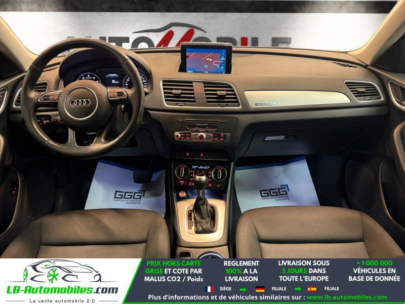 Référence : 1182247 Vos Avantages chez LB-AUTOMOBILES.com / Prix affiché TTC Livré hors carte grise / Livraison sous 10 jours dans toute la France hors 31 / Pas d?avance de frais paiement du véhicule 100% à la livraison par virement. Audi Q3 Neuf remisée, Audi Q3 Occasion Toulouse Beaupuy 31850, Audi Q3 Véhicule sorti de réseau collaborateur, Audi Q3 import, Audi Q3 importateur, Audi Q3 Livraison possible dans toute la France sous 5 jours, Audi Q3, Audi Q3 Location Option Achat, Audi Q3 LLD, Audi Q3 Longue Durée, Audi Q3 TVA récupérable. Possibilité d'extension de garantie 12, 24,36 mois, Pour tout autres voitures import neufs ou occasions collaborateur fortement remisée, Mandataire Audi, Mandataire BMW, Mandataire Volkswagen, Mandataire Mercedes, Mandataire Peugeot Espagne, Mandataire Renault Espagne, Porsche import, Mandataire Citroën Espagne, Mandataire Seat Espagne, n'hésitez pas à nous contacter. « Sous réserve de vente préalable et erreur de saisie » Principaux équipements : - 4x4 - ABS - Accoudoir - Antidémarrage - Assistance au freinage d'urgence - Assistance de démarrage en côte - Attache remorque détachable - Bluetooth - Capteur de lumière - Capteur de pluie - Carnet d'entretien - Commande vocale - Contrôle de la pression des pneus - Direction assistée - Éclairage adaptatif de virage - Éclairage d'ambiance - ESP - Fermeture centralisée - Feux de jour LED - Galerie de toit - Garantie - GPS - Grille de protection pour coffre - Hayon électrique - Isofix - Jantes alliage - Kit de réparation d'urgence des pneus - Kit mains libres - Lecteur CD - Ordinateur de bord - Package hiver - Pack fumeur - Pack sport - Phare antibrouillard - Phares bi-xénon - Pneus été - Pneus hiver - Port USB - Régulateur de vitesse - Rétroviseur extérieur électrique - Rétroviseur intérieur anti-éblouissement automatique - Sièges chauffants - Sièges sport - Support lombaire - Système antipatinage - Système d'alarme - Système de limitation de la vitesse - Système de nettoyage des phares - Système de sonorisation - Système Stop & Start - Tuner/radio - Véhicule non-fumeur - Verrouillage centralisé sans clé - Vitres électriques - Volant en cuir - Volant multifonction
