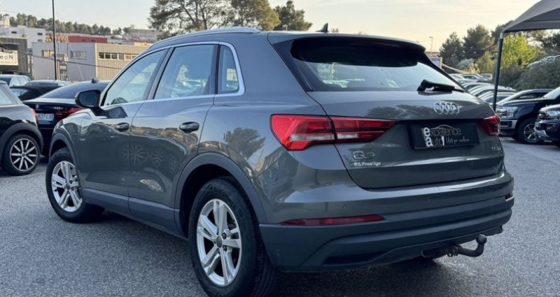 Audi Q3 35 TDI 150CH BUSINESS LINE S TRONIC 7, (S.U.V.), GRIS F, 8cv, 5 portes, mise en circulation le 26-06-2019. 5 places, boîte de vitesse : automatique OPTIONS ET EQUIPEMENTS : Audio - Télécommunications - 6 Haut parleurs - Appel d'Assistance Localisé - Appel d'Urgence Localisé - Borne Wi-Fi - Commandes du système audio au volant - Commandes vocales - Ecran tactile - Fonction MP3 - GPS Cartographique - Kit mains-libres Bluetooth - Lecteur carte SD - Prise USB - Radio - Services connectés - Stations de webradio - TMC - Volume automatique de la radio Conduite - Aide au démarrage en côte - Capteur de luminosité - Capteur de pluie - Commande du comportement dynamique - Palettes changement vitesses au volant - Régulateur de vitesse Extérieur - Becquet arrière - Calandre chromée - Caméra de recul - Ceinture de vitrage chromée - Feux arrière à LED - Feux de jour à LED - Feux de position à LED - Filtre à particules - Jantes Alu - Phares avant LED - Radar de stationnement AR - Radar de stationnement AV - Rétroviseurs dégivrants - Rétroviseurs ext. indexés à la marche AR - Rétroviseurs rabattables automatique - Rétroviseurs rabattables électriquement - Rétroviseurs électriques Intérieur - Accoudoir arrière - Accoudoir central AV avec rangement - Appui-tête conducteur réglable hauteur - Appui-tête passager réglable en hauteur - Bacs de portes arrière - Bacs de portes avant - Banquette 40/20/40 - Banquette AR rabattable - Banquette coulissante - Boite à gants fermée - Clim automatique bi-zones - Compte tours - Eclairage d'ambiance - Ecran multifonction couleur - Filtre à Pollen - Fixation Isofix siège passager avant - Fixations Isofix aux places arrières - Inserts de porte métal - Inserts de tableau de bord métal - Lampe de coffre - Lampes de lecture à l'avant - Miroir de courtoisie conducteur - Miroir de courtoisie passager - Ordinateur de bord - Porte-gobelets avant - Prise 12V - Rétroviseur intérieur électrochrome - Siège cond. avec réglage lombaire électr - Siège conducteur réglable en hauteur - Siège passager avec réglage lombaire - Siège passager réglable en hauteur - Sièges rang 2 inclinables - Température extérieure - Vitres arrière électriques - Vitres avant électriques - Volant cuir - Volant multifonction - Volant réglable en profondeur et hauteur Sécurité - ABS - AFIL - Aide au freinage d'urgence - Airbag conducteur - Airbag passager déconnectable - Airbags latéraux avant - Airbags rideaux AV et AR - Antidémarrage électronique - Antipatinage - BAS - Ceintures avant ajustables en hauteur - Détecteur de sous-gonflage - EBD - ESP - Freinage automatique d'urgence - Système de prévention des collisions Autres équipements et informations : - Airbag passager - Radio numérique DAB - Reconnaissance panneaux de signalisation Kilométrage garanti. Référence annonce : 11143
