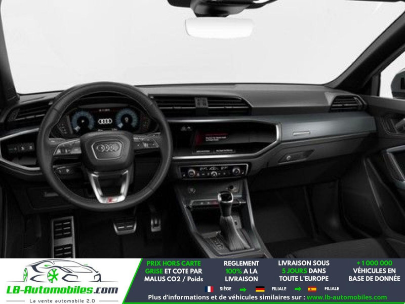 Référence : 1189846 Vos Avantages chez LB-AUTOMOBILES.com / Prix affiché TTC Livré hors carte grise / Livraison sous 10 jours dans toute la France hors 31 / Pas d?avance de frais paiement du véhicule 100% à la livraison par virement. Audi Q3 Neuf remisée, Audi Q3 Occasion Toulouse Beaupuy 31850, Audi Q3 Véhicule sorti de réseau collaborateur, Audi Q3 import, Audi Q3 importateur, Audi Q3 Livraison possible dans toute la France sous 5 jours, Audi Q3, Audi Q3 Location Option Achat, Audi Q3 LLD, Audi Q3 Longue Durée, Audi Q3 TVA récupérable. Possibilité d'extension de garantie 12, 24,36 mois, Pour tout autres voitures import neufs ou occasions collaborateur fortement remisée, Mandataire Audi, Mandataire BMW, Mandataire Volkswagen, Mandataire Mercedes, Mandataire Peugeot Espagne, Mandataire Renault Espagne, Porsche import, Mandataire Citroën Espagne, Mandataire Seat Espagne, n'hésitez pas à nous contacter. « Sous réserve de vente préalable et erreur de saisie » Principaux équipements : - 4x4 - ABS - Accoudoir - Antidémarrage - Assistance au freinage d'urgence - Assistance de démarrage en côte - Assistant d'angle mort - Avertisseur de franchissement de ligne - Bluetooth - Capteur de lumière - Capteur de pluie - Cockpit numérique - Commande vocale - Contrôle de la pression des pneus - Diesel avec filtre à particules - Direction assistée - Éclairage adaptatif de virage - Éclairage d'ambiance - Écran tactile - ESP - Fermeture centralisée - Feux de jour LED - Garantie - GPS - Hayon électrique - Isofix - Jantes alliage - Kit mains libres - Ordinateur de bord - Pack sport - Phare antibrouillard - Phares LED - Pneus toutes saisons - Port USB - Radio DAB - Rétroviseur extérieur électrique - Rétroviseur intérieur anti-éblouissement automatique - Sièges chauffants - Sièges sport - Support lombaire - Suspension sport - Système antipatinage - Système d'appel d'urgence - Système d'avertissement de la distance - Système de limitation de la vitesse - Système de reconnaissance des panneaux de signalisation - Système de sonorisation - Système Stop & Start - Tuner/radio - Verrouillage centralisé sans clé - Volant en cuir - Volant multifonction - WLAN / point d'accès Wi-Fi