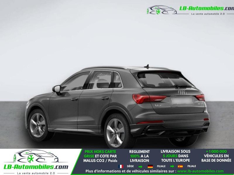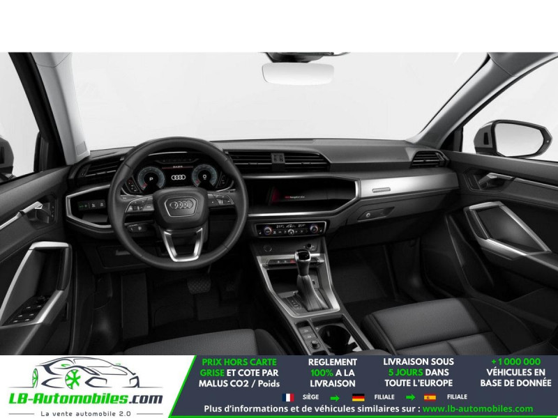 Référence : 1189836 Vos Avantages chez LB-AUTOMOBILES.com / Prix affiché TTC Livré hors carte grise / Livraison sous 10 jours dans toute la France hors 31 / Pas d?avance de frais paiement du véhicule 100% à la livraison par virement. Audi Q3 Neuf remisée, Audi Q3 Occasion Toulouse Beaupuy 31850, Audi Q3 Véhicule sorti de réseau collaborateur, Audi Q3 import, Audi Q3 importateur, Audi Q3 Livraison possible dans toute la France sous 5 jours, Audi Q3, Audi Q3 Location Option Achat, Audi Q3 LLD, Audi Q3 Longue Durée, Audi Q3 TVA récupérable. Possibilité d'extension de garantie 12, 24,36 mois, Pour tout autres voitures import neufs ou occasions collaborateur fortement remisée, Mandataire Audi, Mandataire BMW, Mandataire Volkswagen, Mandataire Mercedes, Mandataire Peugeot Espagne, Mandataire Renault Espagne, Porsche import, Mandataire Citroën Espagne, Mandataire Seat Espagne, n'hésitez pas à nous contacter. « Sous réserve de vente préalable et erreur de saisie » Principaux équipements : - 4x4 - ABS - Accoudoir - Antidémarrage - Assistance au freinage d'urgence - Assistance de démarrage en côte - Assistant d'angle mort - Assistant feux de route - Avertisseur de franchissement de ligne - Bluetooth - Capteur de lumière - Capteur de pluie - Carnet d'entretien - Cockpit numérique - Commande vocale - Contrôle de la pression des pneus - Diesel avec filtre à particules - Direction assistée - Éclairage adaptatif de virage - Éclairage d'ambiance - Éclairage route non éblouissant - Écran tactile - ESP - Fermeture centralisée - Feux de jour LED - Galerie de toit - Garantie - GPS - Hayon électrique - Isofix - Jantes alliage - Kit de réparation d'urgence des pneus - Kit mains libres - Ordinateur de bord - Phares LED - Port USB - Rétroviseur extérieur électrique - Rétroviseur intérieur anti-éblouissement automatique - Rétroviseurs extérieurs rabattables électriquement - Sièges chauffants - Sièges sport - Système antipatinage - Système d'appel d'urgence - Système d'avertissement de la distance - Système de limitation de la vitesse - Système de nettoyage des phares - Système de reconnaissance des panneaux de signalisation - Système de sonorisation - Système Stop & Start - Tuner/radio - Véhicule non-fumeur - Verrouillage centralisé sans clé - Vitres électriques - Volant en cuir - Volant multifonction