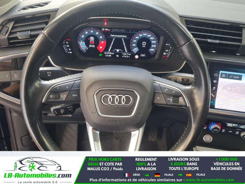 Référence : 1189835 Vos Avantages chez LB-AUTOMOBILES.com / Prix affiché TTC Livré hors carte grise / Livraison sous 10 jours dans toute la France hors 31 / Pas d?avance de frais paiement du véhicule 100% à la livraison par virement. Audi Q3 Neuf remisée, Audi Q3 Occasion Toulouse Beaupuy 31850, Audi Q3 Véhicule sorti de réseau collaborateur, Audi Q3 import, Audi Q3 importateur, Audi Q3 Livraison possible dans toute la France sous 5 jours, Audi Q3, Audi Q3 Location Option Achat, Audi Q3 LLD, Audi Q3 Longue Durée, Audi Q3 TVA récupérable. Possibilité d'extension de garantie 12, 24,36 mois, Pour tout autres voitures import neufs ou occasions collaborateur fortement remisée, Mandataire Audi, Mandataire BMW, Mandataire Volkswagen, Mandataire Mercedes, Mandataire Peugeot Espagne, Mandataire Renault Espagne, Porsche import, Mandataire Citroën Espagne, Mandataire Seat Espagne, n'hésitez pas à nous contacter. « Sous réserve de vente préalable et erreur de saisie » Principaux équipements : - 4x4 - ABS - Accoudoir - Android Auto - Antidémarrage - Apple CarPlay - Assistance au freinage d'urgence - Assistance de démarrage en côte - Assistant feux de route - Attache remorque pivotante - Avertisseur de franchissement de ligne - Bluetooth - Capteur de lumière - Capteur de pluie - Cockpit numérique - Commande vocale - Contrôle de la pression des pneus - Direction assistée - Éclairage adaptatif de virage - Éclairage d'ambiance - Éclairage route non éblouissant - ESP - Fermeture centralisée - Feux de jour LED - Galerie de toit - GPS - Hayon électrique - Jantes alliage - Kit de réparation d'urgence des pneus - Kit mains libres - Lecteur CD - Ordinateur de bord - Phares LED - Port USB - Radio DAB - Rétroviseur extérieur électrique - Rétroviseur intérieur anti-éblouissement automatique - Rétroviseurs extérieurs rabattables électriquement - Sièges chauffants - Streaming musical intégré - Système antipatinage - Système d'appel d'urgence - Système d'avertissement de la distance - Système de limitation de la vitesse - Système de nettoyage des phares - Système de reconnaissance des panneaux de signalisation - Système Stop & Start - Tuner/radio - Véhicule non-fumeur - Vitres électriques - Volant en cuir - Volant multifonction