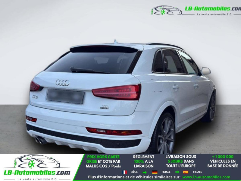Référence : 1189800 Vos Avantages chez LB-AUTOMOBILES.com / Prix affiché TTC Livré hors carte grise / Livraison sous 10 jours dans toute la France hors 31 / Pas d?avance de frais paiement du véhicule 100% à la livraison par virement. Audi Q3 Neuf remisée, Audi Q3 Occasion Toulouse Beaupuy 31850, Audi Q3 Véhicule sorti de réseau collaborateur, Audi Q3 import, Audi Q3 importateur, Audi Q3 Livraison possible dans toute la France sous 5 jours, Audi Q3, Audi Q3 Location Option Achat, Audi Q3 LLD, Audi Q3 Longue Durée, Audi Q3 TVA récupérable. Possibilité d'extension de garantie 12, 24,36 mois, Pour tout autres voitures import neufs ou occasions collaborateur fortement remisée, Mandataire Audi, Mandataire BMW, Mandataire Volkswagen, Mandataire Mercedes, Mandataire Peugeot Espagne, Mandataire Renault Espagne, Porsche import, Mandataire Citroën Espagne, Mandataire Seat Espagne, n'hésitez pas à nous contacter. « Sous réserve de vente préalable et erreur de saisie » Principaux équipements : - 4x4 - ABS - Accoudoir - Antidémarrage - Assistance de démarrage en côte - Attache remorque pivotante - Bluetooth - Boîte de vitesses robotisée - Capteur de lumière - Capteur de pluie - Carnet d'entretien - Commande vocale - Contrôle de la pression des pneus - Diesel avec filtre à particules - Direction assistée - ESP - Fermeture centralisée - Feux de jour LED - Galerie de toit - Garantie - GPS - Hayon électrique - Isofix - Jantes alliage - Kit de réparation d'urgence des pneus - Kit mains libres - Lecteur CD - Ordinateur de bord - Pack sport - Phare antibrouillard - Phares LED - Pneus été - Pneus hiver - Port USB - Rétroviseur extérieur électrique - Rétroviseur intérieur anti-éblouissement automatique - Sièges chauffants - Sièges sport - Système antipatinage - Système de nettoyage des phares - Système de sonorisation - Système Stop & Start - Tuner/radio - Vitres électriques - Vitres teintées - Volant en cuir - Volant multifonction
