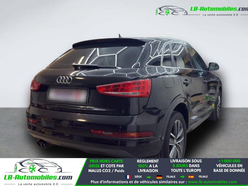 Référence : 1189783 Vos Avantages chez LB-AUTOMOBILES.com / Prix affiché TTC Livré hors carte grise / Livraison sous 10 jours dans toute la France hors 31 / Pas d?avance de frais paiement du véhicule 100% à la livraison par virement. Audi Q3 Neuf remisée, Audi Q3 Occasion Toulouse Beaupuy 31850, Audi Q3 Véhicule sorti de réseau collaborateur, Audi Q3 import, Audi Q3 importateur, Audi Q3 Livraison possible dans toute la France sous 5 jours, Audi Q3, Audi Q3 Location Option Achat, Audi Q3 LLD, Audi Q3 Longue Durée, Audi Q3 TVA récupérable. Possibilité d'extension de garantie 12, 24,36 mois, Pour tout autres voitures import neufs ou occasions collaborateur fortement remisée, Mandataire Audi, Mandataire BMW, Mandataire Volkswagen, Mandataire Mercedes, Mandataire Peugeot Espagne, Mandataire Renault Espagne, Porsche import, Mandataire Citroën Espagne, Mandataire Seat Espagne, n'hésitez pas à nous contacter. « Sous réserve de vente préalable et erreur de saisie » Principaux équipements : - ABS - Accoudoir - Antidémarrage - Assistance de démarrage en côte - Bluetooth - Capteur de lumière - Capteur de pluie - Commande vocale - Contrôle de la pression des pneus - Direction assistée - Éclairage adaptatif de virage - Éclairage d'ambiance - ESP - Fermeture centralisée - Feux de jour LED - Galerie de toit - Garantie - GPS - Grille de protection pour coffre - Isofix - Jantes alliage - Kit de préparation pour système de navigation - Kit mains libres - Lecteur CD - Ordinateur de bord - Package hiver - Pack sport - Phares bi-xénon - Pneus été - Pneus hiver - Point Isofix siège passager - Port USB - Régulateur de vitesse - Rétroviseur extérieur électrique - Rétroviseur intérieur anti-éblouissement automatique - Rétroviseurs extérieurs rabattables électriquement - Siège passager rabattable - Sièges chauffants - Sièges sport - Support lombaire - Suspension adaptative - Suspension sport - Système antipatinage - Système de limitation de la vitesse - Système de nettoyage des phares - Système de sonorisation - Système Stop & Start - Traction avant - Tuner/radio - Verrouillage centralisé sans clé - Vitres électriques - Vitres teintées - Volant en cuir - Volant multifonction