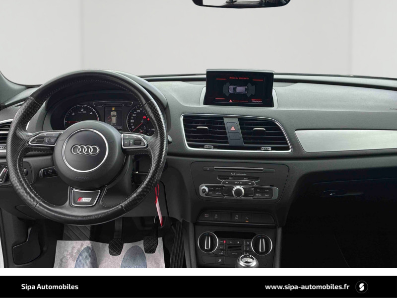 Applications décoratives Aluminium brossé mat sur tableau de bord, contre-portes et console centrale / Audi Parking System Plus : signal acoustique et visuel d'aide au stationnement AV et AR par par pictogrammes sur l'écran / Couvre-bagages coulissant automatiquement par glissières / Essuie-glace AR avec commande de lavage-balayage automatique, balayage au passage de la marche AR lorsque les essuie-glaces AV sont activés / Essuie-glaces AV à 2 vitesses avec réglage d'intermittance sur 4 niveaux, commande de balayage coup par coup et lavage-balayage automatique / Frein de stationnement électromécanique avec fonction frein de secours sur les 4 roues durant la marche / Jantes aluminium coulé 5 branches doubles 8Jx18" avec pneus 235/50 R18 / Pack Aluminium Intérieur / Pack Brillance / Projecteurs Xénon Plus incluant lave-phares, feux de jour à LED / Protection antidémarrage électronique, intégrée à la gestion du moteur, activation automatique par la clé du véhicule / Préparation pour crochet d'attelage, comprend câblage jusqu'au logement de la roue de secours, système approprié de refroidissement du moteur / Rampes de pavillon en aluminium poli / Rétroviseur intérieur jour/nuit automatique (incluant le détecteur de pluie et de luminosité) / Rétroviseurs extérieurs réglables électriquement et dégivrants, clignotants intégrés a LED boîtiers dans la couleur de la carrosserie, miroir asphérique à gauche, convexe à droite / Témoins de contrôle pour airbags, ESP/ASR, adaptive air suspension, EDS, frein de stationnement électromécanique, régulateur de vitesse, feux de route, feux AR anribrouillard, clignotants,électronique moteur et protection antidémarrage / Volant Sport 3 branches multifonctions en cuir / Volant Sport S line multifonctions style 3 branches en cuir noir avec emblème S Line / Airbags frontaux conducteur et passager grand volume, à deux niveaux de gonflement suivant la gravité du choc / Airbags latéraux AV intégrés aux dossiers de sièges / Appuie-tête intégraux à l'AV et l'AR / Audi Drive Select avec mode "efficiency", permet différents réglages (direction, moteur et transmission) du véhicule / Audi Singleframe, encadrement gris pierre d'une seule pièce sur la calandre, avec anneaux Audi anodisés au centre / Audi Sound System : amplificateurs 6 canaux, 10 HP dont 1 central dans le tableau de bord et 1 subwoofer, puissance totale 180 W / Avertisseurs 2 tons avec commande au centre du volant / Banquette AR rabattable 60/40, déverrouillage à distance des dossiers via un levier dans la garniture latérale du coffre / Becquet de pavillon / Blocage électronique de différentiel EDS / Carrosserie galvanisée (entièrement galvanisée aux endroits sensibles à la corrosion) : autoportante soudée au groupe-plancher, zones de déformation définies à l'AV et à l'AR (12 ans de garantie contre la corrosion) / Ceintures de sécurité 3 points à enrouleur pour tous les sièges avec prétensionneur réversible, détecteur de port avec signaux acoustiques et visuel à l'AV, sécurité enfants sur le verrouillage à l'AV et à l'AR / Châssis Sport S line : suspension Sport avec réglage plus dynamique; véhicule rabaissé de 20 mm / Ciel de pavillon en Tissu Noir / Console centrale surélevée avec vide-poches pouvant être utilisé comme porte-boissons avec volet ouvert / Contact d'allumage électronique: clé de contact mémorisant différentes données d'entretien / Contrôle de la pression des pneus avec signaux acoustique et visuel de perte de pression / Direction électromécanique à assistance variable / Détecteur de pluie et de luminosité / Déverrouillage du coffre avec touche douce (déverrouillage avec assistance électrique) / Eclairage intérieur à extinction temporisée et contacteur sur toutes les portes, éclairage coffre, conducteur, passager AV et places AR, spots de lecture à l'AV et à l'AR ainsi que boîte à gants éclairée / Ecrous de roues antivol / Identification du modèle à l'AR, inscription "Quattro" à l'AR, sur la calandre et sur le tableau de bord côté passager AV / Indicateur de rapport de vitesse dans le système d'information conducteur / Inscription S line sur les ailes AV / Inscription S line sur les moulures de seuils de porte et protection supplémentaire du seuil de chargement en acier inoxydable / Instrumentation àéclairage réglable: tachymètre électronique avec compteur kilométrique totalisateur et journalier, compte-tours, heure, affichage de la température du liquide de refroidissement moteur et de la réserve de carburant / Interface Bluetooth / Lunette AR dégivrante avec minuterie / Lève-vitres électriques AV et AR avec protection antipincement et fonction ouverture/fermeture confort par impulsion / MMI Radio/Autoradio Concert avec lecteur CD compatible MP3/WMA et ACC, lecteur de cartes SDHC, écran couleur TFT 6.5", prise AUX-IN et 8HP puissance totale 80W / Moulures de seuils de portes en plastique / Oeilletons de fixation, 4 oeilletons dans le coffre pour arrimer le chargement / Ordinateur de bord couleur et contrôle Autocheck et programme efficiency / Outillage de bord dans le coffre / Pare-brise acoustique avec bande grise / Pare-chocs laqués dans la couleur carrosserie, bas de pare-chocs AV/AR et bandeaux de portes en bas de couleur noir mat / Pare-soleil rabattables et pivotants côté conducteur et passager AV, avec miroir de courtoisie occultable / Plancher de chargement réversible / Poignées de maintien avec mécanisme amortisseur : 4 poignées encastrées dans le ciel de pavillon / Poignées de portières extérieures laquées dans la couleur de carrosserie / Porte-boissons double dans la console centrale / Programme électronique de stabilisation ESP / Protections latérales anticollision / Préparation pour système de repérage satellite permettant la localisation du véhicule en cas de vol / Roue de secours temporaire avec cric de levage / Récupéra