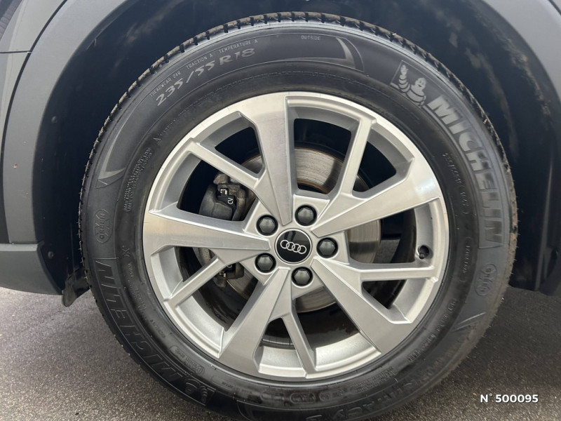Préparation pour la navigation MMI plus / Rampes de pavillon en Aluminium, anodisées / Rétroviseur intérieur jour/nuit automatique sans encadrement / Rétroviseurs extérieurs réglables, dégivrants et rabattables électriquement avec fonction rabat automatique / Sellerie Tissu "Argument" / 2 prises USB AR (type-C) et prise 12V dans la console centrale AR / Accoudoir central AV avec vide-poches relevable et inclinaison réglable et coulissant en longueur / Appuis lombaires à 4 axes pour les sièges AV / Applications décoratives Argent micrométallique / Audi Connect Navigation et Divertissement / Assise et dossier de banquette AR, divisée, rabattable 40/20/40 / Audi Connect sécurité et assistance en ligne / Audi Pre Sense Basic / Audi Parking System Plus / Audi Hold Assist / Audi virtual cockpit / Audi Pre Sense front / Audi Smartphone Interface / Cléà fréquence radio / Combiné d'instruments entièrement numérique 10,25" / Boîtiers de rétroviseurs extérieurs dans la couleur de la carrosserie / Détecteur de pluie et de luminosité / Suspensions Confort / Sièges AV réglables manuellement Hauteur et positionnement en longueur, Inclinaison de dossier, Hauteur des appuie-tête et des ceintures / Trousse de secours, triangle de présignalisation et 2 vestes de sécurité / Tapis de sol AV/AR / Revêtement Noir Brillant sur les montants de pavillon centraux et AR / Volant cuir multifonctions Plus 3 branches avec palettes de commande au volant / Diffuseur Anthracite / Baguettes sur les appuis vitre en Aluminium anodisé / Pare-chocs, passage de roue et extensions de bas de caisse grenues, en Noir / Calandre grenue / Protection du seuils de chargement en plastique / Moulures de seuils de portes en plastique / Sécurité enfant électrique / Fixation pour siège-enfant ISOFIX pour le siège du passager AV / Commande de désactivation de l'airbag passager AV / Direction assistée électromécanique, asservie à la vitesse / Fixation pour sièges enfants ISOFIX et Top Tether pour les sièges extérieurs AR / Ecrous de roues antivol / Eclairage intérieur / Interface Bluetooth / Interface USB pour chargement d'appareils externes / Hayon assistéélectriquement pour l'ouverture et la fermeture / Kit réparation / Jantes en aluminium coulé 17" 5 branches doubles 7Jx17", pneus 215/65 R17 / MMI Radio Plus avec MMI Touch / Pack Aluminium Intérieur / Outillage de bord / Phares AV à LED (feux de croisement, feux de route, feux diurnes et feux de position LED, clignotants à ampoule) / Pare-brise en verre acoustique avec verre feuilleté athermique