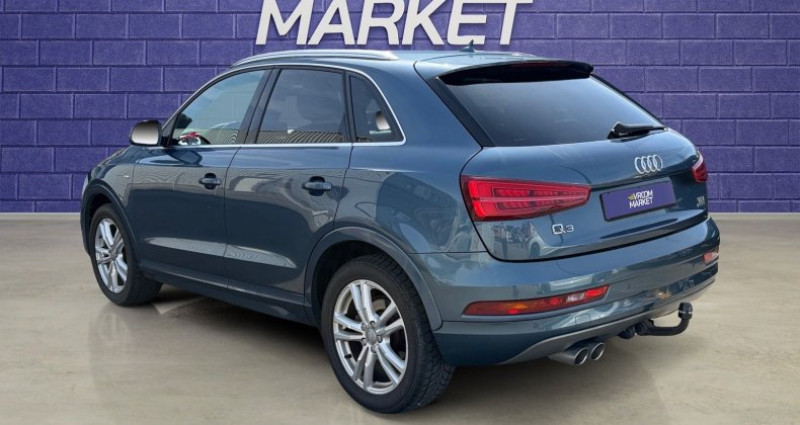 Cylindrée : 1968 cm3 EQUIPEMENTS Appuie-tê te arrière Cache bagages Différentiel à glissement limité automatique Ecrous de roue antivol Essuie glace arrière Feux arrière LED Garnitures intérieures métal Oeï llets de fixation Rétroviseurs extérieurs rabattable électriquement Siège conducteur à dossier réglable Siège passager à dossier réglable Soundsystem Système de récupération d'énergie Système information conducteur Sécurité enfants électrique Vitre arrière chauffante Vitres teintées Audi Q3 motorisation 2.0 TDI 184 chevaux finition S Line, véhicule très propre et très bien entretenu avec un suivi complet et sérieux, équipé du volant méplat, sièges chauffants, régulateur et limiteur de vitesse, radars de stationnement avant et arrière, grand écran multimédia avec commandes au volant, présentation soignée intérieur comme extérieur, SUV fiable, dynamique et agréable à conduire idéal pour le quotidien comme les longs trajets, véhicule prêt à prendre la route, prix affiché hors frais de mise à la route et hors carte grise, des erreurs peuvent se glisser dans l?annonce malgré tout le soin apporté à la description, commercial en charge : ERAY AUTRES EQUIPEMENTS - Puissance reelle : 184 - Nb rapports : 7 - Nb places : 5 - Accoudoir central - Airbag conducteur - Airbags lateraux - Airbag passager - Airbags rideaux avant - Allumage automatique des feux - Anti demarrage - Afu - Climatisation : multi zone - Controle pression des pneus - Detecteur de pluie - Esp - Fixations isofix - Auto radio : MP3 - Vitres arrieres electriques - Vitres avant electriques - Ordinateur de bord - Phares antibrouillard - Predisposition attelage - Radar obstacle avant - Retroviseurs degivrants - Retroviseurs electriques - Siege cond reglable en hauteur - Siege cond reglage lombaire : électrique - Siege pass reglable en hauteur - Siege pass reglage lombaire : électrique - Sieges sport - Stop start - Abs - Verrouillage a distance - Volant sport - Consommation extraurbaine : 4.70 - Consommation mixte : 5.30 - Consommation urbaine : 6.40