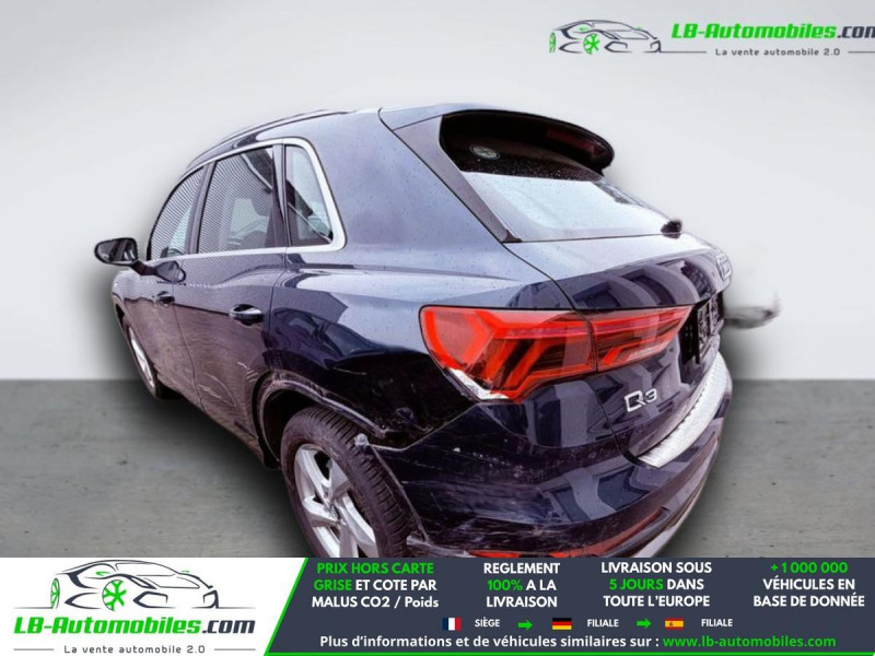 Référence : 1205124 Vos Avantages chez LB-AUTOMOBILES.com / Prix affiché TTC Livré hors carte grise / Livraison sous 10 jours dans toute la France hors 31 / Pas d?avance de frais paiement du véhicule 100% à la livraison par virement. Audi Q3 Neuf remisée, Audi Q3 Occasion Toulouse Beaupuy 31850, Audi Q3 Véhicule sorti de réseau collaborateur, Audi Q3 import, Audi Q3 importateur, Audi Q3 Livraison possible dans toute la France sous 5 jours, Audi Q3, Audi Q3 Location Option Achat, Audi Q3 LLD, Audi Q3 Longue Durée, Audi Q3 TVA récupérable. Possibilité d'extension de garantie 12, 24,36 mois, Pour tout autres voitures import neufs ou occasions collaborateur fortement remisée, Mandataire Audi, Mandataire BMW, Mandataire Volkswagen, Mandataire Mercedes, Mandataire Peugeot Espagne, Mandataire Renault Espagne, Porsche import, Mandataire Citroën Espagne, Mandataire Seat Espagne, n'hésitez pas à nous contacter. « Sous réserve de vente préalable et erreur de saisie » Principaux équipements : - ABS - Accoudoir - Android Auto - Antidémarrage - Apple CarPlay - Assistance au freinage d'urgence - Assistance de démarrage en côte - Assistant d'angle mort - Assistant feux de route - Avertisseur de franchissement de ligne - Bluetooth - Boîte de vitesses robotisée - Capteur de lumière - Capteur de pluie - Carnet d'entretien - Cockpit numérique - Commande vocale - Contrôle de la pression des pneus - Diesel avec filtre à particules - Direction assistée - Éclairage adaptatif de virage - Écran tactile - ESP - Feux de jour LED - Galerie de toit - Grille de protection pour coffre - Hayon électrique - Isofix - Kit de préparation pour système de navigation - Kit de réparation d'urgence des pneus - Kit mains libres - Ordinateur de bord - Package hiver - Pack sport - Phare antibrouillard - Phares LED - Pneus été - Pneus toutes saisons - Point Isofix siège passager - Préparation de l'attache remorque - Radio DAB - Réglage électrique des sièges - Régulateur de vitesse - Rétroviseur extérieur électrique - Rétroviseur intérieur anti-éblouissement automatique - Révision complète - Sièges chauffants - Sièges sport - Streaming musical intégré - Support lombaire - Suspension adaptative - Suspension sport - Système antipatinage - Système d'appel d'urgence - Système de détection de la fatigue - Système de limitation de la vitesse - Système de nettoyage des phares - Système de reconnaissance des panneaux de signalisation - Système de sonorisation - Système Stop & Start - Traction avant - Tuner/radio - Véhicule non-fumeur - Vitres teintées - Volant en cuir - Volant multifonction