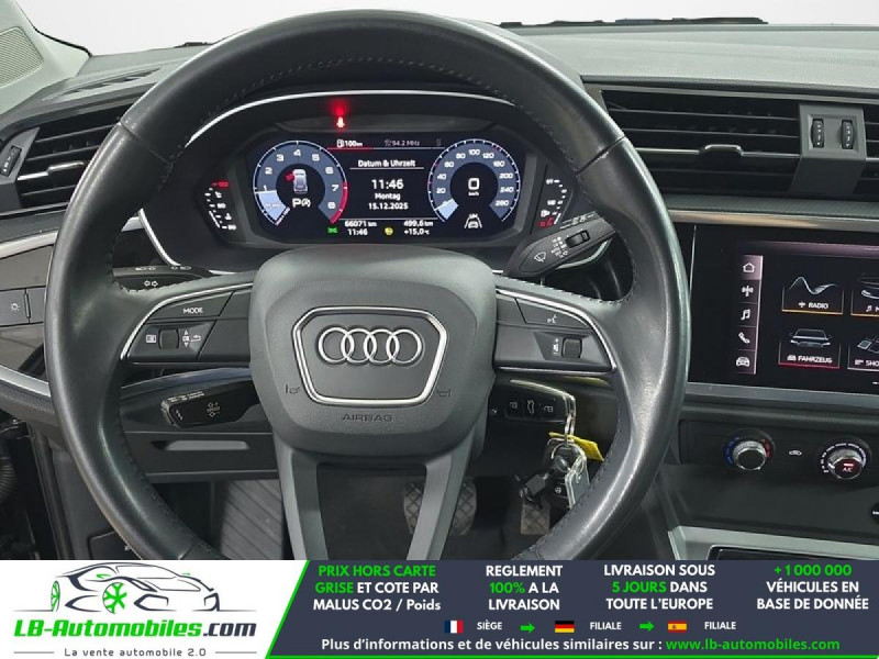 Référence : 1209671 Vos Avantages chez LB-AUTOMOBILES.com / Prix affiché TTC Livré hors carte grise / Livraison sous 10 jours dans toute la France hors 31 / Pas d?avance de frais paiement du véhicule 100% à la livraison par virement. Audi Q3 Neuf remisée, Audi Q3 Occasion Toulouse Beaupuy 31850, Audi Q3 Véhicule sorti de réseau collaborateur, Audi Q3 import, Audi Q3 importateur, Audi Q3 Livraison possible dans toute la France sous 5 jours, Audi Q3, Audi Q3 Location Option Achat, Audi Q3 LLD, Audi Q3 Longue Durée, Audi Q3 TVA récupérable. Possibilité d'extension de garantie 12, 24,36 mois, Pour tout autres voitures import neufs ou occasions collaborateur fortement remisée, Mandataire Audi, Mandataire BMW, Mandataire Volkswagen, Mandataire Mercedes, Mandataire Peugeot Espagne, Mandataire Renault Espagne, Porsche import, Mandataire Citroën Espagne, Mandataire Seat Espagne, n'hésitez pas à nous contacter. « Sous réserve de vente préalable et erreur de saisie » Principaux équipements : - 4x4 - ABS - Accoudoir - Antidémarrage - Assistance au freinage d'urgence - Assistance de démarrage en côte - Assistant d'angle mort - Avertisseur de franchissement de ligne - Bluetooth - Capteur de lumière - Capteur de pluie - Carnet d'entretien - Cockpit numérique - Contrôle de la pression des pneus - Diesel avec filtre à particules - Direction assistée - ESP - Fermeture centralisée - Galerie de toit - Garantie - Jantes alliage - Kit mains libres - Ordinateur de bord - Phares LED - Port USB - Radio DAB - Rétroviseur extérieur électrique - Système antipatinage - Système d'appel d'urgence - Système d'avertissement de la distance - Système de détection de la fatigue - Système de limitation de la vitesse - Système de sonorisation - Système Stop & Start - Tuner/radio - Véhicule non-fumeur - Vitres électriques - Vitres teintées - Volant en cuir - Volant multifonction
