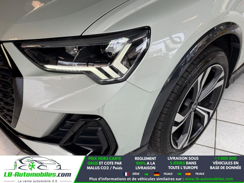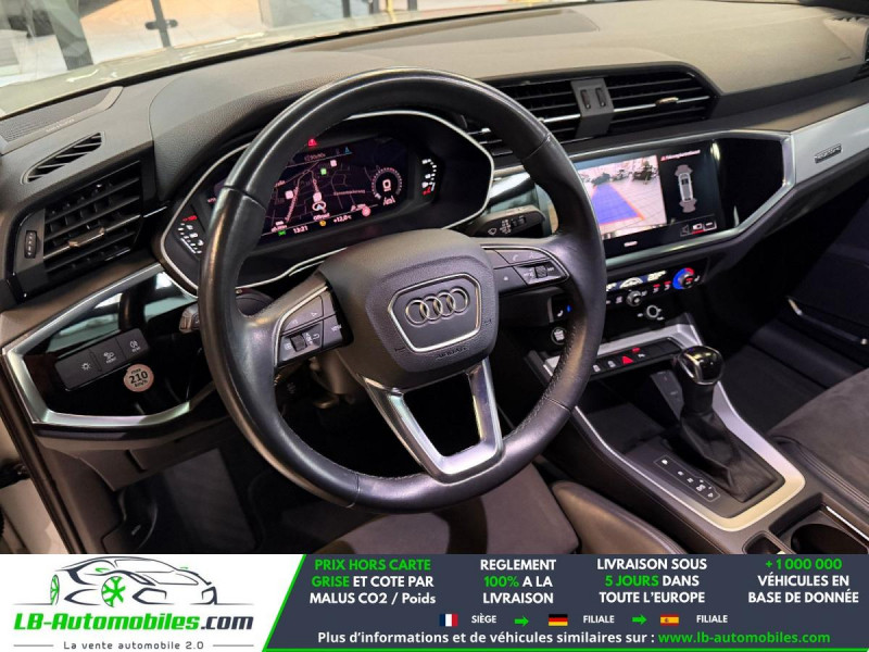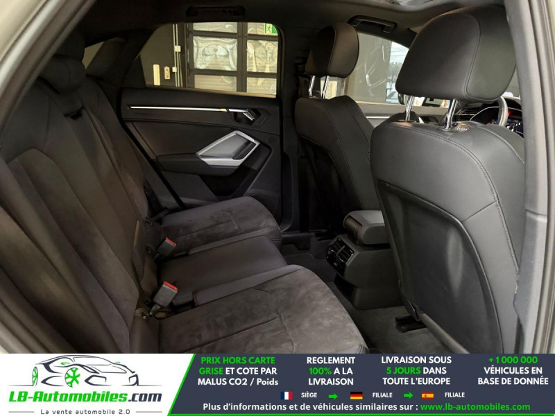 Référence : 1205148 Vos Avantages chez LB-AUTOMOBILES.com / Prix affiché TTC Livré hors carte grise / Livraison sous 10 jours dans toute la France hors 31 / Pas d?avance de frais paiement du véhicule 100% à la livraison par virement. Audi Q3 Neuf remisée, Audi Q3 Occasion Toulouse Beaupuy 31850, Audi Q3 Véhicule sorti de réseau collaborateur, Audi Q3 import, Audi Q3 importateur, Audi Q3 Livraison possible dans toute la France sous 5 jours, Audi Q3, Audi Q3 Location Option Achat, Audi Q3 LLD, Audi Q3 Longue Durée, Audi Q3 TVA récupérable. Possibilité d'extension de garantie 12, 24,36 mois, Pour tout autres voitures import neufs ou occasions collaborateur fortement remisée, Mandataire Audi, Mandataire BMW, Mandataire Volkswagen, Mandataire Mercedes, Mandataire Peugeot Espagne, Mandataire Renault Espagne, Porsche import, Mandataire Citroën Espagne, Mandataire Seat Espagne, n'hésitez pas à nous contacter. « Sous réserve de vente préalable et erreur de saisie » Principaux équipements : - 4x4 - ABS - Accoudoir - Android Auto - Antidémarrage - Apple CarPlay - Assistance au freinage d'urgence - Assistance de démarrage en côte - Assistant d'angle mort - Assistant feux de route - Avertisseur de franchissement de ligne - Bluetooth - Boîte de vitesses robotisée - Capteur de lumière - Capteur de pluie - Carnet d'entretien - Chargement par induction pour smartphones - Cockpit numérique - Commande vocale - Contrôle de la pression des pneus - Direction assistée - Éclairage d'ambiance - Éclairage route non éblouissant - Écran tactile - ESP - Fermeture centralisée - Feux de jour LED - Garantie - GPS - Hayon électrique - Jantes alliage - Kit mains libres - Ordinateur de bord - Pack sport - Phare antibrouillard - Phares LED - Pneus été - Port USB - Radio DAB - Réglage électrique des sièges - Réglage électrique des sièges avec fonction mémoire - Régulateur de vitesse - Rétroviseur extérieur électrique - Rétroviseur intérieur anti-éblouissement automatique - Rétroviseurs extérieurs rabattables électriquement - Sièges chauffants - Sièges sport - Suspension pneumatique - Suspension sport - Système antipatinage - Système de détection de la fatigue - Système de limitation de la vitesse - Système de nettoyage des phares - Système de reconnaissance des panneaux de signalisation - Système de sonorisation - Système Stop & Start - Toit ouvrant - Toit panoramique - Tuner/radio - Véhicule non-fumeur - Verrouillage centralisé sans clé - Vitre chauffante - Vitres électriques - Vitres teintées - Volant en cuir - Volant multifonction