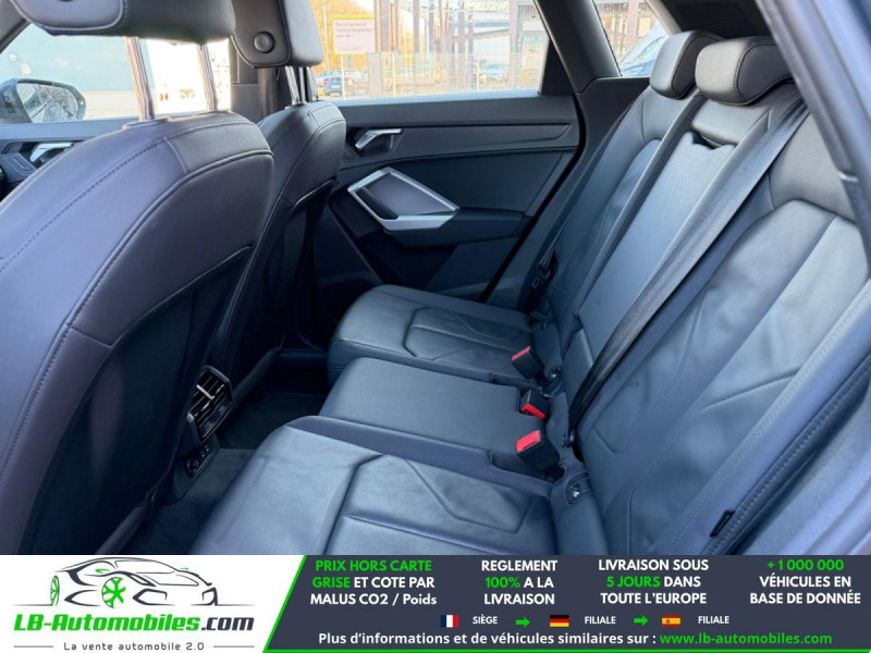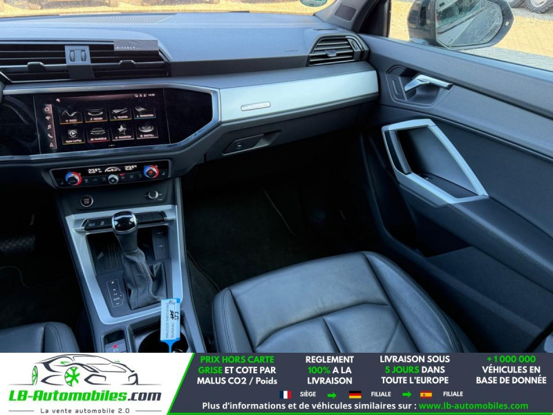 Référence : 1182273 Vos Avantages chez LB-AUTOMOBILES.com / Prix affiché TTC Livré hors carte grise / Livraison sous 10 jours dans toute la France hors 31 / Pas d?avance de frais paiement du véhicule 100% à la livraison par virement. Audi Q3 Neuf remisée, Audi Q3 Occasion Toulouse Beaupuy 31850, Audi Q3 Véhicule sorti de réseau collaborateur, Audi Q3 import, Audi Q3 importateur, Audi Q3 Livraison possible dans toute la France sous 5 jours, Audi Q3, Audi Q3 Location Option Achat, Audi Q3 LLD, Audi Q3 Longue Durée, Audi Q3 TVA récupérable. Possibilité d'extension de garantie 12, 24,36 mois, Pour tout autres voitures import neufs ou occasions collaborateur fortement remisée, Mandataire Audi, Mandataire BMW, Mandataire Volkswagen, Mandataire Mercedes, Mandataire Peugeot Espagne, Mandataire Renault Espagne, Porsche import, Mandataire Citroën Espagne, Mandataire Seat Espagne, n'hésitez pas à nous contacter. « Sous réserve de vente préalable et erreur de saisie » Principaux équipements : - 4x4 - ABS - Accoudoir - Android Auto - Antidémarrage - Apple CarPlay - Assistance au freinage d'urgence - Assistance de démarrage en côte - Assistant feux de route - Avertisseur de franchissement de ligne - Bluetooth - Capteur de lumière - Capteur de pluie - Carnet d'entretien - Chargement par induction pour smartphones - Cockpit numérique - Commande vocale - Contrôle de la pression des pneus - Diesel avec filtre à particules - Direction assistée - Éclairage adaptatif de virage - Éclairage d'ambiance - Écran tactile - ESP - Fermeture centralisée - Feux de jour LED - Garantie - GPS - Grille de protection pour coffre - Isofix - Jantes alliage - Jantes en acier - Kit de réparation d'urgence des pneus - Kit mains libres - Ordinateur de bord - Package hiver - Phare antibrouillard - Phares LED - Pneus été - Pneus hiver - Point Isofix siège passager - Port USB - Radio DAB - Réglage électrique des sièges - Régulateur de vitesse - Rétroviseur extérieur électrique - Rétroviseur intérieur anti-éblouissement automatique - Révision complète - Sièges chauffants - Suspension adaptative - Système antipatinage - Système d'alarme - Système d'appel d'urgence - Système d'avertissement de la distance - Système de détection de la fatigue - Système de limitation de la vitesse - Système de nettoyage des phares - Système Stop & Start - Tuner/radio - Véhicule non-fumeur - Verrouillage centralisé sans clé - Vitre chauffante - Vitres électriques - Volant en cuir - Volant multifonction