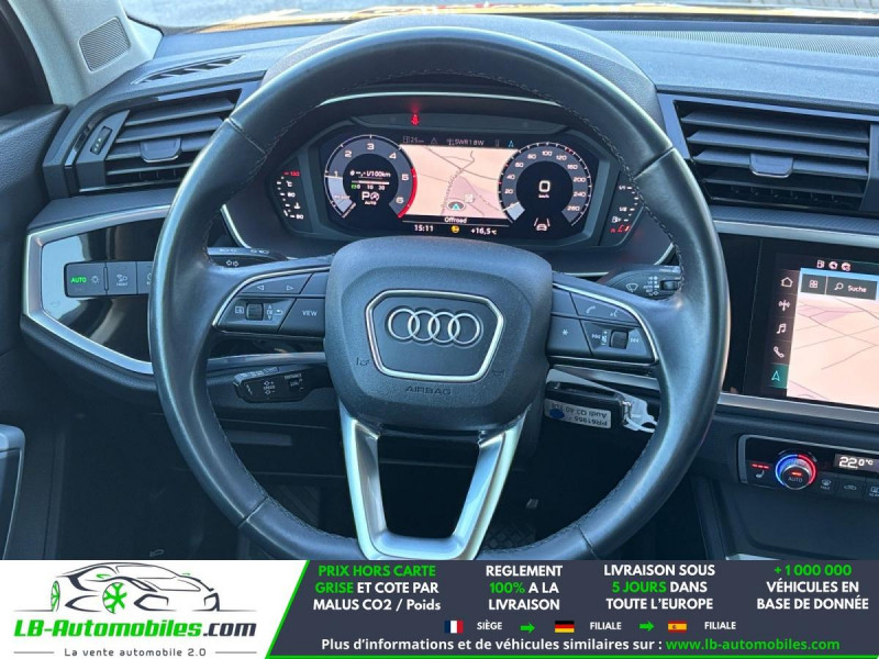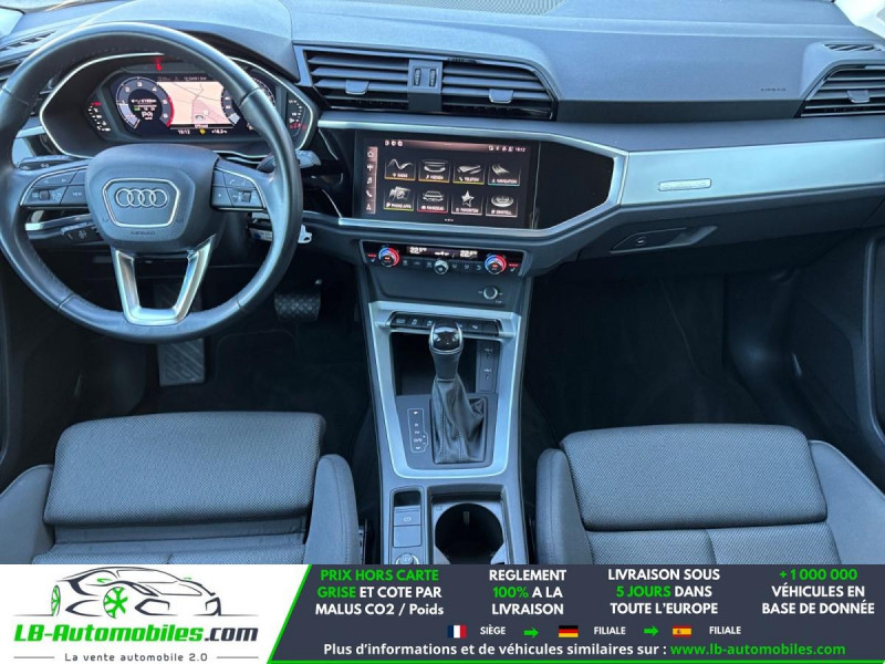 Référence : 1173728 Vos Avantages chez LB-AUTOMOBILES.com / Prix affiché TTC Livré hors carte grise / Livraison sous 10 jours dans toute la France hors 31 / Pas d?avance de frais paiement du véhicule 100% à la livraison par virement. Audi Q3 Neuf remisée, Audi Q3 Occasion Toulouse Beaupuy 31850, Audi Q3 Véhicule sorti de réseau collaborateur, Audi Q3 import, Audi Q3 importateur, Audi Q3 Livraison possible dans toute la France sous 5 jours, Audi Q3, Audi Q3 Location Option Achat, Audi Q3 LLD, Audi Q3 Longue Durée, Audi Q3 TVA récupérable. Possibilité d'extension de garantie 12, 24,36 mois, Pour tout autres voitures import neufs ou occasions collaborateur fortement remisée, Mandataire Audi, Mandataire BMW, Mandataire Volkswagen, Mandataire Mercedes, Mandataire Peugeot Espagne, Mandataire Renault Espagne, Porsche import, Mandataire Citroën Espagne, Mandataire Seat Espagne, n'hésitez pas à nous contacter. « Sous réserve de vente préalable et erreur de saisie » Principaux équipements : - 4x4 - ABS - Accoudoir - Android Auto - Antidémarrage - Apple CarPlay - Assistance de démarrage en côte - Assistant d'angle mort - Assistant feux de route - Attache remorque pivotante - Avertisseur de franchissement de ligne - Bluetooth - Capteur de lumière - Capteur de pluie - Carnet d'entretien - Cockpit numérique - Commande vocale - Contrôle de la pression des pneus - Diesel avec filtre à particules - Direction assistée - Éclairage d'ambiance - Éclairage route non éblouissant - Écran tactile - Feux de jour LED - Galerie de toit - Garantie - GPS - Grille de protection pour coffre - Hayon électrique - Isofix - Jantes alliage - Kit mains libres - Ordinateur de bord - Phares LED - Point Isofix siège passager - Port USB - Radio DAB - Régulateur de vitesse adaptatif - Rétroviseur extérieur électrique - Rétroviseur intérieur anti-éblouissement automatique - Roue galette - Sièges chauffants - Sièges sport - Support lombaire - Système antipatinage - Système d'appel d'urgence - Système d'avertissement de la distance - Système de reconnaissance des panneaux de signalisation - Système de sonorisation - Système Stop & Start - Tuner/radio - Véhicule non-fumeur - Vitres électriques - Volant en cuir - Volant multifonction