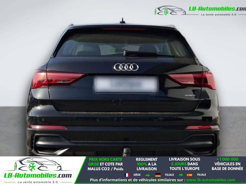 Référence : 1170830 Vos Avantages chez LB-AUTOMOBILES.com / Prix affiché TTC Livré hors carte grise / Livraison sous 10 jours dans toute la France hors 31 / Pas d?avance de frais paiement du véhicule 100% à la livraison par virement. Audi Q3 Neuf remisée, Audi Q3 Occasion Toulouse Beaupuy 31850, Audi Q3 Véhicule sorti de réseau collaborateur, Audi Q3 import, Audi Q3 importateur, Audi Q3 Livraison possible dans toute la France sous 5 jours, Audi Q3, Audi Q3 Location Option Achat, Audi Q3 LLD, Audi Q3 Longue Durée, Audi Q3 TVA récupérable. Possibilité d'extension de garantie 12, 24,36 mois, Pour tout autres voitures import neufs ou occasions collaborateur fortement remisée, Mandataire Audi, Mandataire BMW, Mandataire Volkswagen, Mandataire Mercedes, Mandataire Peugeot Espagne, Mandataire Renault Espagne, Porsche import, Mandataire Citroën Espagne, Mandataire Seat Espagne, n'hésitez pas à nous contacter. « Sous réserve de vente préalable et erreur de saisie » Principaux équipements : - 4x4 - ABS - Accoudoir - Antidémarrage - Assistance au freinage d'urgence - Assistance de démarrage en côte - Assistant feux de route - Attache remorque pivotante - Avertisseur de franchissement de ligne - Bluetooth - Capteur de lumière - Capteur de pluie - Carnet d'entretien - Cockpit numérique - Contrôle de la pression des pneus - Direction assistée - Éclairage adaptatif de virage - Éclairage d'ambiance - Éclairage route non éblouissant - ESP - Fermeture centralisée - Feux de jour LED - Galerie de toit - Garantie - GPS - Jantes alliage - Kit mains libres - Ordinateur de bord - Phares LED - Radio DAB - Régulateur de vitesse adaptatif - Rétroviseur extérieur électrique - Rétroviseur intérieur anti-éblouissement automatique - Rétroviseurs extérieurs rabattables électriquement - Roue galette - Sièges chauffants - Support lombaire - Suspension sport - Système antipatinage - Système d'appel d'urgence - Système d'avertissement de la distance - Système de limitation de la vitesse - Système de nettoyage des phares - Système de reconnaissance des panneaux de signalisation - Système Stop & Start - Tuner/radio - Véhicule non-fumeur - Vitres électriques - Volant en cuir - Volant multifonction