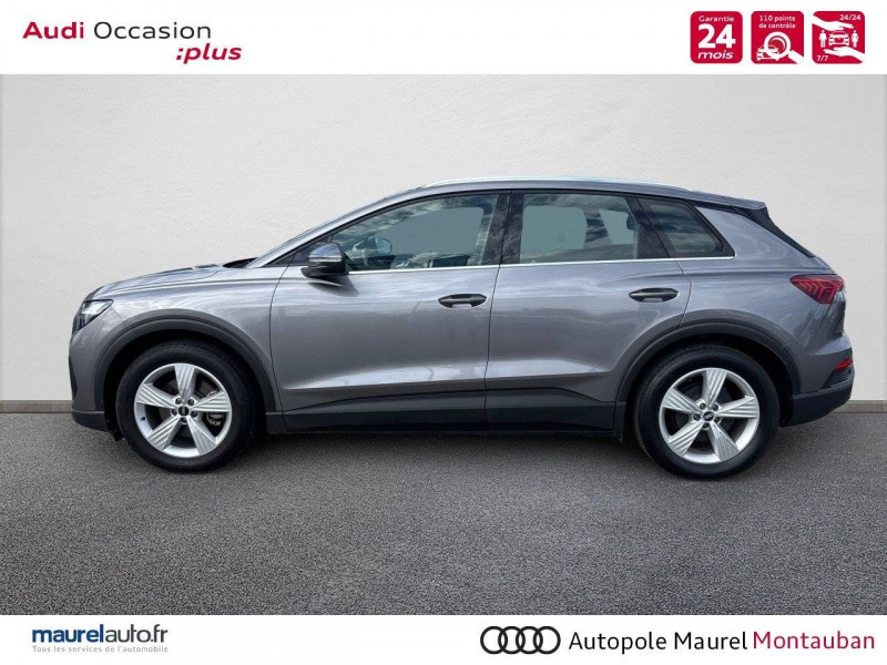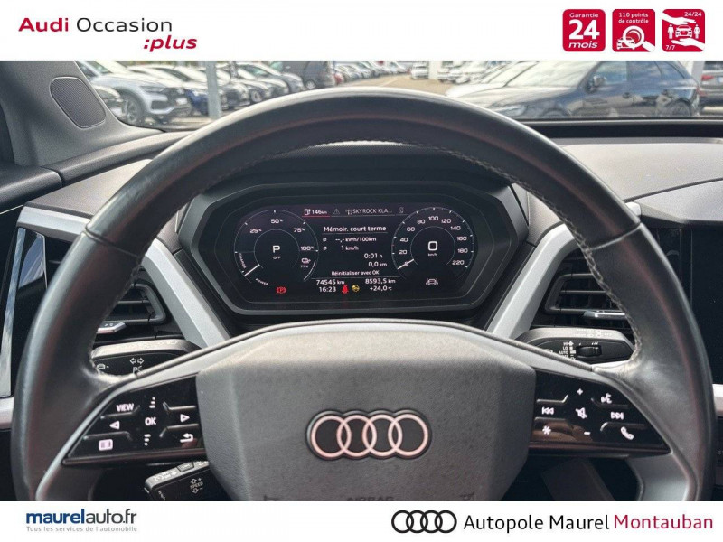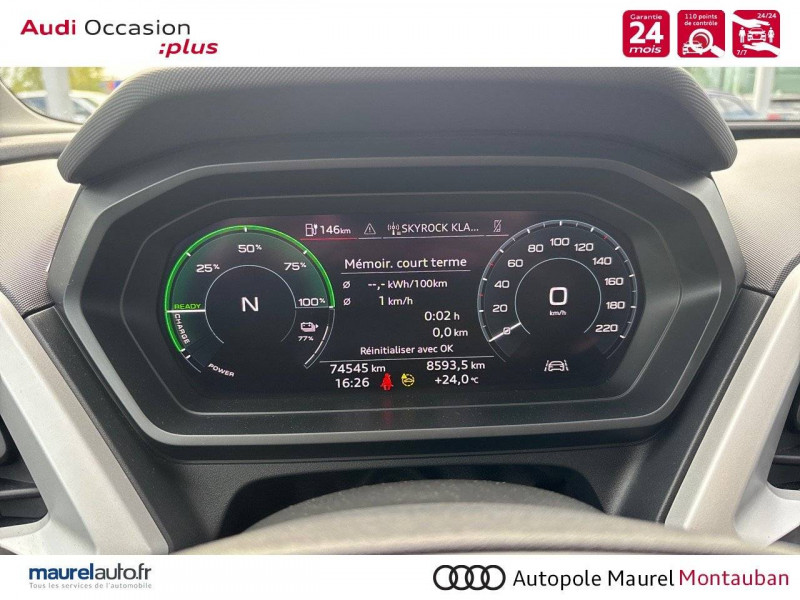 Airbags latéraux à l'AV et système d'airbags de tête / Alerte de sortie de voie / Applications décoratives effet peinture haptique / Audi pre sense front / Boitiers de rétroviseurs extérieurs couleur carrosserie / Câble de recharge mode 3 type 2 3 32A / Ciel de pavillon en tissu Gris Acier / Cléà fréquence radio (sans safelock) / Combiné d'instruments numérique Digital Cockpit 10,25" / Commande de désactivation de l'airbag passager AV / Détecteur de pluie et de luminosité / Direction assistée électromécanique / Eclairage intérieur / HPs (4 passifs et 1 central) / Interface Bluetooth / Jantes 19" style à 5 bras 8,0J x 19"pneus 235/55 R19 AV, 255/50 R19 AR / Outillage de bord / Pack intérieur Standard / Rampes de pavillon en aluminium / Rappel de ceinture de sécurité avec dispositif AR de détection d'occupation du siège / Rétroviseur intérieur jour/nuit manuel / Sécurité enfant électrique / Sièges AV réglables manuellement Hauteur et positionnement en longueur, Inclinaison de dossier, Hauteur des appuie-tête et des ceintures / Sièges i-Size et top tether Siège passager AV i-Size et les deux sièges de côtéà l'AR i-Size et top tether / Sièges standard à l'AV / Tapis de sol AV/AR / Volant en cuir multifonction, 2 branches avec touches tactiles