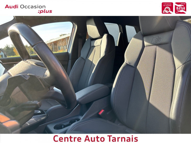 Applications décoratives en aluminium mat Brossé Foncé / Cléà fréquence radio (sans safelock) en combinaison avec Pack Antivol / Enjoliveurs de seuil de porte avec inserts en aluminium à l'AV, éclairés, monogramme S / Jantes 20" style à 5 branches en Y 8,0Jx 20", pneus 235/50 R20 AVet 9,0Jx 20", pneus255/45 R20 AR / Pack Antivol / Pack assistance L / Pack Eclairage d'Ambiance / Pack Fonction Rangement / Pack intérieur S line 1 / Pack MMI Navigation advanced / Rampes de pavillon en aluminium / Volant en cuir Sport multifonction, 2 branches, méplat haut et bas avec palettes de récupération d'énergie / Airbags latéraux à l'AV et système d'airbags de tête / Alerte de sortie de voie / Audi pre sense front / Boitiers de rétroviseurs extérieurs couleur carrosserie / Ciel de pavillon en tissu Gris Acier / Combiné d'instruments numérique Digital Cockpit 10,25" / Commande de désactivation de l'airbag passager AV / Câble de recharge mode 3 type 2 3 32A / Câble de recharge pour téléphone portable / Direction assistée électromécanique / Détecteur de pluie et de luminosité / Eclairage intérieur / Extérieur S Line / HPs (4 passifs et 1 central) / Interface Bluetooth / Outillage de bord / Rappel de ceinture de sécurité avec dispositif AR de détection d'occupation du siège / Rétroviseur intérieur jour/nuit manuel / Sièges AV réglables manuellement Hauteur et positionnement en longueur, Inclinaison de dossier, Hauteur des appuie-tête et des ceintures / Sièges i-Size et top tether Siège passager AV i-Size et les deux sièges de côtéà l'AR i-Size et top tether / Sièges standard à l'AV / Système de lecture des panneaux de signalisation par caméra / Sécurité enfant électrique / Tapis de sol AV/AR / Triangle de présignalisation