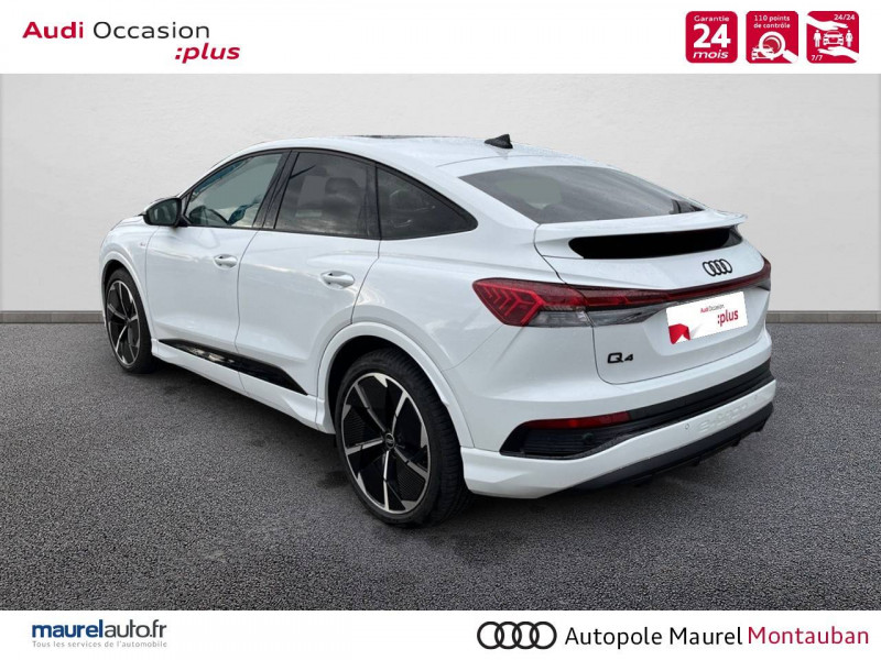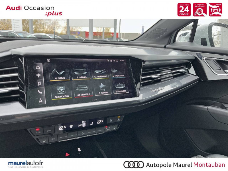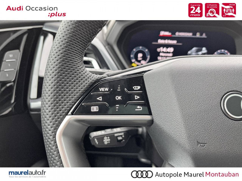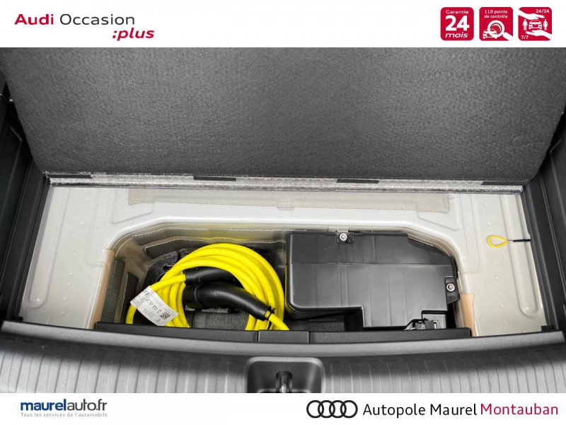 Airbags latéraux à l'AV et système d'airbags de tête / Alerte de sortie de voie avec assistance d'urgence / Assistant de changement de voie avec avertissement d'ouverture de porte et assistant de circulation / Audi Drive Select / Audi pre sense basic et pre sense rear / Audi pre sense front / Audi smartphone interface / Audi Sound System / Boîte de vitesse automatique à fonction continue / Boitiers de rétroviseurs extérieurs couleur carrosserie / Câble de recharge Mode 3, triphasé, 32A pour borne de recharge / Câbles de recharge pour téléphone portable / Cléà fréquence radio (sans safelock) / Commande de désactivation de l'airbag passager AV / Contrôle de la traction (TCS) / Contrôle électronique de stabilisation (ESC) / Détecteur de pluie et de luminosité / Direction assistée électromécanique / Eclairage intérieur / Hayon assistéélectriquement pour l'ouverture et la fermeture / HPs (4 passifs et 1 central) / Interface Bluetooth / Jantes 19" style à 5 bras 8,0J x 19"pneus 235/55 R19 AV, 255/50 R19 AR / Outillage de bord / Pack intérieur Standard - Sellerie Tissu - Sièges standard à l'AV - Dossier de banquette AR rabattable 60/40 - Insert décoratif peinture haptique Noir - Ciel de pavillon en tissu gris acier - Revêtement de bras de porte sans cuir / Pack MMI Navigation plus - Audi connect Navigation & Infotainment - MMI Navigation plus avec MMI touch - Audi virtual cockpit - Système de lecture des panneaux de signalisation par caméra / Rappel de ceinture de sécurité avec dispositif AR de détection d'occupation du siège / Rétroviseur intérieur jour/nuit manuel / Sécurité enfant électrique / Sièges AV réglables manuellement Hauteur et positionnement en longueur, Inclinaison de dossier, Hauteur des appuie-tête et des ceintures / Sièges i-Size et top tether Siège passager AV i-Size et les deux sièges de côtéà l'AR i-Size et top tether / Tapis de sol AV/AR / Triangle de présignalisation / Volant en cuir multifonction, 2 branches avec touches tactiles