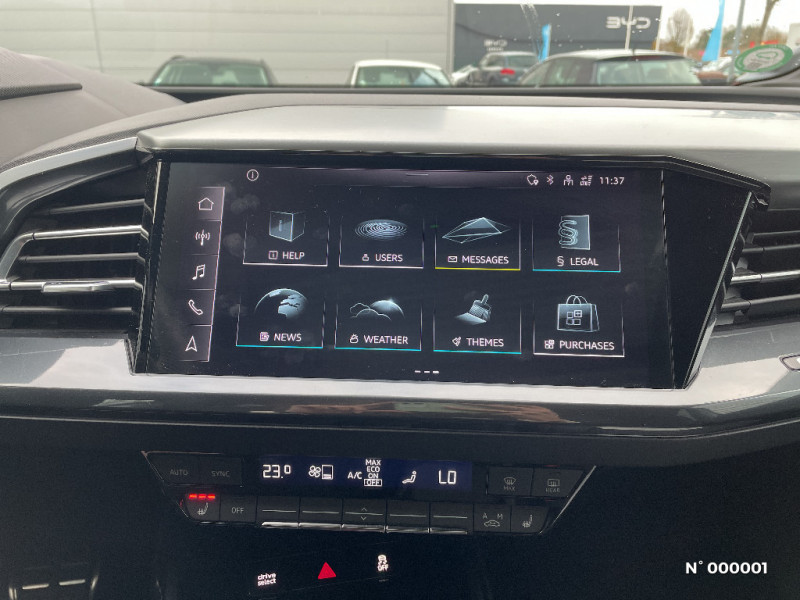 Interface Bluetooth / Eclairage intérieur / Alerte de sortie de voie / Cléà fréquence radio (sans safelock) en combinaison avec Pack Antivol / Pack Rangement / Câble de recharge pour téléphone portable / Volant en cuir Sport multifonction, 2 branches / Câble de recharge mode 3 type 2 3 32A / Trousse de secours avec triangle de présignalisation et gilets rétro-réfléchissants / Sièges standard à l'AV / Ciel de pavillon en tissu Gris Acier / Trousse de secours avec triangle de présignalisation / Hayon assistéélectriquement pour l'ouverture et la fermeture / Combiné d'instruments numérique Digital Cockpit 10,25" / Système de lecture des panneaux de signalisation par caméra / Commande de désactivation de l'airbag passager AV / Audi Drive Select / Sièges AV réglables manuellement: Hauteur et positionnement en longueur, Inclinaison de dossier, Hauteur des appuie-tête et des ceintures / Outillage de bord / Airbags latéraux AV et système d'airbags de tête / Sièges i-Size et top tether Siège passager AV i-Size et les deux sièges de côtéà l'AR i-Size et top tether / Audi pre sense front / Applications décoratives effet peinture haptique / HPs (4 passifs et 1 central) / Rappel de ceinture de sécurité avec dispositif AR de détection d'occupation du siège / Pack MMI Navigation advanced / Tapis de sol AV/AR / Sécurité enfant électrique / Pack assistance L / Pack Antivol / Pack intérieur 4 / Jantes 19" style à 5 bras 8,0J x 19"pneus 235/55 R19 AV, 255/50 R19 AR / Boitiers de rétroviseurs extérieurs couleur carrosserie / Rétroviseur intérieur jour/nuit manuel / Pack Fonction Rangement / Détecteur de pluie et de luminosité