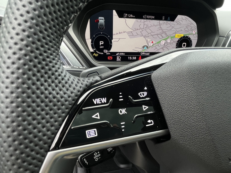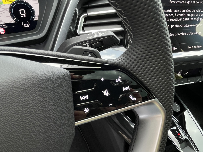 Boîte de vitesse automatique à fonction continue / Jantes 19" style à 5 bras 8,0J x 19"pneus 235/55 R19 AV, 255/50 R19 AR / Rampes de pavillon en aluminium / Volant en cuir multifonction, 2 branches avec touches tactiles / Airbags latéraux AV et système d'airbags de tête / Alerte de sortie de voie avec assistance d'urgence / Assistant de changement de voie avec avertissement d'ouverture de porte et assistant de circulation / Audi pre sense basic et pre sense rear / Audi pre sense front / Audi smartphone interface / Audi Sound System / Boitiers de rétroviseurs extérieurs couleur carrosserie / Cléà fréquence radio (sans safelock) / Commande de désactivation de l'airbag passager AV / Contrôle de la traction (TCS) / Contrôle électronique de stabilisation (ESC) / Câble de recharge Mode 3, triphasé, 32A pour borne de recharge / Câbles de recharge pour téléphone portable / Direction assistée électromécanique / Détecteur de pluie et de luminosité / Eclairage intérieur / Hayon assistéélectriquement pour l'ouverture et la fermeture / HPs (4 passifs et 1 central) / Interface Bluetooth / Outillage de bord / Rappel de ceinture de sécurité avec dispositif AR de détection d'occupation du siège / Rétroviseur intérieur jour/nuit manuel / Sièges AV réglables manuellement: Hauteur et positionnement en longueur, Inclinaison de dossier, Hauteur des appuie-tête et des ceintures / Sièges i-Size et top tether Siège passager AV i-Size et les deux sièges de côtéà l'AR i-Size et top tether / Sécurité enfant électrique / Tapis de sol AV/AR / Triangle de présignalisation
