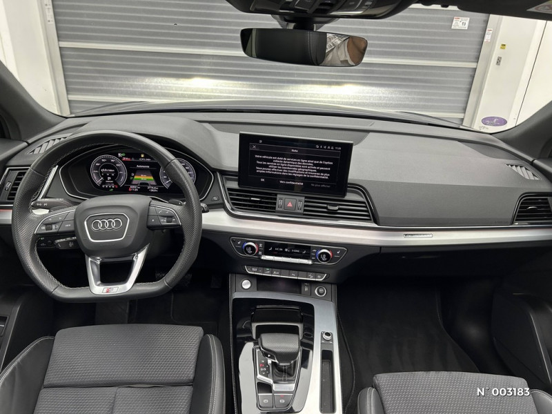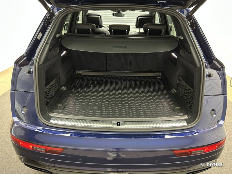 Préparation pour crochet d'attelage / Châssis de série / Ceintures de sécurité automatiques à 3 points pour tous les sièges, contrôle de port de ceinture AV / Détecteur de pluie et de luminosité / Direction assistée électromécanique / Contrôle électronique de stabilisation ESC / Diffuseur AR en Noir à grain mat / Coffre à ouverture et fermeture électriques / Colonne de direction de sécurité / Commande de désactivation de l'airbag passager AV / Audi smartphone interface / Audi Virtual Cockpit / Audi Sound System avec 10 HP / Ciel de pavillon en Tissu Noir / Banquette 3 places avec appuie-tête en L réglables en hauteur Dossier de banquette AR rabattable en trois parties 40 : 20 : 40 ou complètement / Câble de charge pour station publique en courant alternatif pour charge en Mode 3 / Type 2 / Blocage électronique de différentiel EDS / Câble de charge pour chargeur ''e-tron compact'', 8 A, type domestique / Câbles de recharge pour téléphone portable, compatibles iPhone et Android / Audi connect avec carte SIM intégrée (e-SIM) et licence d'utilisation pour 3 ans / Appui lombaire à 4 axes pour les sièges AV, réglages électriques, horizontal et vertical / Applications décoratives en Aluminium brossé mat / Audi Hold Assist / Audi Phone Box light / Audi Pre-Sense City / Audi drive select / Audi Parking System Plus / Antipatinage ASR pour une motricité optimale, empêche le patinage des roues motrices / Airbags latéraux AV avec système d'airbags de tête / Appel d'urgence avec service Audi connect + commande de véhicule / Vide-poches dans les contre-portes AV/AR / Vide-poches côté conducteur / Porte-gobelets dans l'accoudoir central AR / Filet de coffre / Eclairage intérieur / Filet dans le logement gauche du coffre / Filet de rangement au dos des sièges AV / Sangle de serrage à droite dans le coffre / Boîte à gants verrouillable / Tire Mobility System / Revêtement noir brillant à l'extérieur sur les montants de pavillon centraux et les triangles de portières AR / Eclairage d'ambiance des portières AV/AR / Triangle de présignalisation / Baguette le long du pavillon et sur les appuis de vitre en aluminium anodisé / Vitrage privacy (vitres surteintées) / Tapis de coffre à bagages / Eclairage d'ambiance de la console centrale AV / Commande intérieure des portières AV/AR / Vitrage acoustique pour les vitres de portières AV / Eclairage périphérique dans les poignées de portières extérieures / Eclairage des seuils de portes AV / Eclairage dans la zone des pieds AV / Volant Sport contour en Cuir style 3 branches aplati en bas avec multifonction plus avec palettes de changement de vitesses / Eclairage du porte-boissons AV / Régulateur de vitesse incluant limiteur de vitesse / Système d'information du conducteur avec écran TFT monochrome de 5" / Rétroviseur intérieur jour/nuit automatique sans encadrement (Frameless) / Réservoir à carburant spécifique PHEV (54 litres) / Sellerie mixte Cuir/Tissu Séquence S line / Rétroviseurs extérieurs réglables et escamotables électriquement, jour/nuit automatique, dégivrants des 2 côtés / Tapis complémentaires AV/AR / Système de recharge e-tron compact / Sièges AV réglables manuellement en hauteur et en profondeur ; réglage manuel des appuie-tête en hauteur / Recommandation de repos / Rétroviseurs extérieurs avec clignotants à LED intégrés couleur carrosserie / Récupération d'énergie au freinage / Surfaces d'accentuation faà§on verre en Noir / Quattro transmission intégrale permanente / Rampes de pavillon en aluminium anodisé / Sécurité enfants manuelle / S tronic : boîte séquentielle 7 vitesses à double embrayage avec commande électrohydraulique / Ecrous de roues antivol / Jantes en aluminium coulé en style étoile à 5 bras 8Jx18, pneus 235/60 R18 / Identification du modèle selon le nouveau marquage de puissance / Interface Bluetooth / Finition extérieure S line / Interfaces de charge USB pour les passagers AR / Keyless entry & go : Clé Confort (keyless entry) + Touche Start/Stop pour arrêt et démarrage du moteur (keyless go) / Fixation pour sièges enfants ISOFIX et Top Tether pour les sièges extérieurs AR / Passage de roue contrasté en plastique Noir grainé / Moulures de seuil avec insert en aluminium dans les ouvertures des portières AV / Phares Matrix LED, feux AR à LED / Outillage de bord (sans cric) / Moulures de seuil avec insert en aluminium AV, éclairées, avec inscription S / Navigation MMI plus avec MMI touch / Lave-phares haute pression