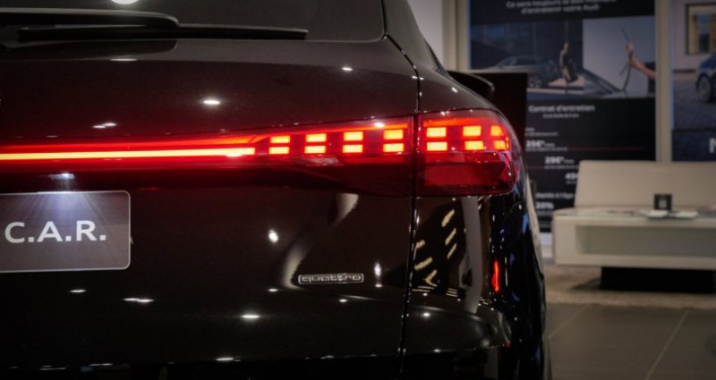 Cylindrée : 1986 cm3 Nb. Vitesse : 7 - Pack Tech Plus Pack Tech, Clé confort, Clé digitale, Ecran MMI pour passager AV, Fonction Matrix, Signatures lumineusses AV, Caméras périmétriques, Side assist avec assist. de trafic transversale AR, Système de protection proactive des occupants, Airbags latéraux AV et AR avec syst. d'airbags rideaux et airbag central AV, Alerte de sortie de voie avec pilotage semi-automatique du véhicule en cas d'urgence. Détection de présence AR après sortie de véhicule et verrouillage. *** Avec : Airbags latéraux avec système d'airbags rideaux à l'AR *** Avec : Alerte de sortie de voie avec pilotage semi-automatique du véhicule en cas d'urgence *** Avec : Caméras périmétriques Caméras AV, AR et sur les côtés *** Avec : Clé confort (sans SAFELOCK) *** Avec : Clé digitale *** Avec : Détection de présence à l'AR après sortie de véhicule et verrouillage *** Avec : Ecran MMI pour passager AV *** Avec : Fonction Matrix *** Avec : Pack Tech -Clim. auto. 3 zones, -Rétroviseur int. à réglage jour/nuit auto., -Rétroviseurs ext. réglables, dégivrants et rabattables électriquement., -Projection de logo sur le sol depuis les rétroviseurs ext, -Lave-projecteurs, -Audi Application Store et smartphone interface, -Audi sound syst., -Projecteurs à LED plus, -Assistant feux de route, -Bloc de feux AR à LED pro, -Syst. d'aide au stationnement plus, -Park assist plus, -Caméra de recul, -Régulateur de vitesse adapt. *** Avec : Side assist avec assistance de trafic transversale AR *** Avec : Signatures lumineuses numériques à l'AV *** Avec : Système de protection proactive des occupants - Pack Esthétique Noir Pack Esthétique Noir Plus, Boîtiers de rétroviseurs extérieur noirs, Embouts de sortie d'échappement chromés foncés *** Avec : Boîtiers de rétroviseurs extérieur noirs *** Avec : Embouts de sortie d'échappement chromés foncés *** Avec : Pack Esthétique Noir Plus - Toit panoramique ouvrant en verre - Teintes métallisées - Vitrage Privacy : lunette AR, vitres de portières AR et vitres latérales AR surteintées - Etriers de freins rouges - Eclairage d'ambiance Pro - Jantes 19style à 5 branches doubles, Gris Graphite, tournées brillantes Pneus 235/55 R19 - Assistant d'intersection AV Surveille la zone située devant et sur le côté du véhicule aux intersections et aux sorties de route à l'aide des capteurs radar intégrés à l'AV du véhicule. Dans les limites du système, il détecte les objets en mouvement tels que les voitures qui s'approchent. Le système fonctionne dans une plage de vitesse allant jusqu'à 65 km/h. Dans les situations jugées critiques, le système émet des messages d'avertissement en plusieurs étapes. Tout d'abord, un avertissement visuel et sonore est émis. - Audi connect Navigation & Infotainment - Audi Virtual cockpit plus Combiné d'instruments entièrement numérique de 11,9 avec technologie OLED - Boîte automatique S Tronic 7 vitesses - Jantes 19'' style à 5 branches double Pneus 235/55 R19 - MMI Navigation plus avec MMI touch Le système de navigation MMI plus avec MMI touch offre : - l'écran panoramique MMI avec technologie OLED, comprenant l'Audi virtual cockpit plus avec écran de 11,9 pouces ainsi que l'écran MMI touch de14,5 - système de navigation avec affichage des cartes et guidage routier sur l'écran couleur haute résolution de 14,5 - mise à jour des cartes en ligne - Affichage de cartes en 3D montrant de nombreux sites d'intérêt - informations routières en ligne - MMI search - MMI touch - Pack extérieur S line - Pack Rangement Filet de rangement au dos des dossiers des sièges, vide-poches côté conducteur, boîte à gants verrouillable, filet de coffre à bagages, Banquette AR plus avec réglage vers l'AV et l'AR, réglage de l'angle du dossier, accoudoir centrale avec porte-gobelets, sièges repliables mode 40:20:40 ou entièrement repliés - Pack style brillant - Pack Tech -Clim. auto. 3 zones, -Rétroviseur int. à réglage jour/nuit auto., -Rétroviseurs ext. réglables, dégivrants et rabattables électriquement., -Projection de logo sur le sol depuis les rétroviseurs ext, -Lave-projecteurs, -Audi Application Store et smartphone interface, -Audi sound syst., -Projecteurs à LED plus, -Assistant feux de route, -Bloc de feux AR à LED pro, -Syst. d'aide au stationnement plus, -Park assist plus, -Caméra de recul, -Régulateur de vitesse adapt. - Seuils de porte avec inserts en aluminium à l'AV, éclairés, avec monogramme S - Volant multifonction S en cuir à trois branches avec palettes - 2 ports USB-C à l'AV et l'AR - ABS - Accoudoir central confort à l'AV Avec réglage de la hauteur - Airbags latéraux à l'AV avec système d'airbags rideaux et airbag central à l'AV - Airbags à l'AV, airbag du passager AV désactivable - Alerte de sortie de voie - Assistance au freinage d'urgence à l'AV Scanne la zone située devant le véhicule et peut, en fonction de la situation et de la vitesse, avertir de l'imminence d'une collision et déclencher les mesures de freinage appropriées. Les piétons et les cyclistes peuvent être détectés jusqu'à une vitesse d'environ 85 km/h et les véhicules jusqu'à la vitesse maximale. Si une collision frontale imminente est détectée, le système émet un avertissement visuel, acoustique et haptique. Afin de réduire la vitesse ou d'éviter une collision. - Assistant d'évitement et assistant de braquage - Audi connect appel d'urgence & service avec Audi connect remote & control - Audi Drive Select Permet de sélectionner différents modes de conduite: Efficiency, Confort, Dynamic, Lift, Individual. Les systèmes et équipements du véhicules s'adaptent suivant le mode sélectionné - Audi phone box En plus des fonctionalité de l'Audi phone box light, permet un signal amplifié pour une meilleure connectivité. - Avertissement de contrôle de la banquette AR - Boîtiers de rétroviseurs dans la teinte du véhicule - C