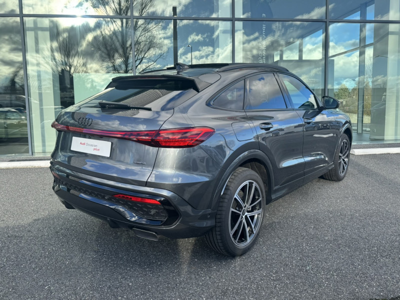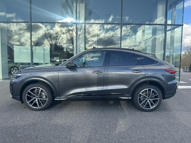 Assistant d'intersection AV Surveille la zone située devant et sur le côté du véhicule aux intersections et aux sorties de route à l'aide des capteurs radar intégrés à l'AV du véhicule. Dans les limites du système, il détecte les objets en mouvement tels que les voitures qui s'approchent. Le système fonctionne dans une plage de vitesse allant jusqu'à 65 km/h. Dans les situations jugées critiques, le système émet des messages d'avertissement en plusieurs étapes. Tout d'abord, un avertissement visuel et sonore est émis. / Audi connect Navigation & Infotainment / Audi Virtual cockpit plus Combiné d'instruments entièrement numérique de 11,9" avec technologie OLED / Boîte automatique S Tronic 7 vitesses / Climatisation stationnaire Les fonctions de climatisation peuvent être programmées ou activées facilement via le MMI touch dans le véhicule ou peuvent être activées à l'aide de l'application myAudi. La climatisation stationnaire fonctionne indépendamment du fait que la voiture soit en charge ou non, à condition que la batterie haute tension ait un état de charge suffisamment élevé. / Jantes 19'' style à 5 branches double Pneus 235/55 R19 / MMI Navigation plus avec MMI touch Le système de navigation MMI plus avec MMI touch offre : - l'écran panoramique MMI avec technologie OLED, comprenant l'Audi virtual cockpit plus avec écran de 11,9 pouces ainsi que l'écran MMI touch de14,5" - système de navigation avec affichage des cartes et guidage routier sur l'écran couleur haute résolution de 14,5" - mise à jour des cartes en ligne - Affichage de cartes en 3D montrant de nombreux sites d'intérêt - informations routières en ligne - MMI search - MMI touch / Pack extérieur S line / Pack Rangement Filet de rangement au dos des dossiers des sièges, vide-poches côté conducteur, boîte à gants verrouillable, filet de coffre à bagages, Banquette AR plus avec réglage vers l'AV et l'AR, réglage de l'angle du dossier, accoudoir centrale avec porte-gobelets, sièges repliables mode 40:20:40 ou entièrement repliés / Pack style brillant / Pack Tech -Clim. auto. 3 zones, -Rétroviseur int. à réglage jour/nuit auto., -Rétroviseurs ext. réglables, dégivrants et rabattables électriquement., -Projection de logo sur le sol depuis les rétroviseurs ext, -Lave-projecteurs, -Audi Application Store et smartphone interface, -Audi sound syst., -Projecteurs à LED plus, -Assistant feux de route, -Bloc de feux AR à LED pro, -Syst. d'aide au stationnement plus, -Park assist plus, -Caméra de recul, -Régulateur de vitesse adapt. / Seuils de porte avec inserts en aluminium à l'AV, éclairés, avec monogramme S / Volant multifonction S en cuir à trois branches avec palettes / 2 ports USB-C à l'AV et l'AR / Accoudoir central confort à l'AV Avec réglage de la hauteur / Airbags latéraux à l'AV avec système d'airbags rideaux et airbag central à l'AV / Airbags à l'AV, airbag du passager AV désactivable / Alerte de sortie de voie / Assistance au freinage d'urgence à l'AV Scanne la zone située devant le véhicule et peut, en fonction de la situation et de la vitesse, avertir de l'imminence d'une collision et déclencher les mesures de freinage appropriées. Les piétons et les cyclistes peuvent être détectés jusqu'à une vitesse d'environ 85 km/h et les véhicules jusqu'à la vitesse maximale. Si une collisionfrontale imminente est détectée, le système émet un avertissement visuel, acoustique et haptique. Afin de réduire la vitesse ou d'éviter une collision. / Assistant d'évitement et assistant de braquage / Audi connect appel d'urgence & service avec Audi connect remote & control / Audi Drive Select Permet de sélectionner différents modes de conduite: Efficiency, Confort, Dynamic, Lift, Individual. Les systèmes et équipements du véhicules s'adaptent suivant le mode sélectionné / Audi phone box En plus des fonctionalité de l'Audi phone box light, permet un signal amplifié pour une meilleure connectivité. / Avertissement de contrôle de la banquette AR / Boîtiers de rétroviseurs dans la teinte du véhicule / Cléà radio commande sans SAFELOCK / Contrôle de la traction (TCS) / Câble de recharge Mode 3, type 2, pour borne de recharge (triphasé, 32A) / Détecteur de pluie et de luminosité / Ecrous de roues antivol / Eléments de la console centrale noir brillant / ESC: Contrôle électronique de stabilisation / Fixation de siège pour enfant i-Size côté passager AV et i-Size et Top Tether pour les sièges AR extérieurs / Garniture du tableau de bord, des contre-portes et des accoudoirs de portes en tissu Cascade / Hayon de coffre à ouverture et fermeture électrique / Kit anti-crevaison / Limiteur de vitesse basé sur la détection de signalisation routière / Pavillon en tissu noir / Projection du feu stop sous le spoiler / Pédalier et repose-pieds en acier inoxydable / Réglage du volant manuel / Sonorité extérieure Système acoustique permettant de produire un avertissement sonore à l'extérieur du véhicule à faible vitesse dans le but d'accroître la sécurité routière / Suspension Sport Meilleure dynamique de conduite, une tenue de route agile et une allure sportive (Châssis abaissé de 20mm) / Tapis de sol AV/AR / Vitrage latérales et AR athermique