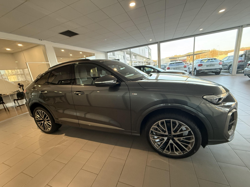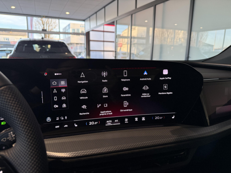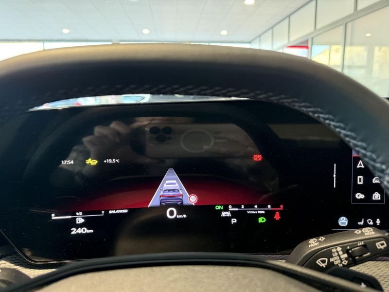 Assistant d'intersection AV Surveille la zone située devant et sur le côté du véhicule aux intersections et aux sorties de route à l'aide des capteurs radar intégrés à l'AV du véhicule. Dans les limites du système, il détecte les objets en mouvement tels que les voitures qui s'approchent. Le système fonctionne dans une plage de vitesse allant jusqu'à 65 km/h. Dans les situations jugées critiques, le système émet des messages d'avertissement en plusieurs étapes. Tout d'abord, un avertissement visuel et sonore est émis. / Audi connect Navigation & Infotainment / Audi Virtual cockpit plus Combiné d'instruments entièrement numérique de 11,9" avec technologie OLED / Boîte automatique S Tronic 7 vitesses / Jantes 19'' style à 5 branches double Pneus 235/55 R19 / MMI Navigation plus avec MMI touch Le système de navigation MMI plus avec MMI touch offre : - l'écran panoramique MMI avec technologie OLED, comprenant l'Audi virtual cockpit plus avec écran de 11,9 pouces ainsi que l'écran MMI touch de14,5" - système de navigation avec affichage des cartes et guidage routier sur l'écran couleur haute résolution de 14,5" - mise à jour des cartes en ligne - Affichage de cartes en 3D montrant de nombreux sites d'intérêt - informations routières en ligne - MMI search - MMI touch / Pack extérieur S line / Pack Rangement Filet de rangement au dos des dossiers des sièges, vide-poches côté conducteur, boîte à gants verrouillable, filet de coffre à bagages, Banquette AR plus avec réglage vers l'AV et l'AR, réglage de l'angle du dossier, accoudoir centrale avec porte-gobelets, sièges repliables mode 40:20:40 ou entièrement repliés / Pack style brillant / Pack Tech -Clim. auto. 3 zones, -Rétroviseur int. à réglage jour/nuit auto., -Rétroviseurs ext. réglables, dégivrants et rabattables électriquement., -Projection de logo sur le sol depuis les rétroviseurs ext, -Lave-projecteurs, -Audi Application Store et smartphone interface, -Audi sound syst., -Projecteurs à LED plus, -Assistant feux de route, -Bloc de feux AR à LED pro, -Syst. d'aide au stationnement plus, -Park assist plus, -Caméra de recul, -Régulateur de vitesse adapt. / Seuils de porte avec inserts en aluminium à l'AV, éclairés, avec monogramme S / Volant multifonction S en cuir à trois branches avec palettes / 2 ports USB-C à l'AV et l'AR / Accoudoir central confort à l'AV Avec réglage de la hauteur / Airbags latéraux à l'AV avec système d'airbags rideaux et airbag central à l'AV / Airbags à l'AV, airbag du passager AV désactivable / Alerte de sortie de voie / Assistance au freinage d'urgence à l'AV Scanne la zone située devant le véhicule et peut, en fonction de la situation et de la vitesse, avertir de l'imminence d'une collision et déclencher les mesures de freinage appropriées. Les piétons et les cyclistes peuvent être détectés jusqu'à une vitesse d'environ 85 km/h et les véhicules jusqu'à la vitesse maximale. Si une collision frontale imminente est détectée, le système émet un avertissement visuel, acoustique et haptique. Afin de réduire la vitesse ou d'éviter une collision. / Assistant d'évitement et assistant de braquage / Audi connect appel d'urgence & service avec Audi connect remote & control / Audi Drive Select Permet de sélectionner différents modes de conduite: Efficiency, Confort, Dynamic, Lift, Individual. Les systèmes et équipements du véhicules s'adaptent suivant le mode sélectionné / Audi phone box En plus des fonctionalité de l'Audi phone box light, permet un signal amplifié pour une meilleure connectivité. / Avertissement de contrôle de la banquette AR / Boîtiers de rétroviseurs dans la teinte du véhicule / Cléà radio commande sans SAFELOCK / Contrôle de la traction (TCS) / Détecteur de pluie et de luminosité / Ecrous de roues antivol / Eléments de la console centrale Noir Brillant / ESC: Contrôle électronique de stabilisation / Fixation de siège pour enfant i-Size côté passager AV et i-Size et Top Tether pour les sièges AR extérieurs / Garniture du tableau de bord, des contre-portes et des accoudoirs de portes en tissu Kaskade / Hayon de coffre à ouverture et fermeture électrique / Kit anti-crevaison (sauf si pneus auto-colmatants) / Limiteur de vitesse basé sur la détection de signalisation routière / Pavillon en tissu noir / Projection du feu stop sous le spoiler / Pédalier et repose-pieds en acier inoxydable / Réglage du volant manuel / Sonorité extérieure Système acoustique permettant de produire un avertissement sonore à l'extérieur du véhicule à faible vitesse dans le but d'accroître la sécurité routière / Suspension Confort / Tapis de sol AV/AR / Vitrage latérales et AR athermique