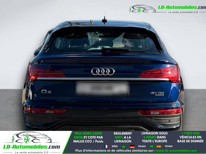 Référence : 1161831 Vos Avantages chez LB-AUTOMOBILES.com / Prix affiché TTC Livré hors carte grise / Livraison sous 10 jours dans toute la France hors 31 / Pas d?avance de frais paiement du véhicule 100% à la livraison par virement. Audi Q5 Sportback Neuf remisée, Audi Q5 Sportback Occasion Toulouse Beaupuy 31850, Audi Q5 Sportback Véhicule sorti de réseau collaborateur, Audi Q5 Sportback import, Audi Q5 Sportback importateur, Audi Q5 Sportback Livraison possible dans toute la France sous 5 jours, Audi Q5 Sportback, Audi Q5 Sportback Location Option Achat, Audi Q5 Sportback LLD, Audi Q5 Sportback Longue Durée, Audi Q5 Sportback TVA récupérable. Possibilité d'extension de garantie 12, 24,36 mois, Pour tout autres voitures import neufs ou occasions collaborateur fortement remisée, Mandataire Audi, Mandataire BMW, Mandataire Volkswagen, Mandataire Mercedes, Mandataire Peugeot Espagne, Mandataire Renault Espagne, Porsche import, Mandataire Citroën Espagne, Mandataire Seat Espagne, n'hésitez pas à nous contacter. « Sous réserve de vente préalable et erreur de saisie » Principaux équipements : - 4x4 - ABS - Accoudoir - Antidémarrage - Assistance au freinage d'urgence - Assistance de démarrage en côte - Assistant feux de route - Attache remorque pivotante - Bluetooth - Boîte de vitesses robotisée - Capteur de lumière - Capteur de pluie - Carnet d'entretien - Chargement par induction pour smartphones - Cockpit numérique - Commande vocale - Contrôle de la pression des pneus - Diesel avec filtre à particules - Direction assistée - Écran tactile - ESP - Fermeture centralisée - Feux de jour - Garantie - GPS - Grille de protection pour coffre - Hayon électrique - Isofix - Jantes alliage - Kit de réparation d'urgence des pneus - Kit mains libres - Ordinateur de bord - Package hiver - Phare antibrouillard - Phares LED - Pneus été - Pneus hiver - Port USB - Radio DAB - Régulateur de vitesse - Rétroviseur extérieur électrique - Rétroviseur intérieur anti-éblouissement automatique - Rétroviseurs extérieurs rabattables électriquement - Sièges chauffants - Support lombaire - Suspension adaptative - Suspension sport - Système antipatinage - Système d'appel d'urgence - Système de détection de la fatigue - Système de limitation de la vitesse - Système Stop & Start - Trappe à skis - Tuner/radio - Verrouillage centralisé sans clé - Vitres électriques - Volant en cuir - Volant multifonction