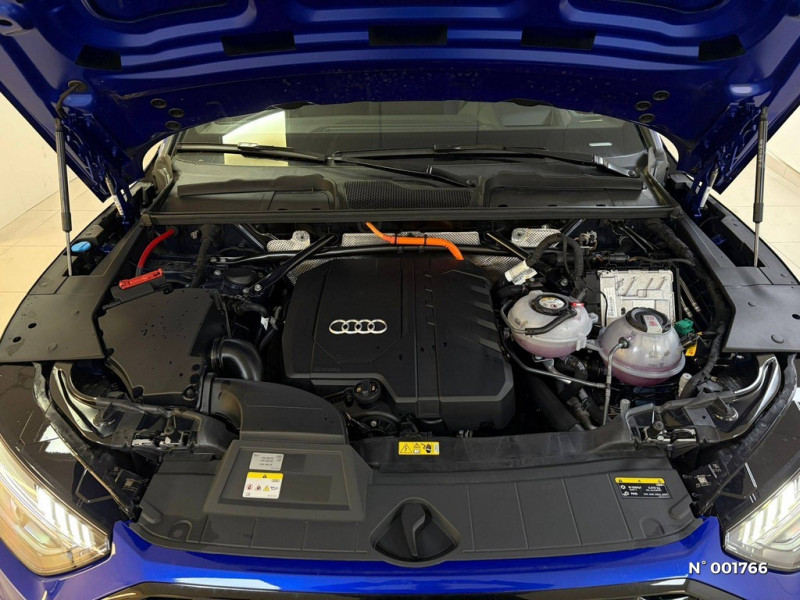 Accoudoir central confort AV avec inclinaison réglable et coulissant en longueur / 2 interfaces de charge USB pour les passagers AR sur la console centrale AR / Antipatinage ASR pour une motricité optimale, empêche le patinage des roues motrices / Airbags latéraux AV avec système d'airbags de tête / Appel d'urgence avec service Audi connect + commande de véhicule / Applications décoratives en Aluminium brossé mat / Audi drive select / Audi connect avec carte SIM intégrée (e-SIM) et licence d'utilisation pour 3 ans / Appui lombaire à 4 axes pour les sièges AV: réglage électrique, horizontal et vertical / Audi Sound System : amplificateurs 6 canaux, 10 HP dont 1 central dans le tableau de bord et 1 subwoofer, puissance totale 180 W / Avertissement de sortie de voie / Audi Virtual Cockpit combiné d'instruments entièrement numérique de 12.3" avec affichage haute résolution / Audi Pre-Sense City / Audi Phone Box light / Audi Parking System Plus / Audi Hold Assist / Audi Smartphone Interface (Apple CarPlay / Google Android Auto) / Câbles de recharge pour téléphone portable, compatibles iPhone et Android / Système de lecture des panneaux de signalisation par caméra / Sellerie mixte Cuir/Tissu Séquence S line / S tronic : boîte séquentielle 7 vitesses à double embrayage avec commande électrohydraulique / Surfaces d'accentuation façon verre en Noir / Pack Rangement et Coffre / Pack Eclairage d'ambiance / Vide-poches dans les contre-portes AV/AR / Système de recharge e-tron compact / Tire Mobility System / Tapis de coffre à bagages / Tapis complémentaires AV/AR / Pack Brillance Extérieur / Vitrage privacy (vitres surteintées) / Volant Sport contour en Cuir style 3 branches aplati en bas avec multifonction plus avec palettes de changement de vitesses / Trousse de secours et triangle de présignalisation / Vitrage acoustique pour les vitres de portières AV / Navigation MMI plus avec MMI touch / Jantes en aluminium coulé en style étoile à 5 bras 8Jx18, pneus 235/60 R18 / Moulures de seuil avec insert en aluminium dans les ouvertures des portières AV / Moulures de seuil avec insert en aluminium AV, éclairées, avec inscription S / Préparation pour crochet d'attelage / Outillage de bord (sans cric) / Régulateur de vitesse incluant limiteur de vitesse / Phares Matrix LED, feux AR à LED / Phares Matrix LED, feux AR à LED / Recommandation de repos / Quattro transmission intégrale permanente / Récupération d'énergie, permet de réaliser des économies de carburant en récupérant l'énergie de décélération et de freinage ; convertit l'énergie cinétique en énergie électrique utilisable en augmentant la tension du générateur durant les phases de décélération ou de freinage et soulage l'alternateur lorsque la voiture accélère de nouveau / Sièges AV réglables manuellement en hauteur et en profondeur ; réglage manuel des appuie-tête en hauteur / Rétroviseurs extérieurs réglables et escamotables électriquement, jour/nuit automatique, dégivrants des 2 côtés et buses de lave-glaces dégivrantes pour le pare-brise / Sécurité enfants manuelle / Rétroviseurs extérieurs avec clignotants à LED intégrés couleur carrosserie / Réservoir à carburant spécifique PHEV (54 litres) / Rétroviseur intérieur jour/nuit automatique sans encadrement (Frameless) / Blocage électronique de différentiel EDS / Câble de charge pour station publique en courant alternatif pour charge en Mode 3 / Type 2 7,4kW AC (en courant monophasé), 32A / Câble de charge pour chargeur ''e-tron compact'', 8A, 1,6 m, type domestique / Ceintures de sécurité automatiques à 3 points pour tous les sièges, contrôle de port de ceinture AV / Châssis de série / Commande de désactivation de l'airbag passager AV / Ciel de pavillon en Tissu Noir / Clé Confort (Keyless entry) + Keyless go / Colonne de direction de sécurité / Détecteur de pluie et de luminosité / Finition extérieure S line / Ecrous de roues antivol / Contrôle électronique de stabilisation ESC / Direction assistée électromécanique / Coffre à ouverture et fermeture électriques / Identification du modèle selon le nouveau marquage de puissance / Fixation pour sièges enfants ISOFIX et Top Tether pour les sièges extérieurs AR / Interface Bluetooth / Lave-phares haute pression