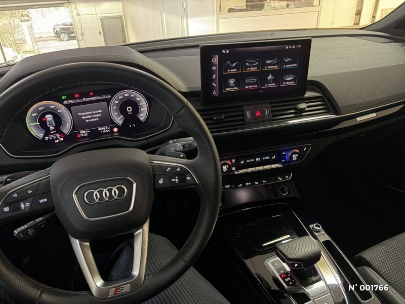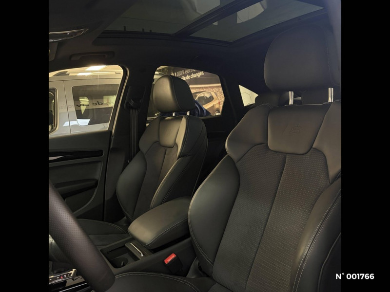 Avertissement de sortie de voie / Audi Smartphone Interface (Apple CarPlay / Google Android Auto) / Ciel de pavillon en Tissu Noir / Clé Confort (Keyless entry) + Keyless go / Ceintures de sécurité automatiques à 3 points pour tous les sièges, contrôle de port de ceinture AV / Châssis de série / Câbles de recharge pour téléphone portable, compatibles iPhone et Android / Coffre à ouverture et fermeture électriques / Blocage électronique de différentiel EDS / Accoudoir central confort AV avec inclinaison réglable et coulissant en longueur / 2 interfaces de charge USB pour les passagers AR sur la console centrale AR / Appel d'urgence avec service Audi connect + commande de véhicule / Antipatinage ASR pour une motricité optimale, empêche le patinage des roues motrices / Airbags latéraux AV avec système d'airbags de tête / Applications décoratives en Aluminium brossé mat / Audi Hold Assist / Audi connect avec carte SIM intégrée (e-SIM) et licence d'utilisation pour 3 ans / Audi drive select / Appui lombaire à 4 axes pour les sièges AV: réglage électrique, horizontal et vertical / Tapis complémentaires AV/AR / Trousse de secours et triangle de présignalisation / S tronic : boîte séquentielle 7 vitesses à double embrayage avec commande électrohydraulique / Système de recharge e-tron compact / Réservoir à carburant spécifique PHEV (54 litres) / Rétroviseurs extérieurs réglables et escamotables électriquement, jour/nuit automatique, dégivrants des 2 côtés et buses de lave-glaces dégivrantes pour le pare-brise / Moulures de seuil avec insert en aluminium dans les ouvertures des portières AV / Jantes en aluminium coulé en style étoile à 5 bras 8Jx18, pneus 235/60 R18 / Moulures de seuil avec insert en aluminium AV, éclairées, avec inscription S / Lave-phares haute pression / Interface Bluetooth / Navigation MMI plus avec MMI touch / Outillage de bord (sans cric) / Pack Brillance Extérieur / Pack Eclairage d'ambiance / Quattro transmission intégrale permanente / Récupération d'énergie, permet de réaliser des économies de carburant en récupérant l'énergie de décélération et de freinage ; convertit l'énergie cinétique en énergie électrique utilisable en augmentant la tension du générateur durant les phases de décélération ou de freinage et soulage l'alternateur lorsque la voiture accélère de nouveau / Recommandation de repos / Vide-poches dans les contre-portes AV/AR / Vitrage acoustique pour les vitres de portières AV / Rétroviseurs extérieurs avec clignotants à LED intégrés couleur carrosserie / Vitrage privacy (vitres surteintées) / Phares Matrix LED, feux AR à LED / Sièges AV réglables manuellement en hauteur et en profondeur ; réglage manuel des appuie-tête en hauteur / Préparation pour crochet d'attelage / Phares Matrix LED, feux AR à LED / Régulateur de vitesse incluant limiteur de vitesse / Pack Rangement et Coffre / Sellerie mixte Cuir/Tissu Séquence S line / Rétroviseur intérieur jour/nuit automatique sans encadrement (Frameless) / Volant Sport contour en Cuir style 3 branches aplati en bas avec multifonction plus avec palettes de changement de vitesses / Système de lecture des panneaux de signalisation par caméra / Sécurité enfants manuelle / Surfaces d'accentuation façon verre en Noir / Tapis de coffre à bagages / Tire Mobility System / Colonne de direction de sécurité / Commande de désactivation de l'airbag passager AV / Contrôle électronique de stabilisation ESC / Direction assistée électromécanique / Détecteur de pluie et de luminosité / Ecrous de roues antivol / Finition extérieure S line / Fixation pour sièges enfants ISOFIX et Top Tether pour les sièges extérieurs AR / Identification du modèle selon le nouveau marquage de puissance / Audi Parking System Plus / Audi Phone Box light / Audi Sound System : amplificateurs 6 canaux, 10 HP dont 1 central dans le tableau de bord et 1 subwoofer, puissance totale 180 W / Audi Pre-Sense City / Audi Virtual Cockpit combiné d'instruments entièrement numérique de 12.3" avec affichage haute résolution / Câble de charge pour chargeur ''e-tron compact'', 8A, 1,6 m, type domestique / Câble de charge pour station publique en courant alternatif pour charge en Mode 3 / Type 2 7,4kW AC (en courant monophasé), 32A