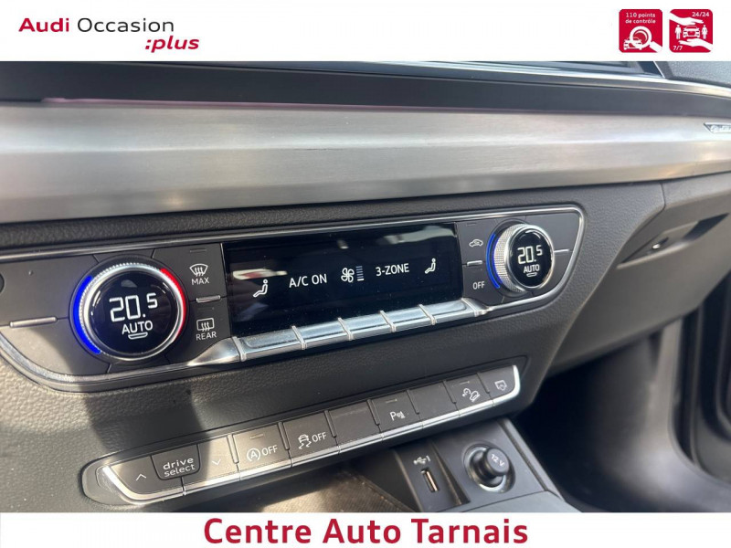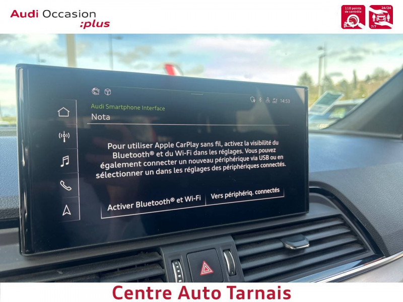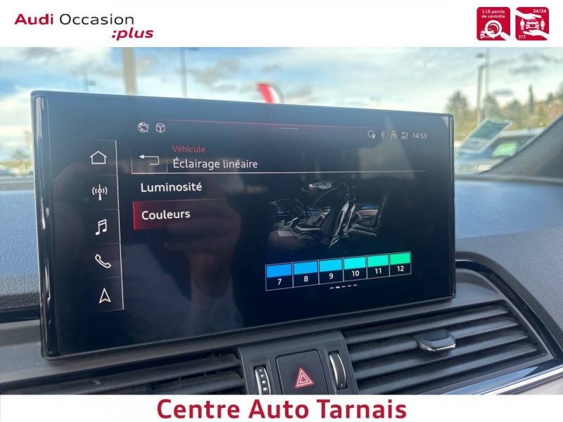 Applications décoratives en Aluminium brossé mat / Audi Parking System Plus: Système accoustique et visuel d'aide au stationnement AV et AR / Audi Virtual Cockpit Plus / Barres de toit transversales en aluminium anodisé / Ceintures de sécurité automatiques à 3 points pour tous les sièges, contrôle de port de ceinture AV / Jantes en aluminium coulé en style étoile à 5 bras 8Jx18, pneus 235/60 R18 / Moulures de seuil de portes éclairées avec insert en aluminium AV/AR et inscription "S" / Navigation MMI plus avec MMI touch / Pack Eclairage / Pack Extérieur Brillance / Pack Rangement et Coffre - Filet de rangement au dos des sièges AV - Porte-gobelets dans l'accoudoir central à l AR - Vide-poches côté conducteur - Boîte à gants verrouillable / Phares Matrix LED, feux AR à LED / Préparation pour crochet d'attelage / Rétroviseur intérieur jour/nuit automatique sans encadrement (Frameless) / Rétroviseurs extérieurs avec clignotants à LED intégrés couleur carrosserie / Rétroviseurs extérieurs réglables et escamotables électriquement, jour/nuit automatique, dégivrants des deux côtés et buses de lave-glaces dégivrantes / Volant Sport contour en Cuir style 3 branches aplati en bas avec multifonction plus avec palettes de changement de vitesses / 2 interfaces de charge USB pour les passagers AR sur la console centrale AR / 8 HP / Affichage de perte de pression des pneus / Airbags latéraux AV avec système d'airbags de tête / Antipatinage ASR pour une motricité optimale, empêche le patinage des roues motrices / Appel d'urgence avec service Audi connect + commande de véhicule / Appui lombaire à 4 axes pour les sièges AV, réglages électriques, horizontal et vertical / Audi connect avec carte SIM intégrée (e-SIM) et licence d'utilisation pour 3 ans / Audi drive select / Audi hold assist: maintien le véhicule à l'arrêt en côte comme en descente / Audi Phone Box light / Audi Pre-Sense City / Audi smartphone interface / Audi Sound System avec 10 HP / Augmentation de la capacité du réservoir à carburant à 70 litres / Blocage électronique de différentiel EDS / Ciel de pavillon en Tissu Noir / Clé Confort (Keyless entry) + Keyless go / Colonne de direction de sécurité / Commande de désactivation de l'airbag passager AV / Contrôle électronique de stabilisation ESC / Câbles de recharge pour téléphone portable, compatibles iPhone et Android / Direction assistée électromécanique / Dispositif anti-erreur de carburant / Détecteur de pluie et de luminosité / Eclairage intérieur AV et AR / Ecrous de roues antivol / Emblème S et surpiqûres contrastées spécifiques S sur le volant / Finition extérieure S line / Fixation pour sièges enfants ISOFIX et Top Tether pour les sièges extérieurs AR / Hayon de coffre assistéélectriquement pour l'ouverture et la fermeture / Identification / Interface Bluetooth / Lave-phares haute pression / Outillage de bord (sans cric) / Quattro transmission intégrale permanente / Recommandation de repos / Repose-pied et pédalier en acier inoxydable / Récupération d'énergie au freinage / Régulateur de vitesse incluant limiteur de vitesse / Réservoir d'AdBlue à 24 litres / S tronic : boîte séquentielle 7 vitesses à double embrayage avec commande électrohydraulique / Sièges AV réglables manuellement en hauteur et en profondeur ; réglage manuel des appuie-tête en hauteur / Surfaces d'accentuation façon verre en Noir / Sécurité enfants manuelle / Tapis AV et AR / Tapis de coffre à bagages / Technologie Mild Hybrid / Tire Mobility System / Trousse de secours et triangle de présignalisation / Vide-poches dans les contre-portes AV/AR / Vitrage acoustique pour les vitres de portières AV / Vitrage privacy (vitres surteintées)