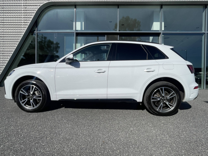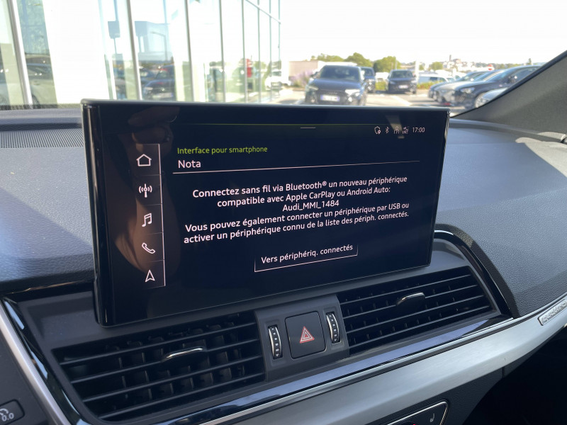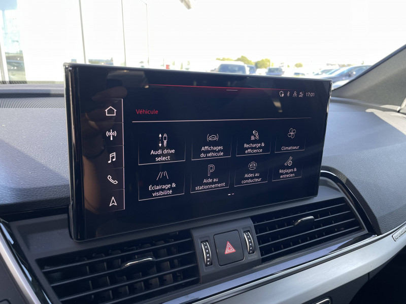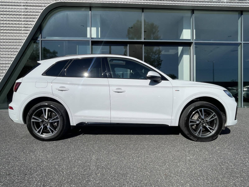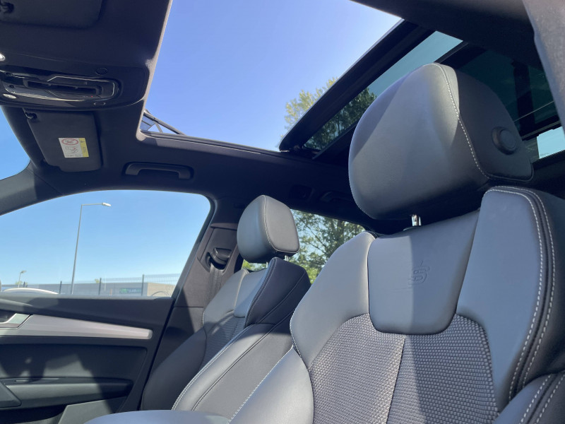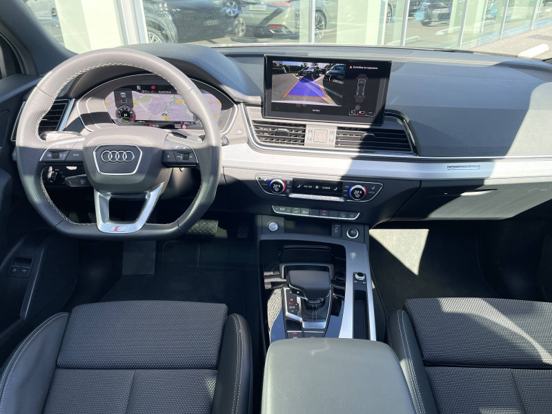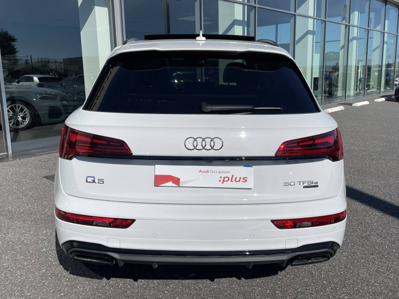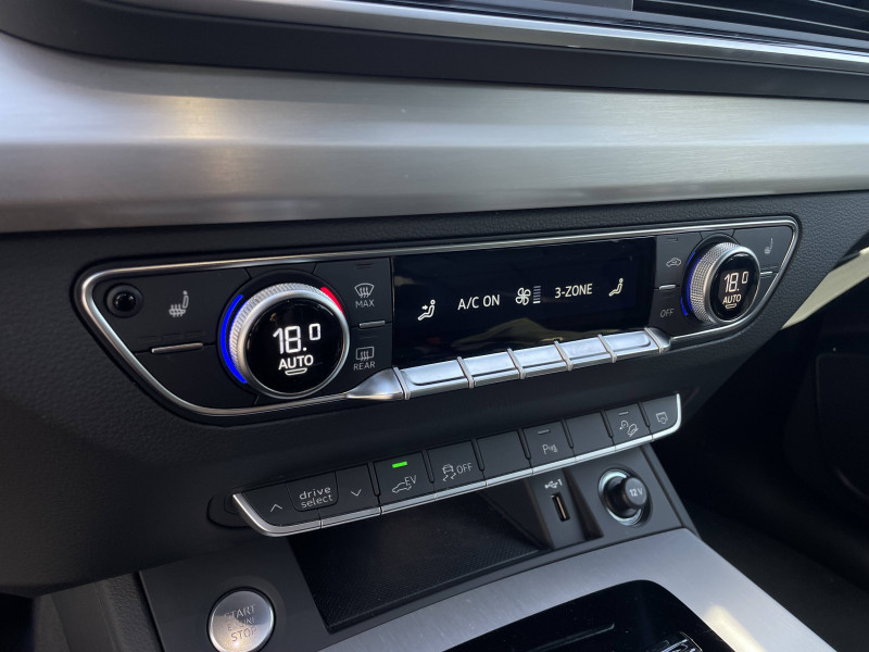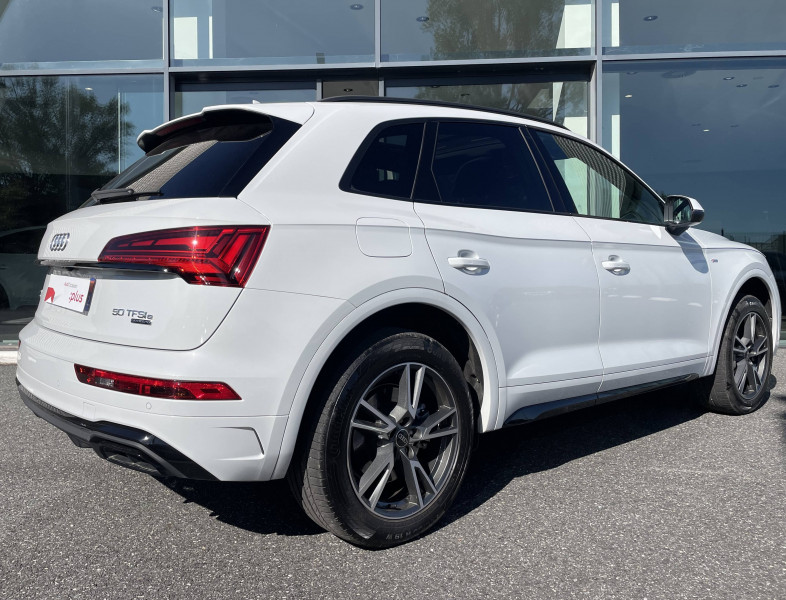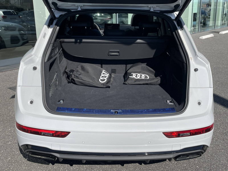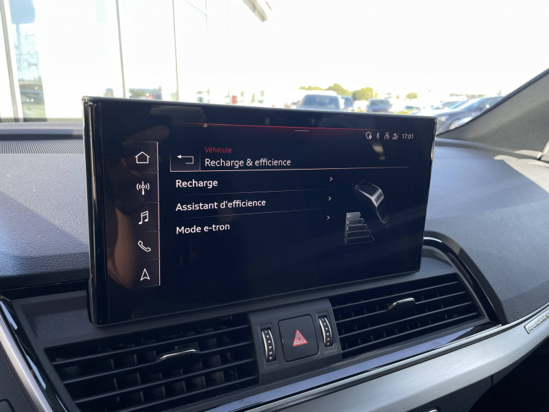 Applications décoratives en Aluminium brossé mat / Audi Virtual Cockpit / Ceintures de sécurité automatiques à 3 points pour tous les sièges, contrôle de port de ceinture AV / Jantes en aluminium coulé en style étoile à 5 bras 8Jx18, pneus 235/60 R18 / Moulures de seuil avec insert en aluminium AV, éclairées, avec inscription S / Moulures de seuil avec insert en aluminium dans les ouvertures des portières AV / Navigation MMI plus avec MMI touch / Pack Brillance Extérieur Baguette le long du pavillon et sur les appuis de vitre en aluminium anodisé, revêtement noir brillant sur les montants de pavillon centraux et les triangles de portières AR / Pack Eclairage d'ambiance / Pack Rangement et Coffre - Filet de rangement au dos des sièges AV - Porte-gobelets dans l'accoudoir central à l AR - Vide-poches côté conducteur - Boîte à gants verrouillable / Phares Matrix LED, feux AR à LED / Préparation pour crochet d'attelage / Rampes de pavillon en aluminium anodisé / Rétroviseur intérieur jour/nuit automatique sans encadrement (Frameless) / Rétroviseurs extérieurs avec clignotants à LED intégrés couleur carrosserie / Rétroviseurs extérieurs réglables et escamotables électriquement, jour/nuit automatique, dégivrants des 2 côtés / Volant Sport contour en Cuir style 3 branches aplati en bas avec multifonction plus avec palettes de changement de vitesses / Airbags latéraux AV avec système d'airbags de tête / Antipatinage ASR pour une motricité optimale, empêche le patinage des roues motrices / Appel d'urgence avec service Audi connect + commande de véhicule / Appui lombaire à 4 axes pour les sièges AV, réglages électriques, horizontal et vertical / Audi connect avec carte SIM intégrée (e-SIM) et licence d'utilisation pour 3 ans / Audi drive select / Audi Hold Assist / Audi Parking System Plus / Audi Phone Box light / Audi Pre-Sense City / Audi smartphone interface / Audi Sound System avec 10 HP / Avertissement de sortie de voie / Banquette 3 places avec appuie-tête en L réglables en hauteur Dossier de banquette AR rabattable en trois parties 40 : 20 : 40 ou complètement / Blocage électronique de différentiel EDS / Châssis de série / Ciel de pavillon en Tissu Noir / Coffre à ouverture et fermeture électriques / Colonne de direction de sécurité / Commande de désactivation de l'airbag passager AV / Contrôle électronique de stabilisation ESC / Câble de charge pour chargeur ''e-tron compact'', 8 A, type domestique / Câble de charge pour station publique en courant alternatif pour charge en Mode 3 / Type 2 / Câbles de recharge pour téléphone portable, compatibles iPhone et Android / Diffuseur AR en Noir à grain mat / Direction assistée électromécanique / Détecteur de pluie et de luminosité / Ecrous de roues antivol / Finition extérieure S line / Fixation pour sièges enfants ISOFIX et Top Tether pour les sièges extérieurs AR / Identification du modèle selon le nouveau marquage de puissance / Interface Bluetooth / Interfaces de charge USB pour les passagers AR / Keyless entry & go : Clé Confort (keyless entry) + Touche Start/Stop pour arrêt et démarrage du moteur (keyless go) / Lave-phares haute pression / Outillage de bord (sans cric) / Passage de roue contrasté en plastique Noir grainé / Quattro transmission intégrale permanente / Recommandation de repos / Récupération d'énergie au freinage / Régulateur de vitesse incluant limiteur de vitesse / Réservoir à carburant spécifique PHEV (54 litres) / S tronic : boîte séquentielle 7 vitesses à double embrayage avec commande électrohydraulique / Sièges AV réglables manuellement en hauteur et en profondeur ; réglage manuel des appuie-tête en hauteur / Surfaces d'accentuation façon verre en Noir / Système d'information du conducteur avec écran couleur haute résolution de 7" / Système de lecture des panneaux de signalisation par caméra / Système de recharge e-tron compact / Sécurité enfants manuelle / Tapis complémentaires AV/AR / Tapis de coffre à bagages / Tire Mobility System / Triangle de présignalisation / Vide-poches dans les contre-portes AV/AR / Vitrage acoustique pour les vitres de portières AV / Vitrage privacy (vitres surteintées)