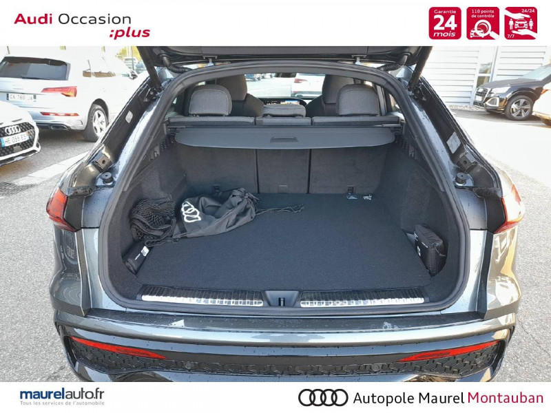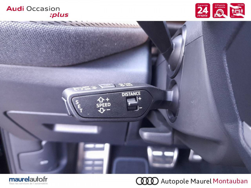 2 ports USB-C à l'AV et l'AR / Accoudoir central confort à l'AV Avec réglage de la hauteur / Airbags à l'AV, airbag du passager AV désactivable / Airbags latéraux à l'AV avec système d'airbags rideaux et airbag central à l'AV / Alerte de sortie de voie / Assistance au freinage d'urgence à l'AV Scanne la zone située devant le véhicule et peut, en fonction de la situation et de la vitesse, avertir de l'imminence d'une collision et déclencher les mesures de freinage appropriées. Les piétons et les cyclistes peuvent être détectés jusqu'à une vitesse d'environ 85 km/h et les véhicules jusqu'à la vitesse maximale. Si une collision frontale imminente est détectée, le système émet un avertissement visuel, acoustique et haptique. Afin de réduire la vitesse ou d'éviter une collision. / Assistant d'évitement et assistant de braquage / Assistant d'intersection AV Surveille la zone située devant et sur le côté du véhicule aux intersections et aux sorties de route à l'aide des capteurs radar intégrés à l'AV du véhicule. Dans les limites du système, il détecte les objets en mouvement tels que les voitures qui s'approchent. Le système fonctionne dans une plage de vitesse allant jusqu'à 65 km/h. Dans les situations jugées critiques, le système émet des messages d'avertissement en plusieurs étapes. Tout d'abord, un avertissement visuel et sonore est émis. / Audi connect appel d'urgence & service avec Audi connect remote & control / Audi connect Navigation & Infotainment / Audi Drive Select Permet de sélectionner différents modes de conduite: Efficiency, Confort, Dynamic, Lift, Individual. Les systèmes et équipements du véhicules s'adaptent suivant le mode sélectionné / Audi phone box En plus des fonctionalité de l'Audi phone box light, permet un signal amplifié pour une meilleure connectivité. / Audi Virtual cockpit plus Combiné d'instruments entièrement numérique de 11,9" avec technologie OLED / Avertissement de contrôle de la banquette AR / Boîte automatique S Tronic 7 vitesses / Boîtiers de rétroviseurs dans la teinte du véhicule / Câble de recharge Mode 3, type 2, pour borne de recharge (triphasé, 32A) / Cléà radio commande sans SAFELOCK / Climatisation stationnaire Les fonctions de climatisation peuvent être programmées ou activées facilement via le MMI touch dans le véhicule ou peuvent être activées à l'aide de l'application myAudi. La climatisation stationnaire fonctionne indépendamment du fait que la voiture soit en charge ou non, à condition que la batterie haute tension ait un état de charge suffisamment élevé. / Contrôle de la traction (TCS) / Détecteur de pluie et de luminosité / Ecrous de roues antivol / Eléments de la console centrale Noir Brillant / ESC: Contrôle électronique de stabilisation / Fixation de siège pour enfant i-Size côté passager AV et i-Size et Top Tether pour les sièges AR extérieurs / Garniture du tableau de bord, des contre-portes et des accoudoirs de portes en tissu Kaskade / Hayon de coffre à ouverture et fermeture électrique / Jantes 19'' style à 5 branches double Pneus 235/55 R19 / Kit anti-crevaison / Limiteur de vitesse basé sur la détection de signalisation routière / MMI Navigation plus avec MMI touch Le système de navigation MMI plus avec MMI touch offre : - l'écran panoramique MMI avec technologie OLED, comprenant l'Audi virtual cockpit plus avec écran de 11,9 pouces ainsi que l'écran MMI touch de14,5" - système de navigation avec affichage des cartes et guidage routier sur l'écran couleur haute résolution de 14,5" - mise à jour des cartes en ligne - Affichage de cartes en 3D montrant de nombreux sites d'intérêt - informations routières en ligne - MMI search - MMI touch / Pack design Advanced avec peinture contrastée des éléments de bas de caisse Gris Tambora / Pack extérieur S line / Pack intérieur S line tissu avec Sièges Sport - Appuis lombaires, - Sièges AV chauffants, - Sièges AV à réglages électriques, - Éclairage d'ambiance Plus, - Inserts décoratifs en aluminium mat brossé avec gaufrage linéaire, - Sellerie tissu, - Applications intérieures style aluminium. / Pack Rangement Filet de rangement au dos des dossiers des sièges, vide-poches côté conducteur, boîte à gants verrouillable, filet de coffre à bagages, Banquette AR plus avec réglage vers l'AV et l'AR, réglage de l'angle du dossier, accoudoir centrale avec porte-gobelets, sièges repliables mode 40:20:40 ou entièrement repliés / Pack style brillant / Pack Tech -Clim. auto. 3 zones, -Rétroviseur int. à réglage jour/nuit auto., -Rétroviseurs ext. réglables, dégivrants et rabattables électriquement., -Projection de logo sur le sol depuis les rétroviseurs ext, -Lave-projecteurs, -Audi Application Store et smartphone interface, -Audi sound syst., -Projecteurs à LED plus, -Assistant feux de route, -Bloc de feux AR à LED pro, -Syst. d'aide au stationnement plus, -Park assist plus, -Caméra de recul, -Régulateur de vitesse adapt. / Pavillon en tissu noir / Pédalier et repose-pieds en acier inoxydable / Peinture contrastée avec éléments de bas de caisse peints en Gris Tambora / Projection du feu stop sous le spoiler / Réglage du volant manuel / Seuils de porte avec inserts en aluminium à l'AV, éclairés, avec monogramme S / Sonorité extérieure Système acoustique permettant de produire un avertissement sonore à l'extérieur du véhicule à faible vitesse dans le but d'accroître la sécurité routière / Suspension Sport Meilleure dynamique de conduite, une tenue de route agile et une allure sportive (Châssis abaissé de 20mm) / Tapis de sol AV/AR / Vitrage latérales et AR athermique / Volant multifonction S en cuir à trois branches avec palettes
