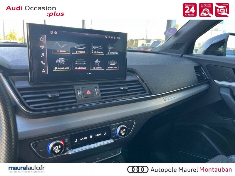 2 interfaces de charge USB pour les passagers AR sur la console centrale AR / Affichage de perte de pression des pneus / Airbags latéraux AV avec système d'airbags de tête / Antipatinage ASR pour une motricité optimale, empêche le patinage des roues motrices / Appel d'urgence avec service Audi connect + commande de véhicule / Applications décoratives en Aluminium brossé mat / Appui lombaire à 4 axes pour les sièges AV, réglages électriques, horizontal et vertical / Audi connect avec carte SIM intégrée (e-SIM) et licence d'utilisation pour 3 ans / Audi drive select / Audi hold assist: maintien le véhicule à l'arrêt en côte comme en descente / Audi Parking System Plus: Système accoustique et visuel d'aide au stationnement AV et AR / Audi Phone Box light / Audi Pre-Sense City / Audi smartphone interface / Audi Sound System avec 10 HP / Audi Virtual Cockpit / Augmentation de la capacité du réservoir à carburant à 70 litres / Barres de toit transversales en aluminium anodisé / Blocage électronique de différentiel EDS / Câble de charge pour chageur ''e-tron compact'' 32A monophasé (bleu) renforcé et non coudé (version droite) / Câble de charge pour chargeur ''e-tron compact'', 8 A, type domestique / Câble de charge pour station publique en courant alternatif pour charge en Mode 3 / Type 2. 7,2kW AC / Câbles de recharge pour téléphone portable, compatibles iPhone et Android / Ceintures de sécurité automatiques à 3 points pour tous les sièges, contrôle de port de ceinture AV / Ciel de pavillon en Tissu Noir / Clé Confort (Keyless entry) + Keyless go / Colonne de direction de sécurité / Commande de désactivation de l'airbag passager AV / Contrôle électronique de stabilisation ESC / Détecteur de pluie et de luminosité / Direction assistée électromécanique / Ecrous de roues antivol / Emblème S et surpiqûres contrastées spécifiques S sur le volant / Finition extérieure S line / Fixation pour sièges enfants ISOFIX et Top Tether pour les sièges extérieurs AR / Hayon de coffre assistéélectriquement pour l'ouverture et la fermeture / Identification / Interface Bluetooth / Jantes en aluminium coulé en style étoile à 5 bras 8Jx18, pneus 235/60 R18 / Lave-phares haute pression / Moulures de seuil de portes éclairées avec insert en aluminium AV/AR et inscription "S" / Navigation MMI plus avec MMI touch / Outillage de bord (sans cric) / Pack Eclairage / Pack Extérieur Brillance / Pack Rangement et Coffre - Filet de rangement au dos des sièges AV - Porte-gobelets dans l'accoudoir central à l AR - Vide-poches côté conducteur - Boîte à gants verrouillable / Phares Matrix LED, feux AR à LED / Préparation pour crochet d'attelage / Quattro transmission intégrale permanente / Recommandation de repos / Récupération d'énergie au freinage / Régulateur de vitesse incluant limiteur de vitesse / Réservoir à carburant spécifique à la motorisation TFSI e (54 litres) / Rétroviseur intérieur jour/nuit automatique sans encadrement (Frameless) / Rétroviseurs extérieurs avec clignotants à LED intégrés couleur carrosserie / Rétroviseurs extérieurs réglables et escamotables électriquement, jour/nuit automatique, dégivrants des deux côtés et buses de lave-glaces dégivrantes / Sécurité enfants manuelle / Sellerie mixte Cuir/Tissu Séquence S line / Sièges AV réglables manuellement en hauteur et en profondeur ; réglage manuel des appuie-tête en hauteur / S tronic : boîte séquentielle 7 vitesses à double embrayage avec commande électrohydraulique / Surfaces d'accentuation façon verre en Noir / Système de recharge e-tron compact / Tapis AV et AR / Tapis de coffre à bagages / Technologie Mild Hybrid / Tire Mobility System / Trousse de secours et triangle de présignalisation / Vide-poches dans les contre-portes AV/AR / Vitrage acoustique pour les vitres de portières AV / Vitrage privacy (vitres surteintées) / Volant Sport contour en Cuir style 3 branches aplati en bas avec multifonction plus avec palettes de changement de vitesses