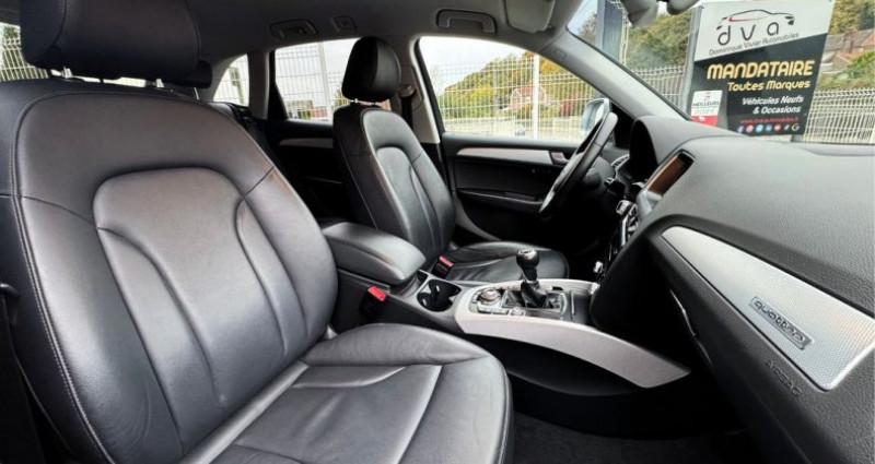 Dominique Vivier Automobiles vous propose à la vente cette magnifique Audi Q5 en finition Ambition Luxe : ?? 2.0 TDI 190 ch ; ?? Boîte manuelle BVM6 ; ??Système Quattro ; ? Mise en circulation le 01/10/2015 ; ?? Avec 164 500 km ; ? Suivi complet d’entretien ; ? Véhicule de démonstration Audi puis 1 unique propriétaire ; Garantie pendant 12 mois et configurée comme suit : Audio - Télécommunications : 10 Haut parleurs Audi Sound System GPS Chargeur 6CD Bluetooth Conduite : Système d'assistance à la descente Régulateur de vitesse Extérieur : Système d’attelage Audi Barres de toit Feux de jour à LED Phare xénon Jantes Alu Radar de stationnement AV / AR Intérieur : Sellerie cuir noir Sièges conducteur à mémoire Sièges AV électriques avec réglages lombaires Accoudoir arrière Banquette arrière 3 places Ordinateur de bord Clim automatique tri-zones Sécurité : Phares antibrouillard Aide au freinage d'urgence Véhicule en parfait état, révisé et garanti 12 mois Véhicule en stock, disponible immédiatement Financement et reprise possible Dominique Vivier Automobiles Mandataire Vente Achat Reprise Crédit Dépôt Vente DVA 127 Rue René Wallard 62700 Bruay-la-Buissière -> À 45 minutes de l’aéroport de Lille-Lesquin -> À 35 minutes de la gare d’Arras -> À 15 minutes de la gare de Béthune Transport assuré par nos soins