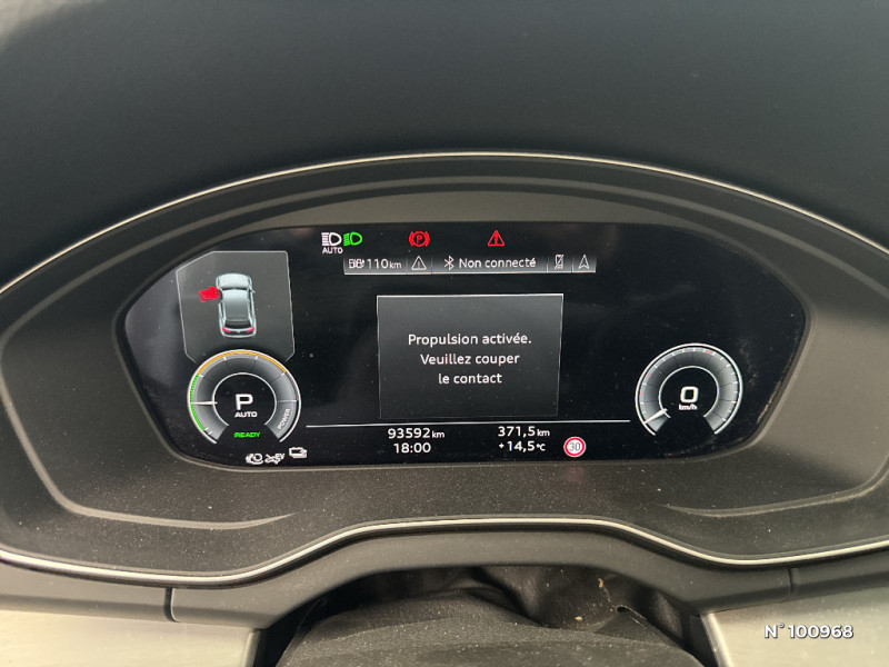 Câbles de recharge pour téléphone portable, compatibles iPhone et Android / Audi Smartphone Interface / Trousse de secours, triangle de présignalisation / Technologie Mild Hybrid / Audi Drive Select / Pack Extérieur Brillance / Appel d'urgence avec service Audi connect + commande de véhicule / Audi Virtual Cockpit / Navigation MMI plus avec MMI touch / Interface Bluetooth / Régulateur de vitesse, incluant limiteur de vitesse / Airbags latéraux AV avec système d'airbags de tête / Fixation pour sièges enfants ISOFIX et Top Tether pour les sièges extérieurs AR / Affichage de perte de pression des pneus / Rétroviseur intérieur jour/nuit automatique sans encadrement (Frameless) / Ecrous de roues antivol / Antipatinage ASR pour une motricité optimale, empêche le patinage des roues motrices / Direction assistée électromécanique / Barres de toit transversales en aluminium anodisé / Clé Confort (Keyless entry) + Keyless go / Sièges AV réglables manuellement en hauteur et en profondeur ; réglage manuel des appuie-tête en hauteur / Tapis AV et AR / Tapis de coffre à bagages / Préparation pour crochet d'attelage / Identification / Outillage de bord (sans cric) / Audi Pre-Sense City / Baguette enjoliveuse en argent aluminium mat / Protection de pare-chocs en acier inoxydable / Spoiler de toit AR S line / Ciel de pavillon en tissu noir / Lave-phares haute pression / Blocage électronique de différentiel EDS / Pack Eclairage / Détecteur de pluie et de luminosité / Applications décoratives en Aluminium brossé mat / Récupération d'énergie au freinage / Audi Hold Assist: maintien le véhicule à l'arrêt en côte comme en descente / Tire Mobility System / Hayon ou coffre assistéélectriquement pour l'ouverture et la fermeture / Volant Sport contour en Cuir style 3 branches aplati en bas avec multifonction plus avec palettes de changement de vitesses / Système d'information du conducteur avec écran TFT monochrome de 5" / Câble de charge pour station publique en courant alternatif pour charge en Mode 3 / Type 2 / Grilles d'entrée d'air latérales en noir mat grainé avec insert en argent aluminium mat / Pare-chocs spécifiques S AV/AR / Extensions de bas de caisse et passages de roues en peinture intégrale couleur carrosserie / Calandre spécifique S line laquée en noir mat et entourage en aluminium argent mat / Diffuseur spécifique S line en noir mat avec canules d'échappement de style chromées / Rétroviseurs extérieurs réglables et escamotables électriquement, jour/nuit automatique, dégivrants des deux côtés et buses de lave-glaces dégivrantes / Vitrage privacy (vitres surteintées) / Système de recharge e-tron compact / Réservoir à carburant spécifique à la motorisation TFSI e (54 litres) / Audi connect avec carte SIM intégrée (e-SIM) et licence d'utilisation pour 3 ans / Moulures de seuil de portes éclairées avec insert en aluminium AV/AR et inscription "S" / Commande de désactivation de l'airbag passager AV / Câble de charge pour chageur ''e-tron compact'' 32A monophasé (bleu) renforcé et non coudé (version droite) / Câble de charge pour station publique en courant alternatif pour charge en Mode 3 / Type 2. 7,2kW AC / Identification du modèle selon le nouveau marquage de puissance / Tapis complémentaires AV et AR / Phares Matrix LED, feux AR à LED / Surfaces d'accentuation faà§on verre en Noir / Emblème S et surpiqures contrastées spécifiques S sur le volant / Jantes en aluminium coulé en style étoile à 5 bras 8Jx18, pneus 235/60 R18 / 2 interfaces de charge USB pour les passagers AR sur la console centrale AR / Audi Phone Box light / Sellerie mixte Cuir/Tissu Séquence S line / Augmentation de la capacité du réservoir à carburant à 70 litres / Ceintures de sécurité, automatiques à 3 points pour tous les sièges, contrôle de port de ceinture AV / Rétroviseurs extérieurs avec clignotants à LED intégrés couleur carrosserie / Quattro transmission intégrale permanente / Vide-poches dans les contre-portes AV/AR / Colonne de direction de sécurité / Sécurité enfants manuelle / Finition extérieure S line / Câble de charge pour chargeur ''e-tron compact'', 8 A, type domestique / S tronic : boîte séquentielle 7 vitesses à double embrayage avec commande électrohydraulique / Pack Rangement et Coffre / Audi Parking System Plus: Système accoustique et visuel d'aide au stationnement AV et AR / Audi Sound System avec 10HP / Contrôle électronique de stabilisation ESC / Vitrage acoustique pour les vitres de portières AV / Appui lombaire à 4 axes pour les sièges AV réglage électrique, horizontal et vertical / Recommandation de repos