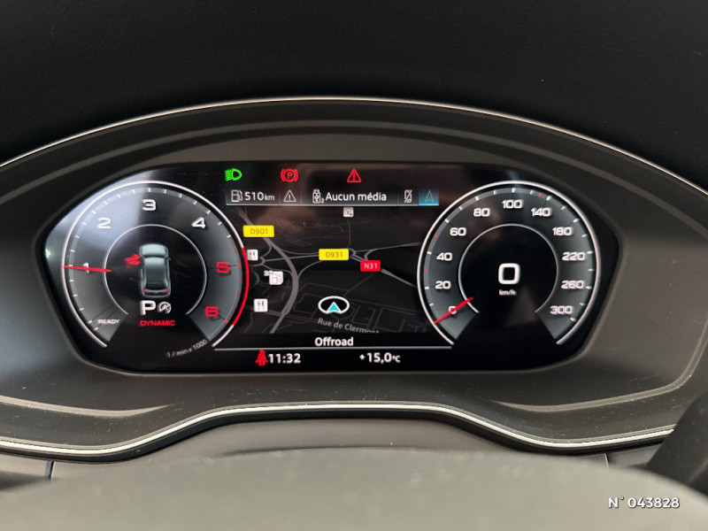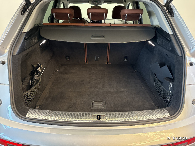 Audi Parking System Plus / Audi Parking System Plus: Système accoustique et visuel d'aide au stationnement AV et AR / Audi Phone Box avec charge du téléphone par induction (standard Qi) / Audi pre sense rear / Audi Pre-Sense City / Audi smartphone interface / Audi Sound System avec 10 HP / Audi Virtual Cockpit Plus / Augmentation de la capacité du réservoir à carburant à 70 litres / Avertissement de sortie de voie / Banquette 3 places avec appuie-tête en L réglables en hauteur Dossier de banquette AR rabattable en trois parties 40 : 20 : 40 ou complètement / Barres de toit transversales en aluminium anodisé / Blocage électronique de différentiel EDS / Câbles de recharge pour téléphone portable, compatibles iPhone et Android / Calandre en noir titane laqué avec lamelles verticales en aluminium argent mat et entourage en chrome / Ceintures de sécurité automatiques à 3 points pour tous les sièges, contrôle de port de ceinture AV / Châssis de série / Ciel de pavillon en Tissu / Rétroviseur intérieur jour/nuit automatique sans encadrement (Frameless) / Rétroviseurs extérieurs avec clignotants à LED intégrés couleur carrosserie / Rétroviseurs extérieurs réglables et escamotables électriquement, jour/nuit automatique, dégivrants des 2 côtés, avec fonction mémoire et buses de lave-glaces dégivrantes pour le pare-brise / S tronic : boîte séquentielle 7 vitesses à double embrayage avec commande électrohydraulique / Sécurité enfants manuelle / Affichage de perte de pression des pneus / Airbags latéraux AV avec système d'airbags de tête / Coffre à ouverture et fermeture électriques / Colonne de direction de sécurité / Sièges AV réglables électriquement avec fonction mémoire pour le siège conducteur + rétroviseurs extérieurs réglables et escamotables électriquement, jour/nuit automatique, dégivrants des 2 côtés et buses de lave-glaces dégivrantes ; 2 combinaisons de réglage mémorisables / Sièges AV réglables électriquement avec fonction mémoire pour les sièges conducteur / Sièges normaux / Sièges Standards / Surfaces d'accentuation faà§on verre en Noir / Système de lecture des panneaux de signalisation par caméra / Système d'information du conducteur avec écran couleur haute résolution de 7" / Système d'information du conducteur avec écran TFT monochrome de 5" / Tapis AV et AR / Tapis complémentaires AV/AR / Tapis de coffre à bagages / Technologie Mild Hybrid / Tire Mobility System / Triangle de présignalisation / Trousse de secours et triangle de présignalisation / Projecteurs HD Matrix LED avec feux AR à technologie OLED / Projecteurs Matrix LED avec feux AR à technologie OLED / Quattro transmission intégrale permanente / Rampes de pavillon en aluminium anodisé / Recommandation de repos / Récupération d'énergie au freinage / Régulateur de vitesse incluant limiteur de vitesse / Réservoir d'AdBlue à 24 litres / Hayon de coffre assistéélectriquement pour l'ouverture et la fermeture / Identification / Identification du modèle selon le nouveau marquage de puissance / Interface Bluetooth / Interfaces de charge USB pour les passagers AR / Jantes en aluminium coulé en style 5 branches en V, Gris Graphite, tournées brillantes, 8Jx19", pneus 235/55 R19 / Jantes en aluminium coulé en style 5 branches en V, Gris Graphite, tournées brillantes, 8Jx19", pneus 235/55 R19 / Keyless entry & go : Clé Confort (keyless entry) + Touche Start/Stop pour arrêt et démarrage du moteur (keyless go) / Lave-phares haute pression / Motorisations avec technologie hybride léger (Mild Hybrid) / Moulures de seuil avec insert en aluminium dans les ouvertures des portières AV / Moulures de seuils avec insert en Argent Sélénite AV / Navigation MMI plus avec MMI touch / Outillage de bord (sans cric) / Pack Assistance City / Pack Assistance Ville / Pack Audi side assist / Pack Brillance Extérieur Baguette le long du pavillon et sur les appuis de vitre en aluminium anodisé, revêtement noir brillant sur les montants de pavillon centraux et les triangles de portières AR / Pack Eclairage d'ambiance / Ciel de pavillon en tissu selon la couleur intérieure choisie / Clé Confort (Keyless entry) + Keyless go / Pack Eclairage d'ambiance plus (à?clairage des seuils de portières AR, à?clairage d'ambiance du tissu des portières AV/AR, à?clairage périphérique dans les poignées de portières extérieures AV/AR, à?clairage d'ambiance du tableau de bord, 6 profils de couleur prédéfinis, 1 profil de couleur supplémentaire interactif et personnalisable parmi une gamme de 30 couleurs, Réglage séparé des teintes lumineuses de contours et d'ambiance, à?clairage des zones suivantes : vide-poches de portières AV/AR, contour des portières AV/AR, tissu des portières AV/AR, console centrale à l'AV) / Pack Extérieur Brillance / Pack Rangement et Coffre - Filet de rangement au dos des sièges AV - Porte-gobelets dans l'accoudoir central à l AR - Vide-poches côté conducteur - Boîte à gants verrouillable / Passage de roue contrasté en plastique Noir grainé / Préparation pour crochet d'attelage / Vide-poches dans les contre-portes AV/AR / Vitrage acoustique pour les vitres de portières AV / Vitrage privacy (vitres surteintées) / Volant en cuir style 3 branches avec multifonction plus avec palettes de changement de vitesses / Volant 3 branches multifonction plus en Cuir avec palettes de changement de vitesse / 2 interfaces de charge USB pour les passagers AR sur la console centrale AR / 8 HP / Contrôle électronique de stabilisation ESC / Détecteur de pluie et de luminosité / Diffuseur AR en Noir à grain mat / Diffuseur AR en Noir Titane mat / Direction assistée électromécanique / Dispositif anti-erreur de carburant / Eclairage intérieur AV et AR / Ecrous de roues antivol / Eléments de l'habitacle en matériaux synthétiques / Eléments de l'habitacle en Similicuir / Extensions de bas de caisse et passages de roue 