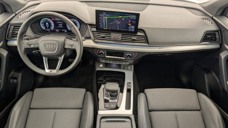 Tire Mobility System / Audi Sound System : amplificateurs 6 canaux, 10 HP dont 1 central dans le tableau de bord et 1 subwoofer, puissance totale 180 W / S tronic : boîte séquentielle 7 vitesses à double embrayage avec commande électrohydraulique / Audi Virtual Cockpit combiné d'instruments entièrement numérique de 12.3" avec affichage haute résolution / Système de lecture des panneaux de signalisation par caméra / Pack Rangement et Coffre / Contrôle électronique de stabilisation ESC / Audi Hold Assist / Recommandation de repos / Audi drive select / Appel d'urgence avec service Audi connect + commande de véhicule / Navigation MMI plus avec MMI touch / Interface Bluetooth / Régulateur de vitesse incluant limiteur de vitesse / Airbags latéraux AV avec système d'airbags de tête / Fixation pour sièges enfants ISOFIX et Top Tether pour les sièges extérieurs AR / Audi Parking System Plus / Rétroviseur intérieur jour/nuit automatique sans encadrement (Frameless) / Châssis de série / Antipatinage ASR pour une motricité optimale, empêche le patinage des roues motrices / Récupération d'énergie, permet de réaliser des économies de carburant en récupérant l'énergie de décélération et de freinage ; convertit l?énergie cinétique en énergie électrique utilisable en augmentant la tension du générateur durant les phases de décél / Direction assistée électromécanique / Clé Confort (Keyless entry) + Keyless go / Sièges AV réglables manuellement en hauteur et en profondeur ; réglage manuel des appuie-tête en hauteur / Tapis de coffre à bagages / Outillage de bord (sans cric) / Audi Pre-Sense City / Vitrage privacy (vitres surteintées) / Appui lombaire à 4 axes pour les sièges AV: réglage électrique, horizontal et vertical / Commande de désactivation de l'airbag passager AV / Phares Matrix LED, feux AR à LED / Surfaces d'accentuation façon verre en Noir / 2 interfaces de charge USB pour les passagers AR sur la console centrale AR / Sellerie mixte Cuir/Tissu Séquence S line / Ceintures de sécurité automatiques à 3 points pour tous les sièges, contrôle de port de ceinture AV / Rétroviseurs extérieurs avec clignotants à LED intégrés couleur carrosserie / Quattro transmission intégrale permanente / Colonne de direction de sécurité / Sécurité enfants manuelle / Finition extérieure S line / Audi Smartphone Interface (Apple CarPlay / Google Android Auto) / Moulures de seuil avec insert en aluminium AV, éclairées, avec inscription S / Système de recharge e-tron compact / Identification du modèle selon le nouveau marquage de puissance / Accoudoir central confort AV avec inclinaison réglable et coulissant en longueur / Adaptateur pour connecteur industriel / Coffre à ouverture et fermeture électriques / Réservoir à carburant spécifique PHEV (54 litres) / Rétroviseurs extérieurs réglables et escamotables électriquement, jour/nuit automatique, dégivrants des 2 côtés et buses de lave-glaces dégivrantes pour le pare-brise / Ciel de pavillon en Tissu Noir / Lave-phares haute pression / Blocage électronique de différentiel EDS / Détecteur de pluie et de luminosité / Applications décoratives en Aluminium brossé mat / / Véhicules équivalents: Tiguan, X3