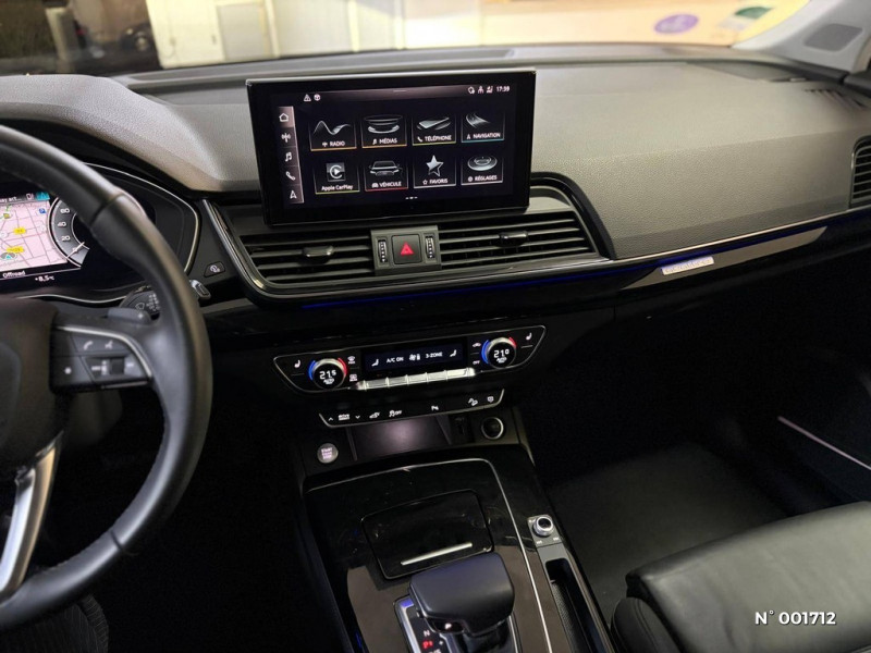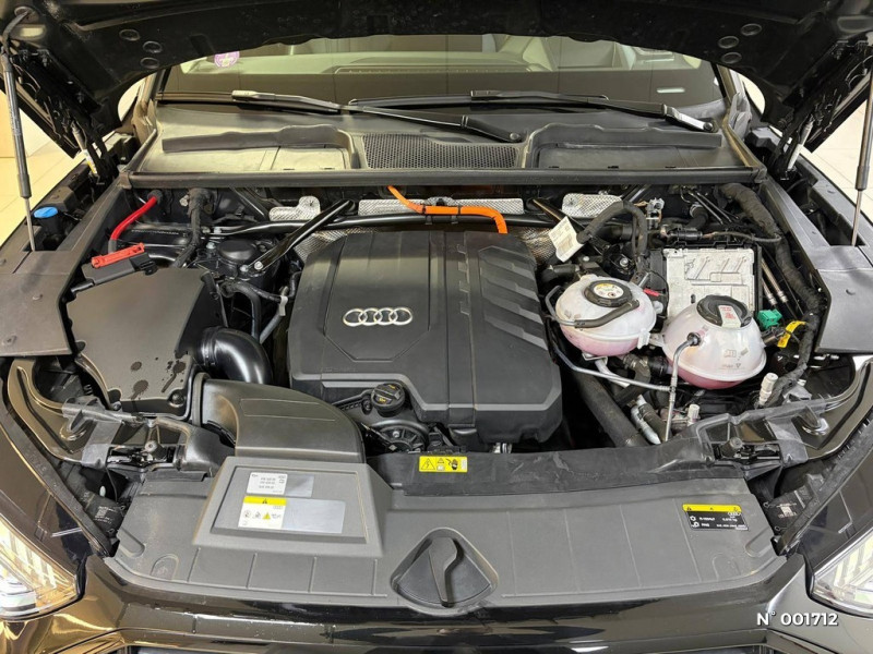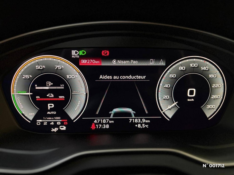 2 interfaces de charge USB pour les passagers AR sur la console centrale AR / Banquette 3 places avec appuie-tête en L réglables en hauteur Dossier de banquette AR rabattable en trois parties 40 : 20 : 40 ou complètement / Affichage de perte de pression des pneus / Airbags latéraux AV avec système d'airbags de tête / Appel d'urgence avec service Audi connect + commande de véhicule / Antipatinage ASR pour une motricité optimale, empêche le patinage des roues motrices / Appui lombaire à 4 axes pour les sièges AV, réglages électriques, horizontal et vertical / Applications décoratives en Bois de chêne Gris Nature / Audi drive select / Audi connect avec carte SIM intégrée (e-SIM) et licence d'utilisation pour 3 ans / Audi Phone Box avec charge du téléphone par induction (standard Qi) / Audi Parking System Plus: Système accoustique et visuel d'aide au stationnement AV et AR / Audi hold assist: maintien le véhicule à l'arrêt en côte comme en descente / Audi Pre-Sense City / Audi smartphone interface / Audi pre sense rear / Audi Sound System avec 10 HP / Audi Virtual Cockpit / Câbles de recharge pour téléphone portable, compatibles iPhone et Android / Câble de charge pour station publique en courant alternatif pour charge en Mode 3 / Type 2 / Blocage électronique de différentiel EDS / Câble de charge pour chargeur ''e-tron compact'', 8 A, type domestique / Ceintures de sécurité automatiques à 3 points pour tous les sièges, contrôle de port de ceinture AV / Ciel de pavillon en tissu selon la couleur intérieure choisie / Châssis de série / Clé Confort (Keyless entry) + Keyless go / Commande de désactivation de l'airbag passager AV / Colonne de direction de sécurité / Contrôle électronique de stabilisation ESC / Eléments de l'habitacle en Similicuir / Diffuseur AR en Noir Titane mat / Détecteur de pluie et de luminosité / Finition extérieure Design / Ecrous de roues antivol / Direction assistée électromécanique / Hayon de coffre assistéélectriquement pour l'ouverture et la fermeture / Identification du modèle selon le nouveau marquage de puissance / Interface Bluetooth / Fixation pour sièges enfants ISOFIX et Top Tether pour les sièges extérieurs AR / Lave-phares haute pression / Jantes en aluminium coulé en style 5 branches en V, Gris Graphite, tournées brillantes, 8Jx19", pneus 235/55 R19 / Moulures de seuils avec insert en Argent Sélénite AV / Navigation MMI plus avec MMI touch / Passage de roue contrasté en plastique Noir grainé / Préparation pour crochet d'attelage / Outillage de bord (sans cric) / Projecteurs HD Matrix LED avec feux AR à technologie OLED / Quattro transmission intégrale permanente / Rampes de pavillon en aluminium anodisé / Récupération d'énergie au freinage / Réservoir à carburant spécifique à la motorisation TFSI e (54 litres) / Recommandation de repos / Rétroviseurs extérieurs avec clignotants à LED intégrés couleur carrosserie / Rétroviseur intérieur jour/nuit automatique sans encadrement (Frameless) / Régulateur de vitesse incluant limiteur de vitesse / Sécurité enfants manuelle / Rétroviseurs extérieurs réglables et escamotables électriquement, jour/nuit automatique, dégivrants des 2 côtés, avec fonction mémoire et buses de lave-glaces dégivrantes pour le pare-brise / Sellerie mixte Cuir/Similicuir MonoPur 550 / Sièges AV réglables électriquement avec fonction mémoire pour les sièges conducteur / Sièges normaux / Sièges AV réglables électriquement avec fonction mémoire pour le siège conducteur + rétroviseurs extérieurs réglables et escamotables électriquement, jour/nuit automatique, dégivrants des 2 côtés et buses de lave-glaces dégivrantes ; 2 combinaisons de réglage mémorisables / Tire Mobility System / Tapis complémentaires AV/AR / Vide-poches dans les contre-portes AV/AR / Système de recharge e-tron compact / Système d'information du conducteur avec écran TFT monochrome de 5" / S tronic : boîte séquentielle 7 vitesses à double embrayage avec commande électrohydraulique / Surfaces d'accentuation faà§on verre en Noir / Système de lecture des panneaux de signalisation par caméra / Vitrage privacy (vitres surteintées) / Volant 3 branches multifonction plus en Cuir avec palettes de changement de vitesse / Vitrage acoustique pour les vitres de portières AV / Trousse de secours et triangle de présignalisation / Tapis de coffre à bagages / Application éclairée sur le tableau de bord (multicolore) / Eclairage d'ambiance des portières AV/AR (multicolore) / Audi side assist / 30 couleurs disponibles au choix / Baguette le long du pavillon et sur les appuis de vitre en aluminium anodisé / Eclairage d'ambiance de la colonne centrale (multicolore) / Avertisseur de sortie du véhicule / Audi Parking System Plus: Système accoustique et visuel d'aide au stationnement AV et AR / 3 profils de couleur prédéfinis: un profil de couleur supplémentaire, interactif et personnalisé / Audi Pre-Sense City / Revêtement noir brillant à l'extérieur sur les montants de pavillon centraux et les triangles de portières AR / Commande intérieure des portières AV/AR (blanc) / Pack Eclairage / Porte-boissons dans l'accoudoir central AR / Filet dans le logement gauche du coffre / Sangle de serrage à droite dans le coffre / Audi pre sense rear / Application éclairée sur les portières (multicolore) / Boîte à gants verrouillable / Vide-poches côté conducteur / Filet de coffre / Filets de rangement dans le dossier des sièges AV / Assistant de sortie de stationnement perpendiculaire en marche AR