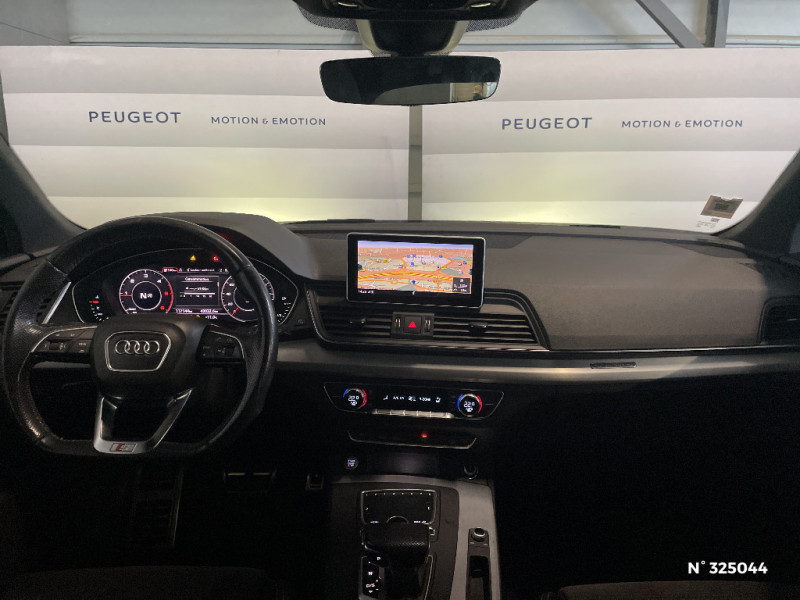Préparation pour crochet d'attelage / Jantes en aluminium coulé en style étoile à 5 branches doubles, 8J x 19, pneus 235/55 R19 / Blocage électronique de différentiel EDS / Phares à LED avec clignotants AR à LED dynamiques / Applications décoratives en Aluminium brossé mat / Audi Sound System : amplificateurs 6 canaux, 10 HP dont 1 central dans le tableau de bord et 1 subwoofer, puissance totale 180 W / MMI Navigation Plus avec MMI touch / Outillage de bord (sans cric) / Vitrage privacy (vitres surteintées) / Vitrage Privacy (vitres surteintées) avec vitrage acoustique pour les vitres de portières AV / Kit de réparation de pneus / Sellerie mixte en tissu Séquence et cuir avec estampillage S sur le dossier des sièges AV / Régulateur de vitesse incluant limiteur de vitesse / Ecrous de roues antivol / MMI Radio Plus / Clé Confort (Keyless entry) + Keyless go / Eclairage intérieur à temporisation avec contacteurs sur toutes les portières / Audi Pre-Sense City / Pack Extérieur S line / Appui lombaire à 4 axes pour les sièges AV, réglages électriques, horizontal et vertical / Airbags latéraux AV avec système d'airbags de tête / Affichage de perte de pression des pneus / Rétroviseur intérieur jour/nuit automatique sans encadrement (Frameless) / Câbles de recharge pour téléphone portable, compatibles iPhone et Android / Capot de coffre à ouverture/fermeture électrique + Déverrouillage/ouverture du hayon par le pied / Identification / Moulures de seuil avec insert en aluminium dans les ouvertures des portières AV / Audi Connect "Sécurité et Service" Inclut les services/applications des catégories "mesServices" et "monVéhicule" / Interface Bluetooth / Vide-poches / Sièges AV réglables manuellement en hauteur et en profondeur ; réglage manuel des appuie-tête en hauteur / Tapis de coffre à bagages / Inscription S line sur les ailes AV / Audi Smartphone Interface / Audi Connect / Peinture intégrale / Direction assistée électromécanique / Quattro avec technologie ultra / 8 HP / Ceintures de sécurité, automatiques à 3 points pour tous les sièges, contrôle de port de ceinture AV Dispositif de réglage en hauteur de la ceinture / S tronic : boîte séquentielle 7 vitesses à double embrayage avec commande électrohydraulique / Barres de toit transversales en aluminium anodisé / Réservoir d'AdBlue de 12 litres / Moulures de seuils de portes avec inscription S / Ciel de pavillon en Tissu Noir / Audi Parking System Plus: Système accoustique et visuel d'aide au stationnement AV et AR / Contrôle électronique de stabilisation ESC / Vitrage acoustique pour les vitres de portières AV / Repose-pied et pédalier en acier inoxydable / Pack Brillance / Rampes de pavillon en aluminium / Audi Virtual Cockpit combiné d'instruments entièrement numérique de 12.3" avec affichage haute résolution / Volant 3 branches multifonctions plus en cuir badgé S line avec méplat avec palettes de changement de vitesse / Audi Drive Select / Frein de stationnement électromécanique / Dossier de banquette AR rabattable depuis le coffre et en trois parties 40 : 20 : 40 ou complètement / Tapis AV et AR