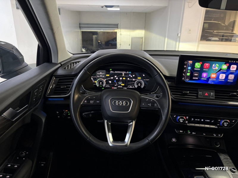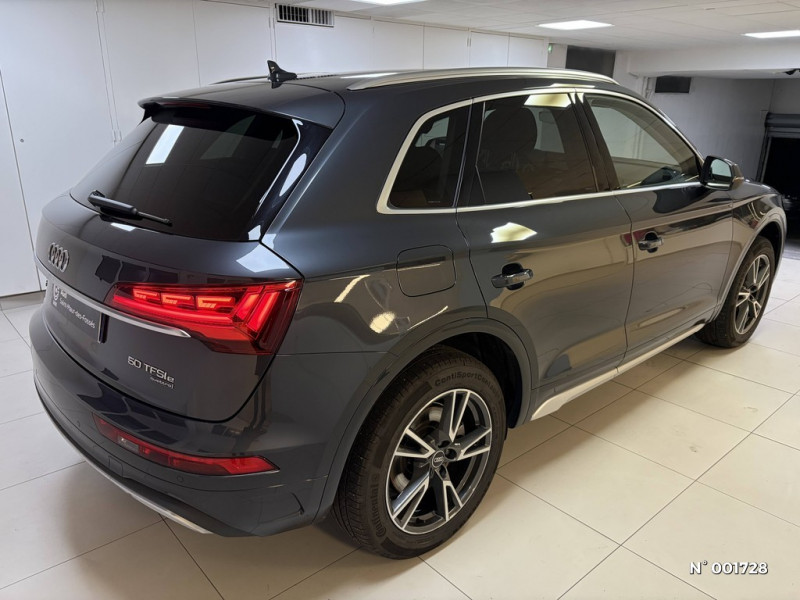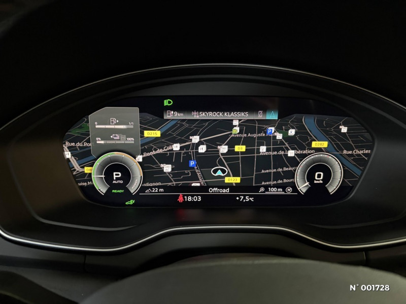Audi Virtual Cockpit / Banquette 3 places avec appuie-tête en L réglables en hauteur Dossier de banquette AR rabattable en trois parties 40 : 20 : 40 ou complètement / Audi Sound System avec 10 HP / Audi connect avec carte SIM intégrée (e-SIM) et licence d'utilisation pour 3 ans / Appui lombaire à 4 axes pour les sièges AV, réglages électriques, horizontal et vertical / Applications décoratives en Bois de chêne Gris Nature / Audi drive select / Audi hold assist: maintien le véhicule à l'arrêt en côte comme en descente / Audi Parking System Plus: Système accoustique et visuel d'aide au stationnement AV et AR / Audi Phone Box avec charge du téléphone par induction (standard Qi) / Affichage de perte de pression des pneus / 2 interfaces de charge USB pour les passagers AR sur la console centrale AR / Antipatinage ASR pour une motricité optimale, empêche le patinage des roues motrices / Airbags latéraux AV avec système d'airbags de tête / Appel d'urgence avec service Audi connect + commande de véhicule / Diffuseur AR en Noir Titane mat / Direction assistée électromécanique / Eléments de l'habitacle en Similicuir / Interface Bluetooth / Jantes en aluminium coulé en style 5 branches en V, Gris Graphite, tournées brillantes, 8Jx19", pneus 235/55 R19 / Fixation pour sièges enfants ISOFIX et Top Tether pour les sièges extérieurs AR / Moulures de seuils avec insert en Argent Sélénite AV / Hayon de coffre assistéélectriquement pour l'ouverture et la fermeture / Finition extérieure Design / Clé Confort (Keyless entry) + Keyless go / Ciel de pavillon en tissu selon la couleur intérieure choisie / Châssis de série / Commande de désactivation de l'airbag passager AV / Colonne de direction de sécurité / Détecteur de pluie et de luminosité / Contrôle électronique de stabilisation ESC / Ecrous de roues antivol / Câble de charge pour chargeur ''e-tron compact'', 8 A, type domestique / Blocage électronique de différentiel EDS / Ceintures de sécurité automatiques à 3 points pour tous les sièges, contrôle de port de ceinture AV / Câbles de recharge pour téléphone portable, compatibles iPhone et Android / Câble de charge pour station publique en courant alternatif pour charge en Mode 3 / Type 2 / Audi pre sense rear / Audi Pre-Sense City / Audi smartphone interface / Vitrage acoustique pour les vitres de portières AV / Audi Pre-Sense City / Eclairage d'ambiance de la colonne centrale (multicolore) / Sièges normaux / Commande intérieure des portières AV/AR (blanc) / Audi side assist / Vitrage privacy (vitres surteintées) / Filet dans le logement gauche du coffre / Système de lecture des panneaux de signalisation par caméra / Tapis complémentaires AV/AR / Sièges AV réglables électriquement avec fonction mémoire pour le siège conducteur + rétroviseurs extérieurs réglables et escamotables électriquement, jour/nuit automatique, dégivrants des 2 côtés et buses de lave-glaces dégivrantes ; 2 combinaisons de réglage mémorisables / Volant 3 branches multifonction plus en Cuir avec palettes de changement de vitesse / 30 couleurs disponibles au choix / Audi pre sense rear / 3 profils de couleur prédéfinis: un profil de couleur supplémentaire, interactif et personnalisé / Sangle de serrage à droite dans le coffre / Application éclairée sur le tableau de bord (multicolore) / Application éclairée sur les portières (multicolore) / Eclairage d'ambiance des portières AV/AR (multicolore) / Avertisseur de sortie du véhicule / Pack Eclairage / Audi Parking System Plus: Système accoustique et visuel d'aide au stationnement AV et AR / Porte-boissons dans l'accoudoir central AR / Filet de coffre / Assistant de sortie de stationnement perpendiculaire en marche AR / Filets de rangement dans le dossier des sièges AV / Boîte à gants verrouillable / Vide-poches côté conducteur / Revêtement noir brillant à l'extérieur sur les montants de pavillon centraux et les triangles de portières AR / Baguette le long du pavillon et sur les appuis de vitre en aluminium anodisé / Sécurité enfants manuelle / Rétroviseur intérieur jour/nuit automatique sans encadrement (Frameless) / S tronic : boîte séquentielle 7 vitesses à double embrayage avec commande électrohydraulique / Réservoir à carburant spécifique à la motorisation TFSI e (54 litres) / Sellerie mixte Cuir/Similicuir MonoPur 550 / Système de recharge e-tron compact / Rétroviseurs extérieurs réglables et escamotables électriquement, jour/nuit automatique, dégivrants des 2 côtés, avec fonction mémoire et buses de lave-glaces dégivrantes pour le pare-brise / Tire Mobility System / Sièges AV réglables électriquement avec fonction mémoire pour les sièges conducteur / Trousse de secours et triangle de présignalisation / Recommandation de repos / Navigation MMI plus avec MMI touch / Récupération d'énergie au freinage / Outillage de bord (sans cric) / Rampes de pavillon en aluminium anodisé / Projecteurs HD Matrix LED avec feux AR à technologie OLED / Surfaces d'accentuation faà§on verre en Noir / Système d'information du conducteur avec écran TFT monochrome de 5" / Tapis de coffre à bagages / Rétroviseurs extérieurs avec clignotants à LED intégrés couleur carrosserie / Vide-poches dans les contre-portes AV/AR / Lave-phares haute pression / Identification du modèle selon le nouveau marquage de puissance / Quattro transmission intégrale permanente / Passage de roue contrasté en plastique Noir grainé / Préparation pour crochet d'attelage / Régulateur de vitesse incluant limiteur de vitesse