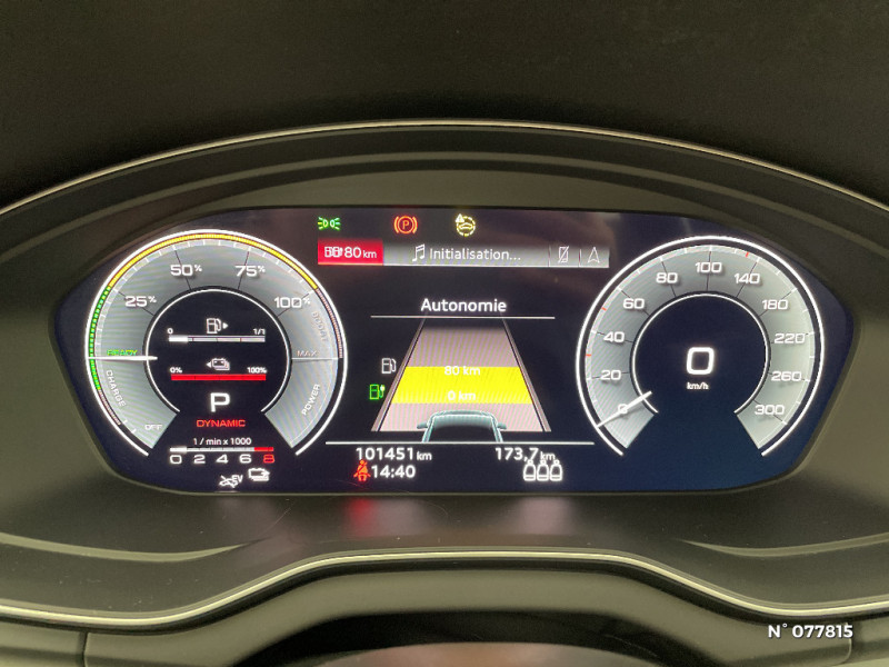 8 HP / Xénon plus incluant réglage automatique du site des phares et feux diurnes par bandeau de LED / Ceintures de sécurité, automatiques à 3 points pour tous les sièges, contrôle de port de ceinture AV Dispositif de réglage en hauteur de la ceinture / Prise industrielle CEE 32 A/230 V/6 h / Calandre avec application Noire / Blocage électronique de différentiel EDS / Phares à LED avec clignotants AR à LED dynamiques / Câbles de recharge pour téléphone portable, compatibles iPhone et Android / Châssis dynamique / Clé Confort (Keyless entry) + Keyless go / Eclairage intérieur à temporisation avec contacteurs sur toutes les portières / Audi Pre-Sense City / Pack Extérieur S line / Appui lombaire à 4 axes pour les sièges AV, réglages électriques, horizontal et vertical / Airbags latéraux AV avec système d'airbags de tête / Affichage de perte de pression des pneus / Rétroviseur intérieur jour/nuit automatique sans encadrement (Frameless) / Interface Bluetooth / Vide-poches / Sièges AV réglables manuellement en hauteur et en profondeur ; réglage manuel des appuie-tête en hauteur / Tapis de coffre à bagages / Inscription S line sur les ailes AV / Réservoir à carburant spécifique à la motorisation TFSI e (54 litres) / Audi Smartphone Interface / Audi Connect / Peinture intégrale / Direction assistée électromécanique / Quattro avec technologie ultra / MMI Radio Plus / Capot de coffre à ouverture/fermeture électrique + Déverrouillage/ouverture du hayon par le pied / Identification / Système de recharge e-tron compact / Système de recharge (accessoire) / Audi Connect "Sécurité et Service" Inclut les services/applications des catégories "mesServices" et "monVéhicule" / Jantes en aluminium coulé style 5 branches en turbines 8Jx18" avec pneus 235/60 R18 / Sellerie mixte en tissu Séquence et cuir avec estampillage S sur le dossier des sièges AV / Régulateur de vitesse incluant limiteur de vitesse / Ecrous de roues antivol / S tronic : boîte séquentielle 7 vitesses à double embrayage avec commande électrohydraulique / Barres de toit transversales en aluminium anodisé / Moulures de seuils de portes avec inscription S / Câble de charge (mode 3) pour une station de charge public 7,3 kW / Ciel de pavillon en Tissu Noir / Audi Parking System Plus: Système accoustique et visuel d'aide au stationnement AV et AR / Contrôle électronique de stabilisation ESC / Vitrage acoustique pour les vitres de portières AV / Pack Brillance / Audi Virtual Cockpit combiné d'instruments entièrement numérique de 12.3" avec affichage haute résolution / Volant 3 branches multifonctions plus en cuir badgé S line avec méplat avec palettes de changement de vitesse / Audi Drive Select / Frein de stationnement électromécanique / Tapis AV et AR / Préparation pour crochet d'attelage / Jantes en aluminium coulé en style étoile à 5 branches doubles, 8J x 19, pneus 235/55 R19 / Applications décoratives en Aluminium brossé mat / Audi Sound System : amplificateurs 6 canaux, 10 HP dont 1 central dans le tableau de bord et 1 subwoofer, puissance totale 180 W / MMI Navigation Plus avec MMI touch / Outillage de bord (sans cric) / Vitrage privacy (vitres surteintées) / Câble de chargement HH type E/F (NO), (8A) / Kit de réparation de pneus