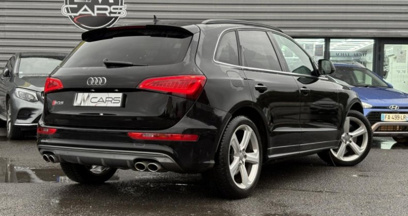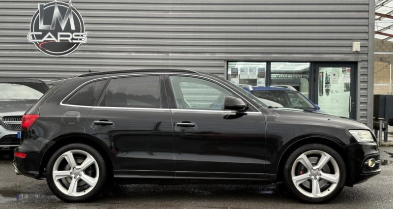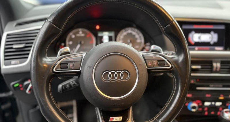 ======= OPTIONS ======= Adaptive Cruise Control : régulation automatique de distance Applications décoratives carbone Atlas sur tableau de bord, contre-portes et console centrale Audi Drive Select Jantes Audi Sport en aluminium coulé style 10 branches en Y, 8,5 J x 20? avec pneus 255 45 R 20 101W Jantes Audi Sport en aluminium coulé style 5 branches doubles, finition titane, polies, brillantes, 8,5 J x 21? avec pneus 255 40 R21 Peinture métallisée ou nacrée Sellerie mixte cuir Alcantara avec logo S et contreportes en Alcantara Sièges avant chauffants : chauffe dossier et assise y compris partie latérale des sièges ; 6 réglages possibles Sièges avant électriques et conducteur à mémoire 2 combinaisons + rétroviseurs extérieurs dégivrants + buses de lave-glace chauffantes, jour nuit automatique, escamotables et à mémoire Tapis de sol coloris Audi exclusive ======= EQUIPEMENTS DE SERIE ======= Adaptive Light : projecteurs directionnels Advanced Key : système d'autorisation d'accès et de démarrage main libre Audi Sound System (180 W) Badges V6T sur les ailes avant et emblème SQ5 sur les étriers de freins Climatisation automatique confort 3 zones Détecteur de pluie et de luminosité incluant rétroviseur intérieur jour nuit automatique Déverrouillage de coffre par touche douce : déverrouillage avec assistance électrique Eclairage intérieur, à temporisation avec contacteur sur toutes les portières Ecran central avec affichage en couleur Frein de stationnement electromécanique Hayon assisté électriquement pour l'ouverture et la fermeture Jantes en aluminium coulé style 5 branches double S, 8,5 J x 20 avec pneus 255 45 R20 100W Projecteurs Xénon Plus incluant lave-phares, feux de jour à LED Quattro, transmission intégrale permanente avec répartition asymétrique et dynamique de couple, différentiel central autobloquant, blocage électronique de différentiel EDS par intervention sur les freins des roues motrices Régulateur de vitesse Sièges avant électriques incluant supports lombaires électriques Volant airbag Sport en cuir style 3 branches multifonction avec palettes de changement de vitesse tiptronic Nb. Vitesses : 8 Conso Mixte : l/100
