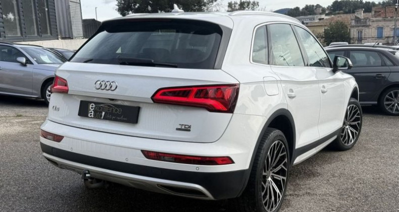 Audi Q5 2.0 TDI 163CH DESIGN QUATTRO S TRONIC 7, (S.U.V.), BLANC, 9cv, 5 portes, mise en circulation le 15-12-2017, garantie 3 mois (3 MOIS). 5 places, longueur : 4,66 mètres, boîte de vitesse : automatique OPTIONS ET EQUIPEMENTS : Audio - Télécommunications - 8 Haut parleurs - Borne Wi-Fi - Commandes du système audio au volant - Commandes vocales - Disque dur multimédia - GPS Cartographique - Kit mains-libres Bluetooth - Lecteur CD - Lecteur carte SD - Prise USB - Prise auxiliaire de connexion audio - Radio - Services connectés - TMC Conduite - Arrêt et redémarrage auto. du moteur - Blocage électronique du différentiel - Capteur de luminosité - Capteur de pluie - Démarrage sans clé - Limiteur de vitesse - Mode de conduite - Palettes changement vitesses au volant - Régulateur de vitesse - Système d'accès sans clé Extérieur - Barres de toit - Boucliers AV et AR couleur caisse - Buses de lave-glace chauffantes - Calandre chromée - Ceinture de vitrage chromée - Coffre assisté électriquement - Echappement à double sortie - Essuie-glace arrière - Feux arrière à LED - Feux de jour à LED - Filtre à particules - Jantes Alu - Phares xénon - Poignées ton carrosserie - Radar de stationnement AR - Radar de stationnement AV - Répétiteurs de clignotant dans rétro ext - Rétroviseurs dégivrants - Rétroviseurs rabattables électriquement - Rétroviseurs électriques - Sortie d'échappement chromée Intérieur - Accoudoir central AV - Appui-tête conducteur réglable hauteur - Appui-tête passager réglable en hauteur - Bacs de portes arrière - Bacs de portes avant - Banquette 40/20/40 - Banquette AR rabattable - Banquette arrière 3 places - Boite à gants éclairée et réfrigérable - Clim automatique tri-zones - Commande Climatisation AR - Compte tours - Eclairage d'ambiance - Ecran multifonction couleur - Filtre à Pollen - Fixation Isofix siège passager avant - Fixations Isofix aux places arrières - Kit Fumeur - Lampe de coffre - Lampes de lecture à l'avant - Lunette AR dégivrante - Miroir de courtoisie conducteur - Miroir de courtoisie passager - Ordinateur de bord - Ouverture des vitres séquentielle - Prise 12V - Rétroviseur intérieur électrochrome - Siège conducteur avec réglage lombaire - Siège conducteur réglable en hauteur - Siège passager avec réglage lombaire - Siège passager réglable en hauteur - Tablette cache bagages - Température extérieure - Verrouillage centralisé des portes - Verrouillage centralisé à distance - Vitres arrière électriques - Vitres avant électriques - Volant cuir - Volant multifonction Sécurité - ABS - Aide au freinage d'urgence - Airbag conducteur - Airbag passager déconnectable - Airbags latéraux avant - Airbags rideaux AV et AR - Antidémarrage électronique - Antipatinage - Ceintures avant ajustables en hauteur - Contrôle élect. de la pression des pneus - EBD - ESP - Freinage automatique d'urgence - Troisième ceinture de sécurité - Témoin de bouclage des ceintures AV Autres équipements et informations : - Caméra de recul - Crochet d'attelage Kilométrage garanti. Référence annonce : 11032