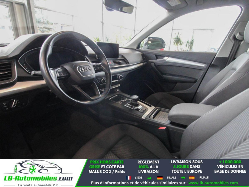 Référence : 1169927 Vos Avantages chez LB-AUTOMOBILES.com / Prix affiché TTC Livré hors carte grise / Livraison sous 10 jours dans toute la France hors 31 / Pas d?avance de frais paiement du véhicule 100% à la livraison par virement. Audi Q5 Neuf remisée, Audi Q5 Occasion Toulouse Beaupuy 31850, Audi Q5 Véhicule sorti de réseau collaborateur, Audi Q5 import, Audi Q5 importateur, Audi Q5 Livraison possible dans toute la France sous 5 jours, Audi Q5, Audi Q5 Location Option Achat, Audi Q5 LLD, Audi Q5 Longue Durée, Audi Q5 TVA récupérable. Possibilité d'extension de garantie 12, 24,36 mois, Pour tout autres voitures import neufs ou occasions collaborateur fortement remisée, Mandataire Audi, Mandataire BMW, Mandataire Volkswagen, Mandataire Mercedes, Mandataire Peugeot Espagne, Mandataire Renault Espagne, Porsche import, Mandataire Citroën Espagne, Mandataire Seat Espagne, n'hésitez pas à nous contacter. « Sous réserve de vente préalable et erreur de saisie » Principaux équipements : - 4x4 - ABS - Accoudoir - Android Auto - Antidémarrage - Apple CarPlay - Assistance au freinage d'urgence - Assistance de démarrage en côte - Assistant feux de route - Bluetooth - Boîte de vitesses robotisée - Capteur de lumière - Capteur de pluie - Carnet d'entretien - Chauffage auxiliaire - Cockpit numérique - Commande vocale - Contrôle de la pression des pneus - Direction assistée - Éclairage adaptatif de virage - Éclairage d'ambiance - ESP - Fermeture centralisée - Feux de jour LED - Galerie de toit - Garantie - GPS - Hayon électrique - Isofix - Jantes alliage - Kit de réparation d'urgence des pneus - Kit mains libres - Lecteur CD - Ordinateur de bord - Package hiver - Phares LED - Pneus toutes saisons - Port USB - Réglage électrique des sièges - Régulateur de vitesse adaptatif - Rétroviseur extérieur électrique - Rétroviseur intérieur anti-éblouissement automatique - Rétroviseurs extérieurs rabattables électriquement - Révision complète - Sièges chauffants - Streaming musical intégré - Support lombaire - Suspension adaptative - Suspension sport - Système antipatinage - Système d'appel d'urgence - Système d'avertissement de la distance - Système de détection de la fatigue - Système de limitation de la vitesse - Système de nettoyage des phares - Système de reconnaissance des panneaux de signalisation - Système de sonorisation - Système Stop & Start - Tuner/radio - Véhicule non-fumeur - Verrouillage centralisé sans clé - Vitres électriques - Vitres teintées - Volant chauffant - Volant en cuir - Volant multifonction - WLAN / point d'accès Wi-Fi