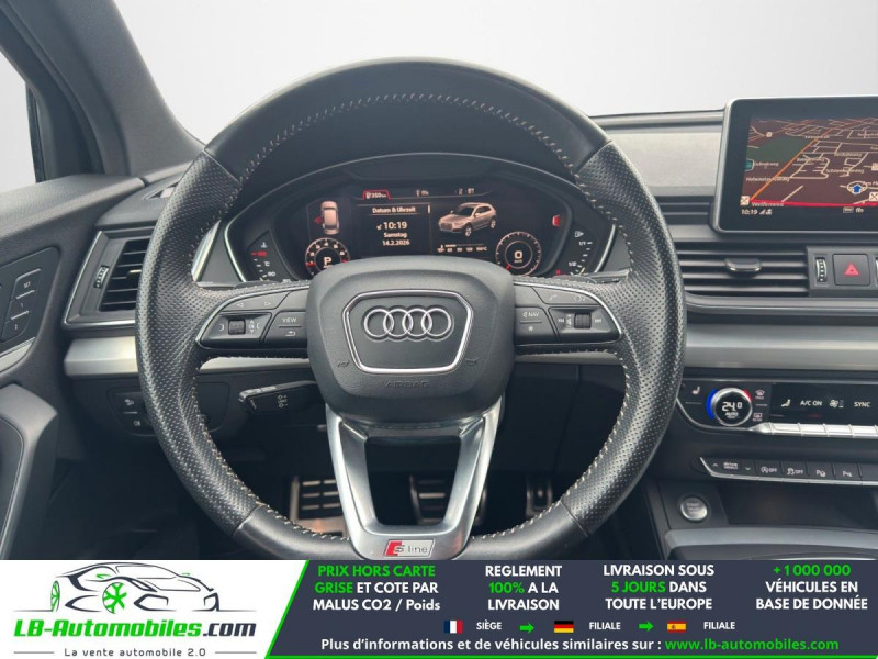 Référence : 1169929 Vos Avantages chez LB-AUTOMOBILES.com / Prix affiché TTC Livré hors carte grise / Livraison sous 10 jours dans toute la France hors 31 / Pas d?avance de frais paiement du véhicule 100% à la livraison par virement. Audi Q5 Neuf remisée, Audi Q5 Occasion Toulouse Beaupuy 31850, Audi Q5 Véhicule sorti de réseau collaborateur, Audi Q5 import, Audi Q5 importateur, Audi Q5 Livraison possible dans toute la France sous 5 jours, Audi Q5, Audi Q5 Location Option Achat, Audi Q5 LLD, Audi Q5 Longue Durée, Audi Q5 TVA récupérable. Possibilité d'extension de garantie 12, 24,36 mois, Pour tout autres voitures import neufs ou occasions collaborateur fortement remisée, Mandataire Audi, Mandataire BMW, Mandataire Volkswagen, Mandataire Mercedes, Mandataire Peugeot Espagne, Mandataire Renault Espagne, Porsche import, Mandataire Citroën Espagne, Mandataire Seat Espagne, n'hésitez pas à nous contacter. « Sous réserve de vente préalable et erreur de saisie » Principaux équipements : - 4x4 - ABS - Accoudoir - Antidémarrage - Assistance au freinage d'urgence - Assistance de démarrage en côte - Assistant de man?uvre avec remorque - Assistant feux de route - Attache remorque pivotante - Bluetooth - Boîte de vitesses robotisée - Capteur de lumière - Capteur de pluie - Carnet d'entretien - Cockpit numérique - Commande vocale - Contrôle de la pression des pneus - Direction assistée - Éclairage adaptatif de virage - Éclairage d'ambiance - Éclairage route non éblouissant - Écran tactile - ESP - Fermeture centralisée - Feux de jour LED - Galerie de toit - Garantie - GPS - Grille de protection pour coffre - Hayon électrique - Isofix - Jantes alliage - Kit de réparation d'urgence des pneus - Kit mains libres - Lecteur CD - Ordinateur de bord - Package hiver - Pack sport - Phare antibrouillard - Phares LED - Port USB - Radio DAB - Réglage électrique des sièges - Réglage électrique des sièges avec fonction mémoire - Régulateur de vitesse - Rétroviseur extérieur électrique - Rétroviseur intérieur anti-éblouissement automatique - Rétroviseurs extérieurs rabattables électriquement - Sièges chauffants - Sièges sport - Streaming musical intégré - Support lombaire - Suspension adaptative - Suspension sport - Système antipatinage - Système d'alarme - Système d'appel d'urgence - Système d'avertissement de la distance - Système de détection de la fatigue - Système de limitation de la vitesse - Système de sonorisation - Système Stop & Start - Toit ouvrant - Toit panoramique - Tuner/radio - Véhicule non-fumeur - Verrouillage centralisé sans clé - Vitres électriques - Vitres teintées - Volant en cuir - Volant multifonction - WLAN / point d'accès Wi-Fi
