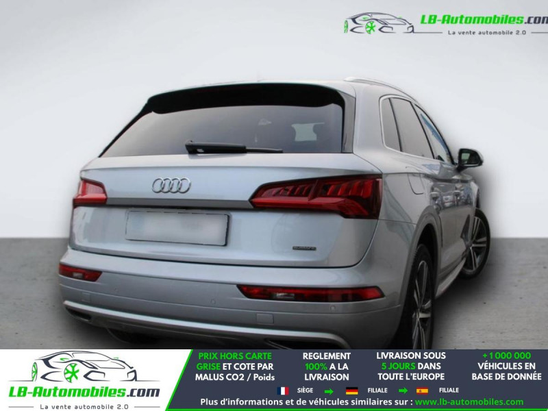 Référence : 1178830 Vos Avantages chez LB-AUTOMOBILES.com / Prix affiché TTC Livré hors carte grise / Livraison sous 10 jours dans toute la France hors 31 / Pas d?avance de frais paiement du véhicule 100% à la livraison par virement. Audi Q5 Neuf remisée, Audi Q5 Occasion Toulouse Beaupuy 31850, Audi Q5 Véhicule sorti de réseau collaborateur, Audi Q5 import, Audi Q5 importateur, Audi Q5 Livraison possible dans toute la France sous 5 jours, Audi Q5, Audi Q5 Location Option Achat, Audi Q5 LLD, Audi Q5 Longue Durée, Audi Q5 TVA récupérable. Possibilité d'extension de garantie 12, 24,36 mois, Pour tout autres voitures import neufs ou occasions collaborateur fortement remisée, Mandataire Audi, Mandataire BMW, Mandataire Volkswagen, Mandataire Mercedes, Mandataire Peugeot Espagne, Mandataire Renault Espagne, Porsche import, Mandataire Citroën Espagne, Mandataire Seat Espagne, n'hésitez pas à nous contacter. « Sous réserve de vente préalable et erreur de saisie » Principaux équipements : - 4x4 - ABS - Accoudoir - Android Auto - Antidémarrage - Apple CarPlay - Assistance de démarrage en côte - Assistant d'angle mort - Attache remorque pivotante - Avertisseur de franchissement de ligne - Bluetooth - Boîte de vitesses robotisée - Capteur de lumière - Capteur de pluie - Carnet d'entretien - Chauffage auxiliaire - Contrôle de la pression des pneus - Diesel avec filtre à particules - Direction assistée - Éclairage d'ambiance - ESP - Fermeture centralisée - Galerie de toit - Garantie - GPS - Hayon électrique - Isofix - Jantes alliage - Kit mains libres - Lecteur CD - Ordinateur de bord - Phares bi-xénon - Pneus été - Port USB - Radio DAB - Réglage électrique des sièges - Régulateur de vitesse adaptatif - Rétroviseur extérieur électrique - Rétroviseur intérieur anti-éblouissement automatique - Rétroviseurs extérieurs rabattables électriquement - Sièges chauffants - Sièges sport - Support lombaire - Suspension pneumatique - Système antipatinage - Système d'appel d'urgence - Système de nettoyage des phares - Système de reconnaissance des panneaux de signalisation - Système de sonorisation - Système Stop & Start - Verrouillage centralisé sans clé - Vitres électriques - Vitres teintées - Volant en cuir - Volant multifonction