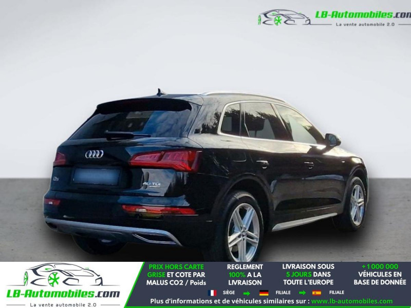 Référence : 1181530 Vos Avantages chez LB-AUTOMOBILES.com / Prix affiché TTC Livré hors carte grise / Livraison sous 10 jours dans toute la France hors 31 / Pas d?avance de frais paiement du véhicule 100% à la livraison par virement. Audi Q5 Neuf remisée, Audi Q5 Occasion Toulouse Beaupuy 31850, Audi Q5 Véhicule sorti de réseau collaborateur, Audi Q5 import, Audi Q5 importateur, Audi Q5 Livraison possible dans toute la France sous 5 jours, Audi Q5, Audi Q5 Location Option Achat, Audi Q5 LLD, Audi Q5 Longue Durée, Audi Q5 TVA récupérable. Possibilité d'extension de garantie 12, 24,36 mois, Pour tout autres voitures import neufs ou occasions collaborateur fortement remisée, Mandataire Audi, Mandataire BMW, Mandataire Volkswagen, Mandataire Mercedes, Mandataire Peugeot Espagne, Mandataire Renault Espagne, Porsche import, Mandataire Citroën Espagne, Mandataire Seat Espagne, n'hésitez pas à nous contacter. « Sous réserve de vente préalable et erreur de saisie » Principaux équipements : - 4x4 - ABS - Accoudoir - Android Auto - Antidémarrage - Apple CarPlay - Assistance au freinage d'urgence - Assistant d'angle mort - Attache remorque pivotante - Bluetooth - Capteur de lumière - Capteur de pluie - Cockpit numérique - Commande vocale - Contrôle de la pression des pneus - Diesel avec filtre à particules - Direction assistée - Écran tactile - ESP - Fermeture centralisée - Feux de jour - Garantie - GPS - Hayon électrique - Isofix - Jantes alliage - Kit de réparation d'urgence des pneus - Kit mains libres - Lecteur CD - Ordinateur de bord - Phares au xénon - Port USB - Réglage électrique des sièges - Régulateur de vitesse - Rétroviseur extérieur électrique - Rétroviseur intérieur anti-éblouissement automatique - Rétroviseurs extérieurs rabattables électriquement - Sièges chauffants - Sièges sport - Support lombaire - Suspension sport - Système d'appel d'urgence - Système de limitation de la vitesse - Système de reconnaissance des panneaux de signalisation - Système Stop & Start - Tuner/radio - Véhicule non-fumeur - Vitres électriques - Vitres teintées - Volant en cuir - Volant multifonction