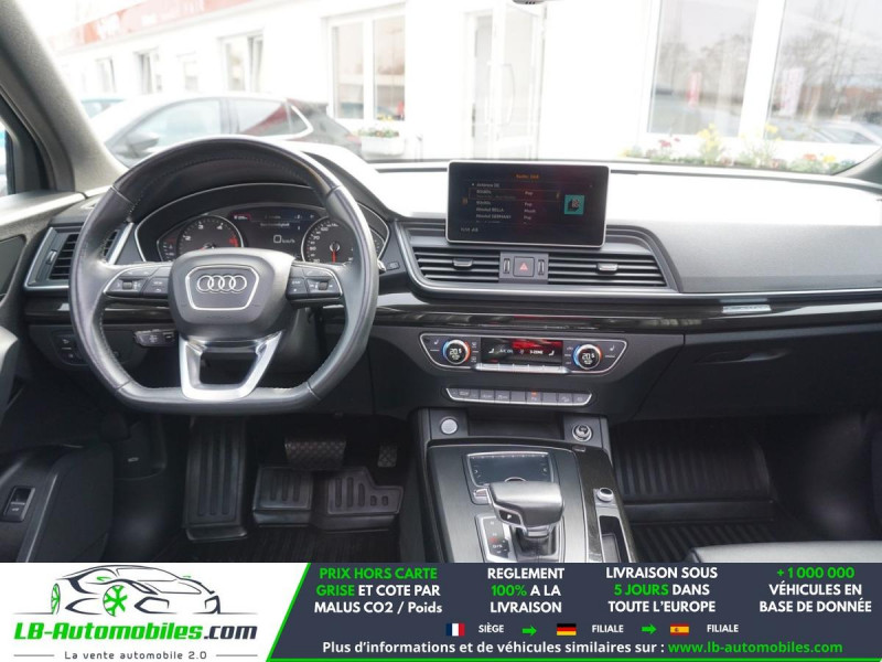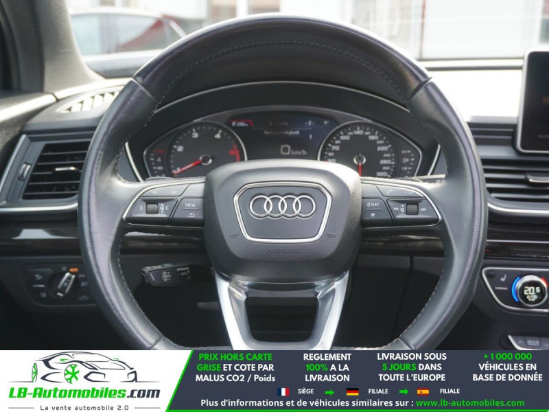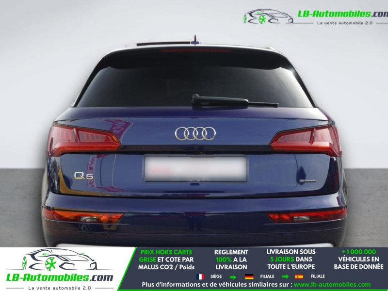 Référence : 1188607 Vos Avantages chez LB-AUTOMOBILES.com / Prix affiché TTC Livré hors carte grise / Livraison sous 10 jours dans toute la France hors 31 / Pas d?avance de frais paiement du véhicule 100% à la livraison par virement. Audi Q5 Neuf remisée, Audi Q5 Occasion Toulouse Beaupuy 31850, Audi Q5 Véhicule sorti de réseau collaborateur, Audi Q5 import, Audi Q5 importateur, Audi Q5 Livraison possible dans toute la France sous 5 jours, Audi Q5, Audi Q5 Location Option Achat, Audi Q5 LLD, Audi Q5 Longue Durée, Audi Q5 TVA récupérable. Possibilité d'extension de garantie 12, 24,36 mois, Pour tout autres voitures import neufs ou occasions collaborateur fortement remisée, Mandataire Audi, Mandataire BMW, Mandataire Volkswagen, Mandataire Mercedes, Mandataire Peugeot Espagne, Mandataire Renault Espagne, Porsche import, Mandataire Citroën Espagne, Mandataire Seat Espagne, n'hésitez pas à nous contacter. « Sous réserve de vente préalable et erreur de saisie » Principaux équipements : - 4x4 - ABS - Accoudoir - Avertisseur de franchissement de ligne - Bluetooth - Boîte de vitesses robotisée - Capteur de pluie - Carnet d'entretien - Commande vocale - Contrôle de la pression des pneus - Diesel avec filtre à particules - Direction assistée - ESP - Fermeture centralisée - Feux de jour LED - Galerie de toit - Garantie - GPS - Hayon électrique - Isofix - Jantes alliage - Kit mains libres - Ordinateur de bord - Package hiver - Phares bi-xénon - Point Isofix siège passager - Port USB - Radio DAB - Régulateur de vitesse - Rétroviseur extérieur électrique - Rétroviseur intérieur anti-éblouissement automatique - Sièges chauffants - Support lombaire - Système d'alarme - Système d'appel d'urgence - Système d'avertissement de la distance - Système de détection de la fatigue - Système de nettoyage des phares - Système de reconnaissance des panneaux de signalisation - Système Stop & Start - Toit ouvrant - Toit panoramique - Tuner/radio - Véhicule non-fumeur - Vitres électriques - Vitres teintées - Volant en cuir - Volant multifonction